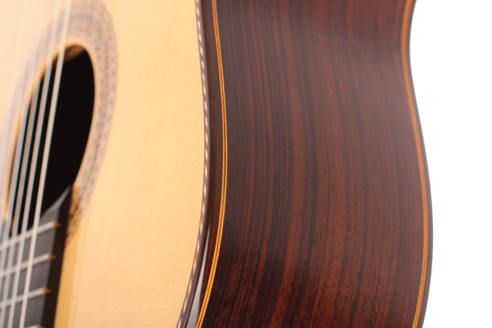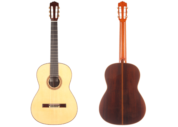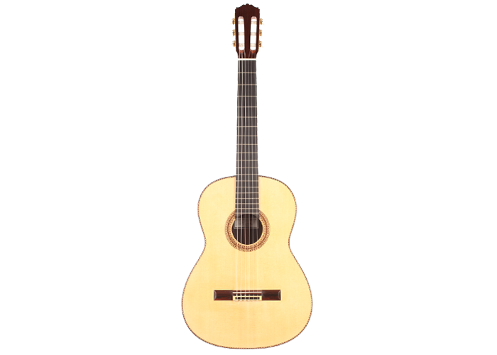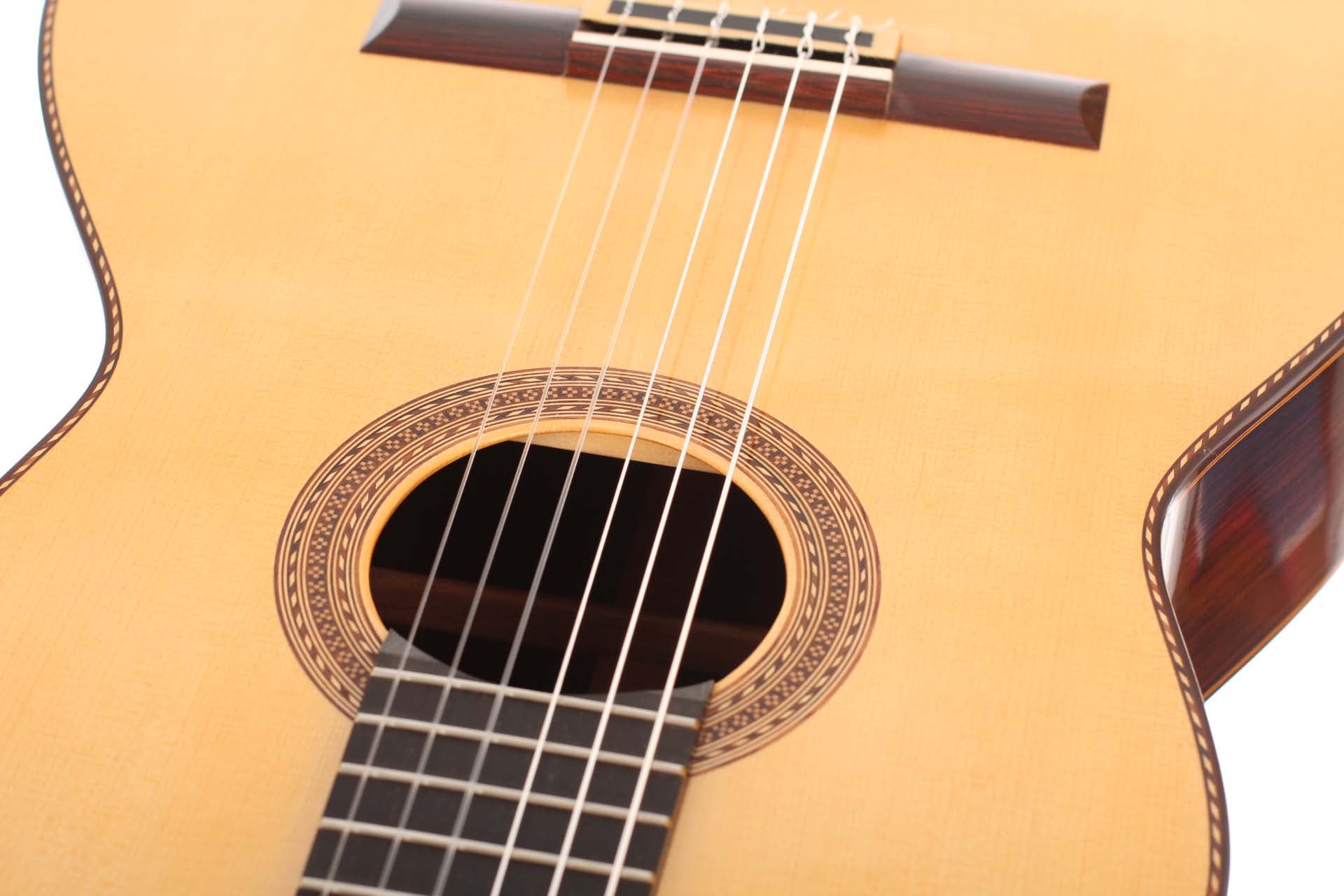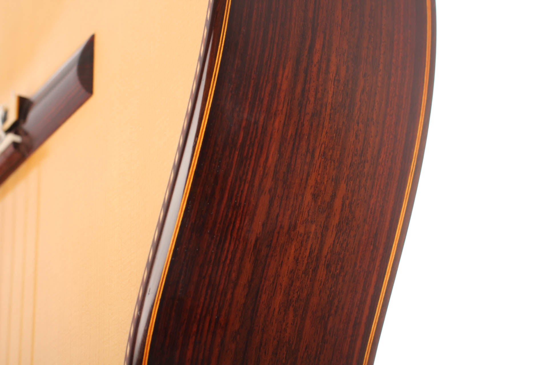 Karl-Heinz Römmich wurde 1953 geboren und baut seit über 30 Jahren Gitarren. Berühmte Gitarristen wie Xuefei Yang und Roman Viazovskiy spielen seine Gitarren. Karl-Heinzs Gitarren sind ganz dem spanischen Gitarrenbaustil gewidmet. Beste natürliche Materialien und nur beste Hölzer, die über 40 Jahre lang gelagert wurden verwendet Karl-Heinz für seine Gitarren. Veredelt werden alle seine Gitarren mit einer Schellackpolitur. Die Decke dieser Gitarre besteht aus feinster Fichte und der Boden sowie die Zargen sind aus indischem Palisander. Die Mechaniken sind von Fustero. Ein Hiscox Pro II Hartschalenkoffer ist inklusive.