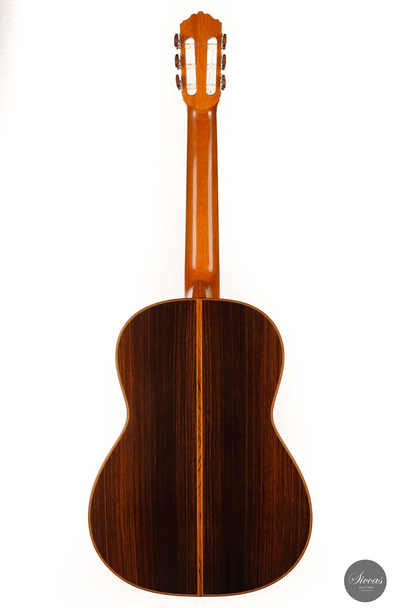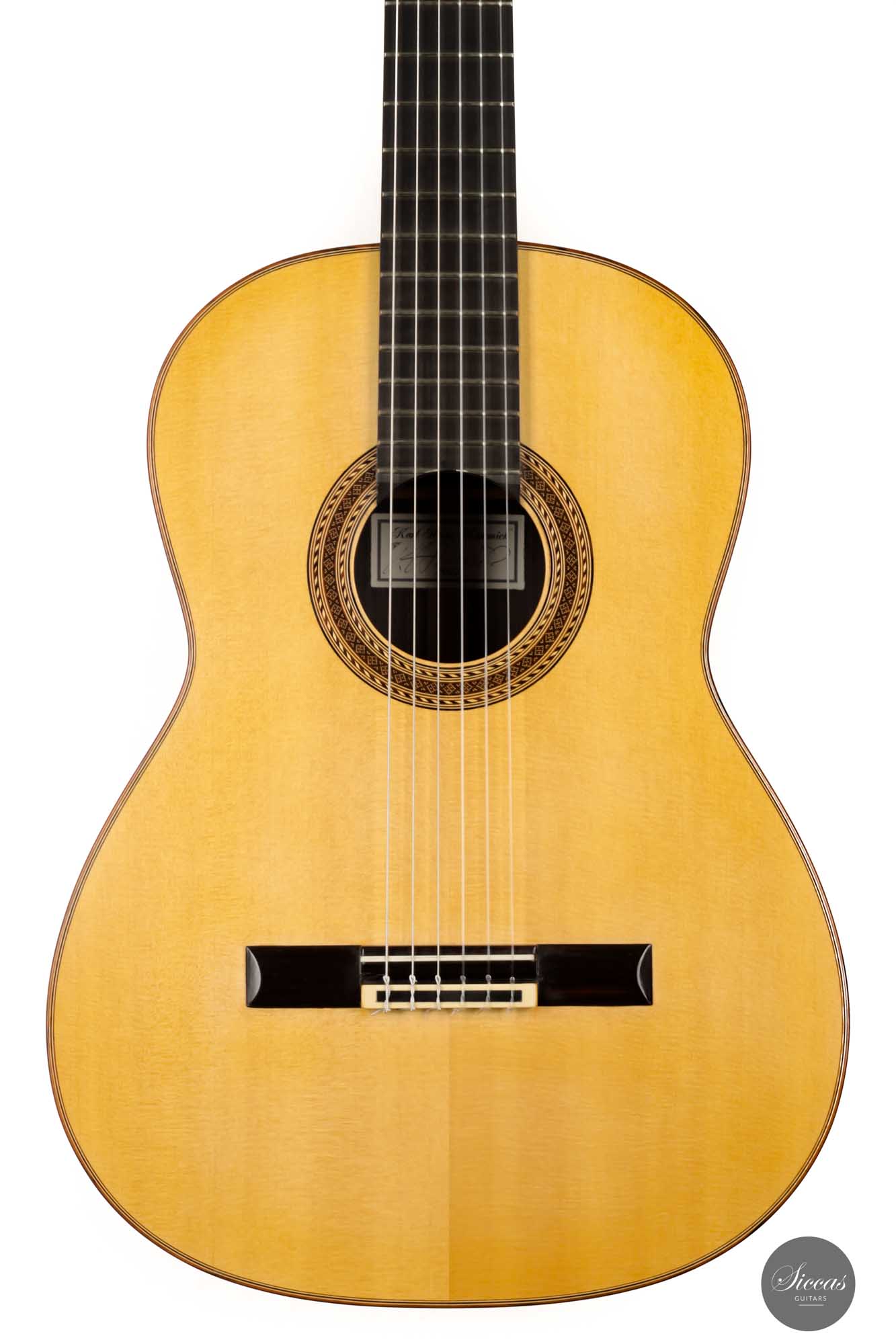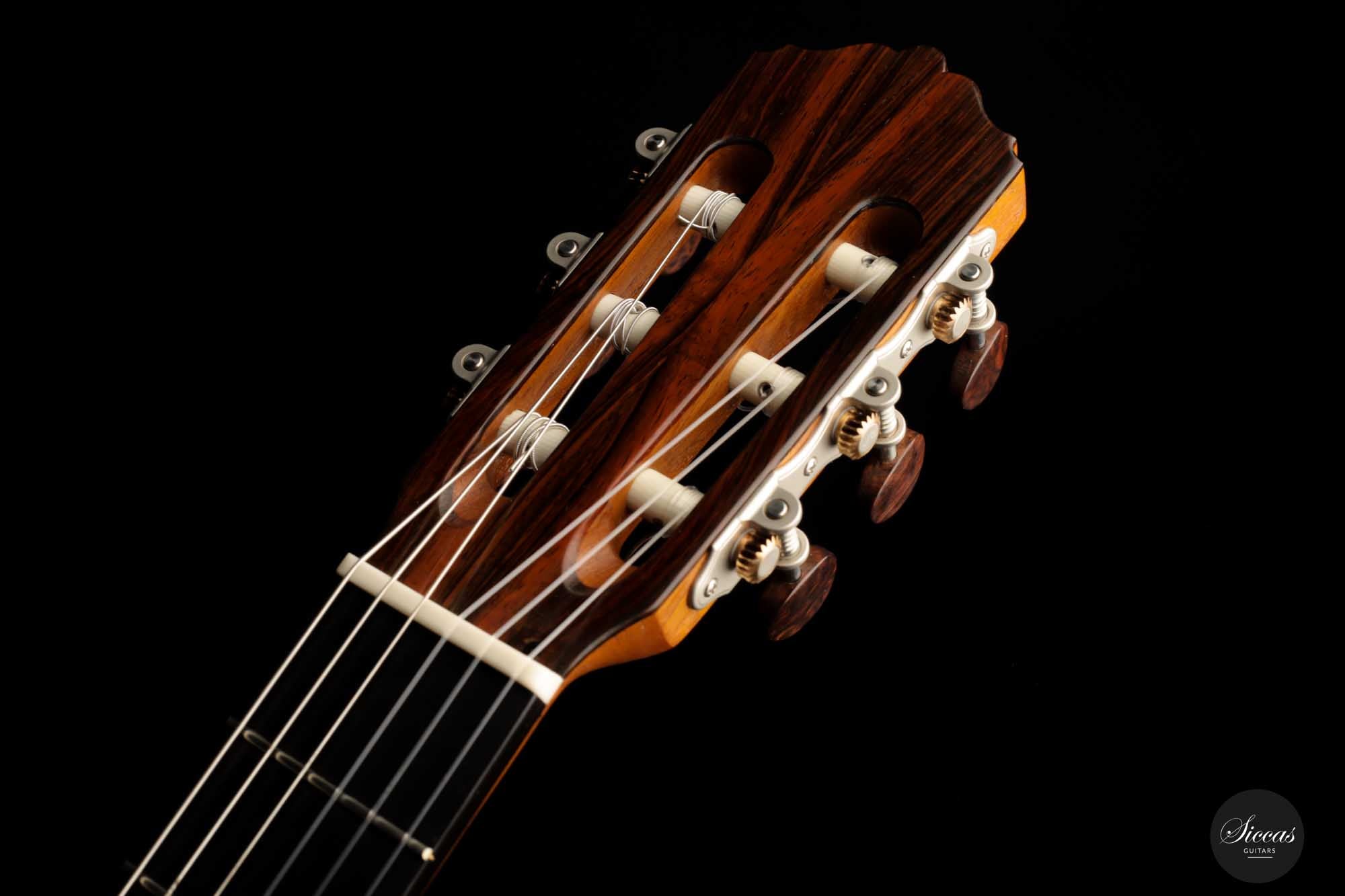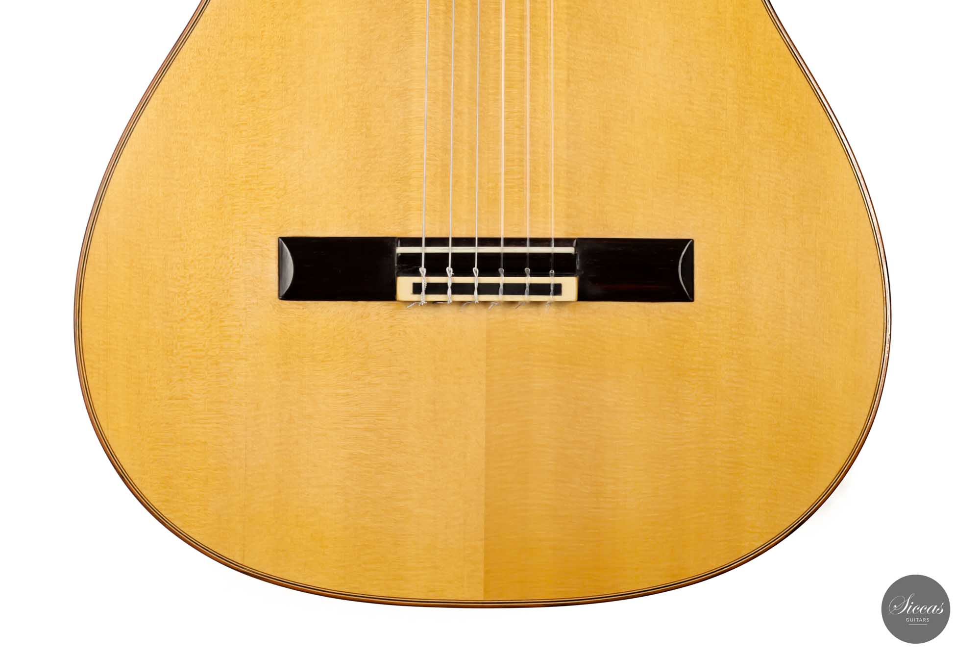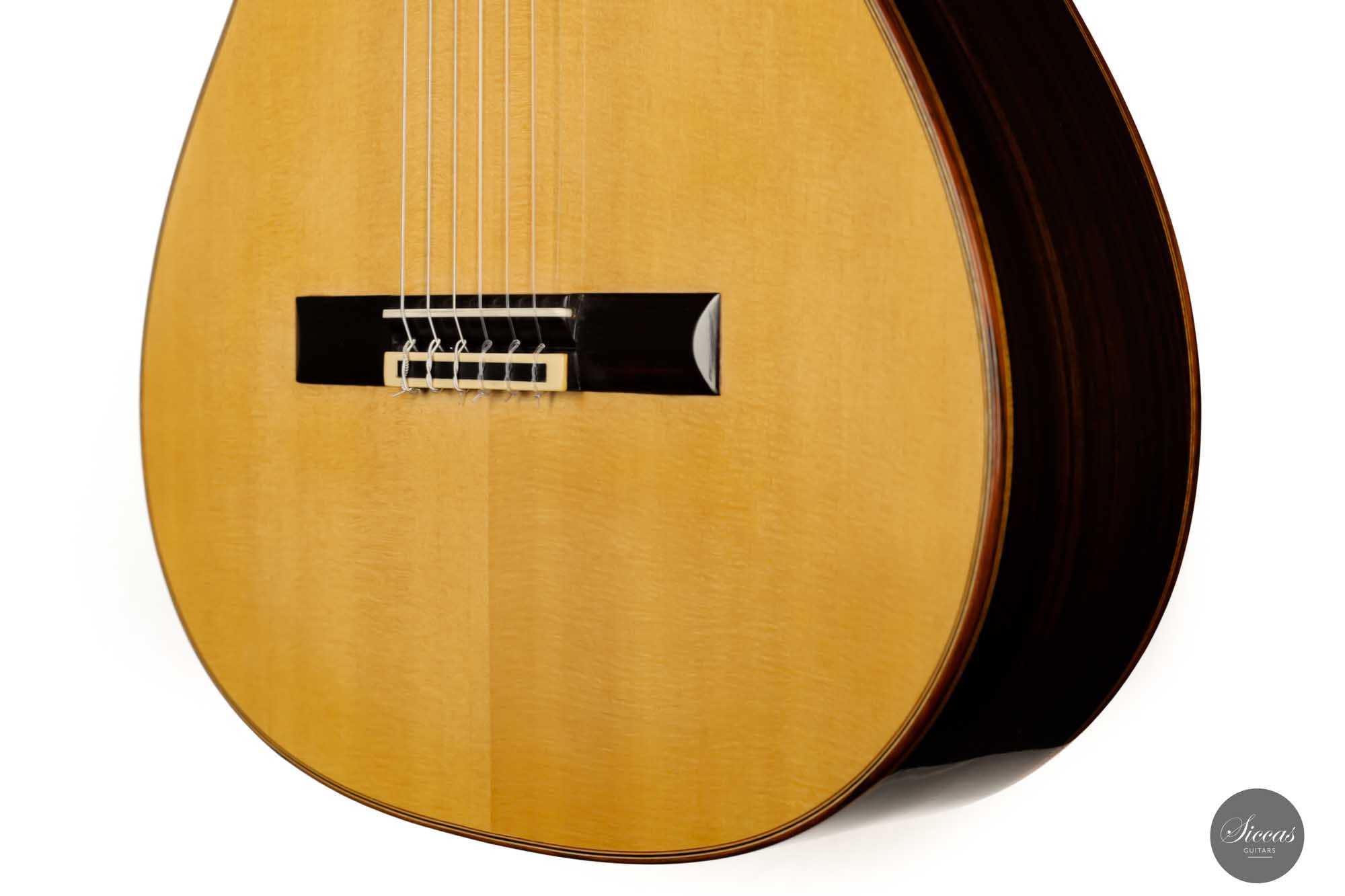 Diese schöne Gitarre von Karl-Heinz Römmich aus dem Jahr 2022 besticht durch ihre Lyrik. Die Fichtendecke und der Boden und die Zargen aus indischem Palisander, kombiniert mit klassischer, exquisiter und einfacher Verzierung, machen diese Gitarre zu einer Augenweide. Mit der hervorragenden Balance zwischen den lyrischen Höhen und den kräftigen, soliden Bässen bietet dieses feine Instrument unendliche Möglichkeiten im Bereich der klanglichen Erkundung, die mühelos jeden Konzertsaal füllen werden.