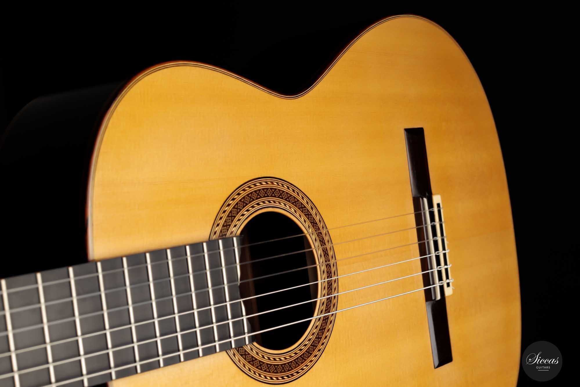 Die klassische Gitarre mit ihren weichen Nylonsaiten und ihrem charakteristischen Timbre ist zum Symbol der Kammermusik, der spanischen Tradition und des Konzertrepertoires geworden. Ihre moderne Form prägte Antonio de Torres im 19. Jahrhundert, indem er den Standard für Korpus, Fächerbeleistung und die 65-Zentimeter-Mensur setzte, die bis heute verwendet werden. Instrumente dieser Kategorie eröffnen eine reiche Palette von den feinen romantischen Miniaturen Tárregas bis zu den majestätischen Konzerten Rodrigos. Hier finden Sie Gitarren, die historische Kontinuität bewahren und zugleich zu neuen Interpretationen anregen.