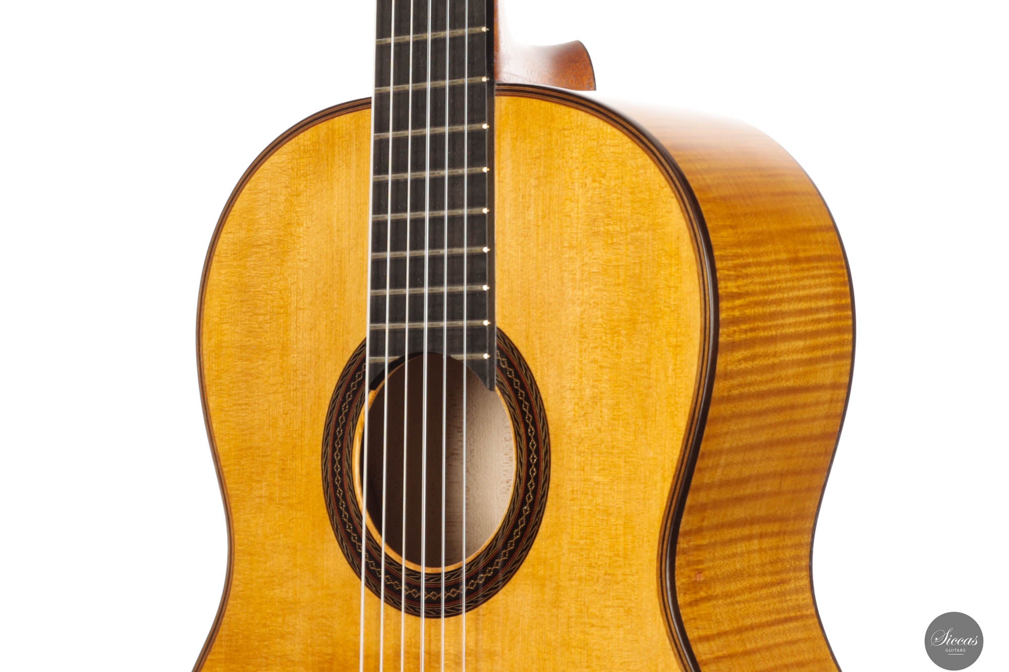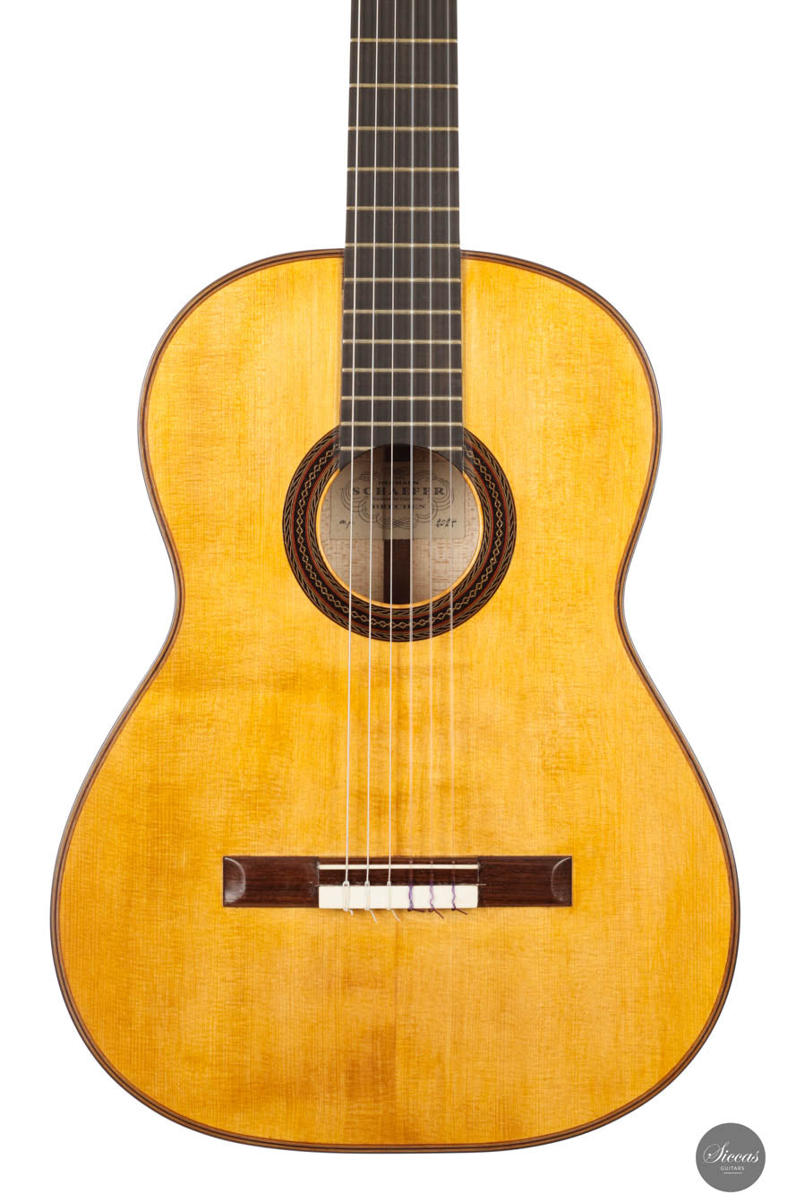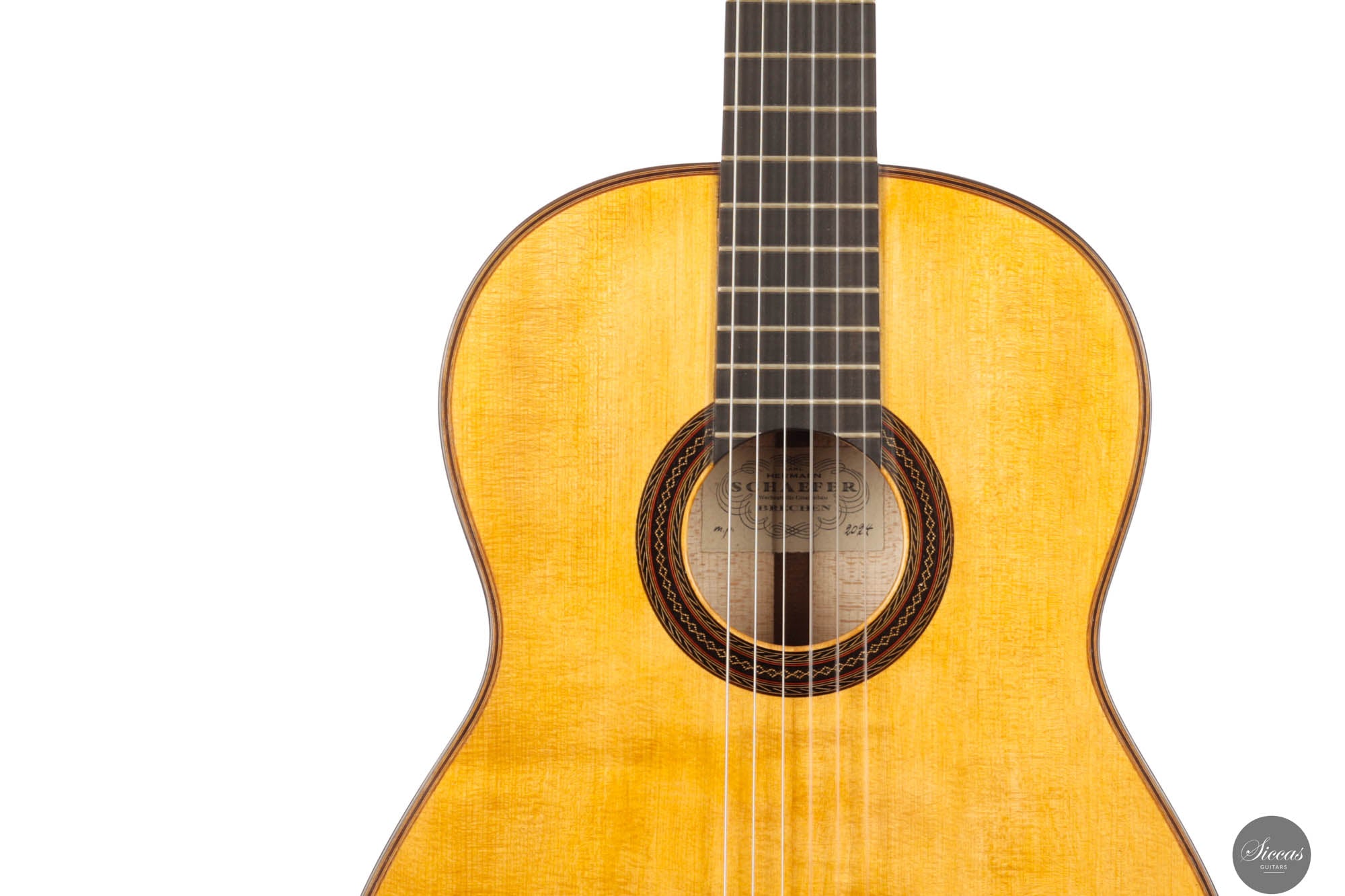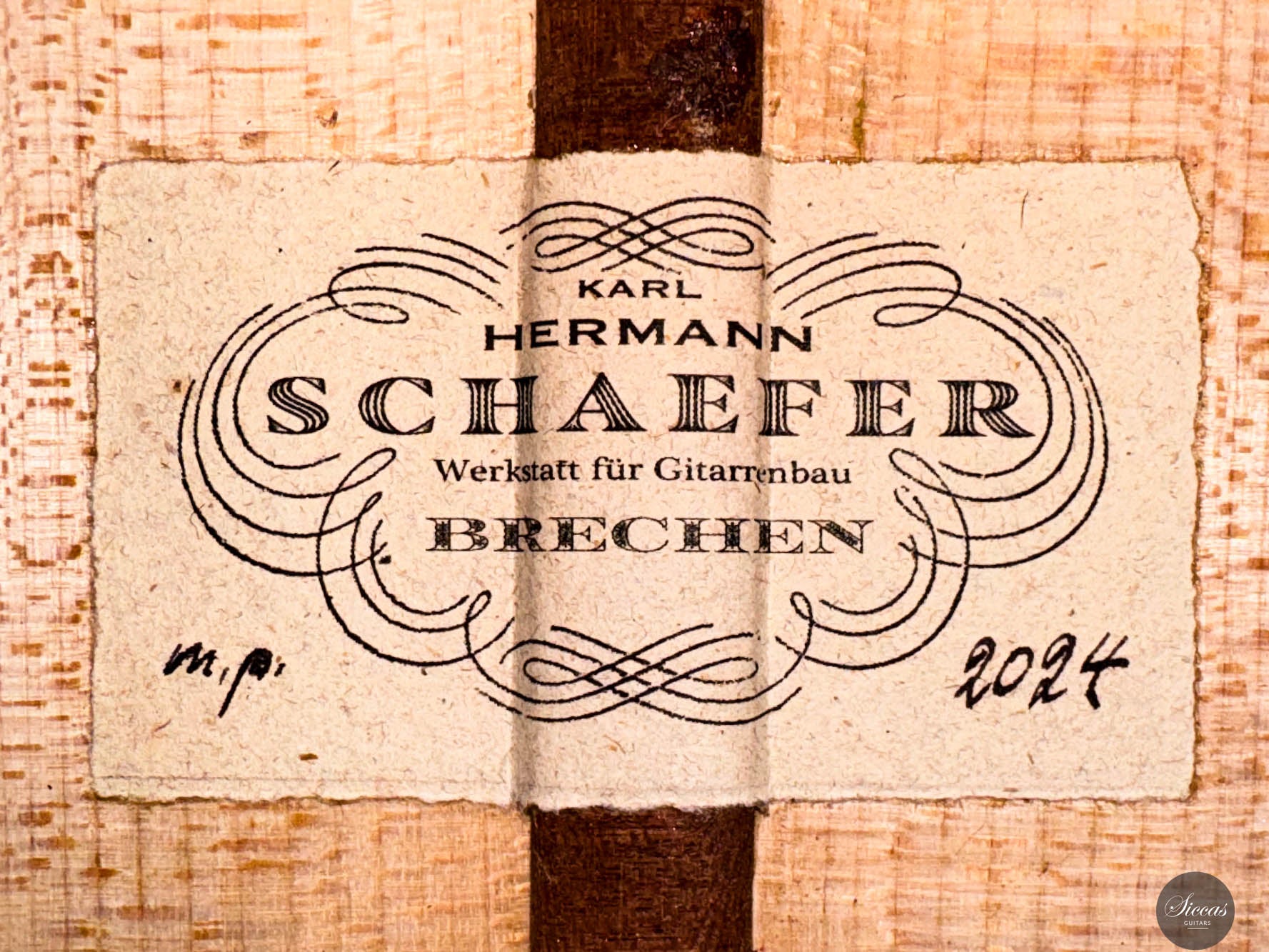 Karl-Hermann Schäfer begann 1966 mit dem Bau von Gitarren. Er absolvierte seine Lehre unter der Anleitung des Meister-Gitarrenbauers Ernest Köröskeny und studierte später bei Meister-Gitarrenbauer Dieter Hopf. Nachdem er von 1971 bis 1994 in Hopfs Werkstatt gearbeitet hatte, eröffnete er seine eigene in Oberneisen und zog fünf Jahre später nach Niederbrechen, Deutschland. Karl-Hermann Schäfer hat sich darauf spezialisiert, die wunderbarsten Repliken zu fertigen, die man sich nur wünschen kann. Diese Instrumente sind nicht nur gut gebaut, sondern bieten auch den sehr authentischen Klang von Meisterinstrumenten der Vergangenheit.