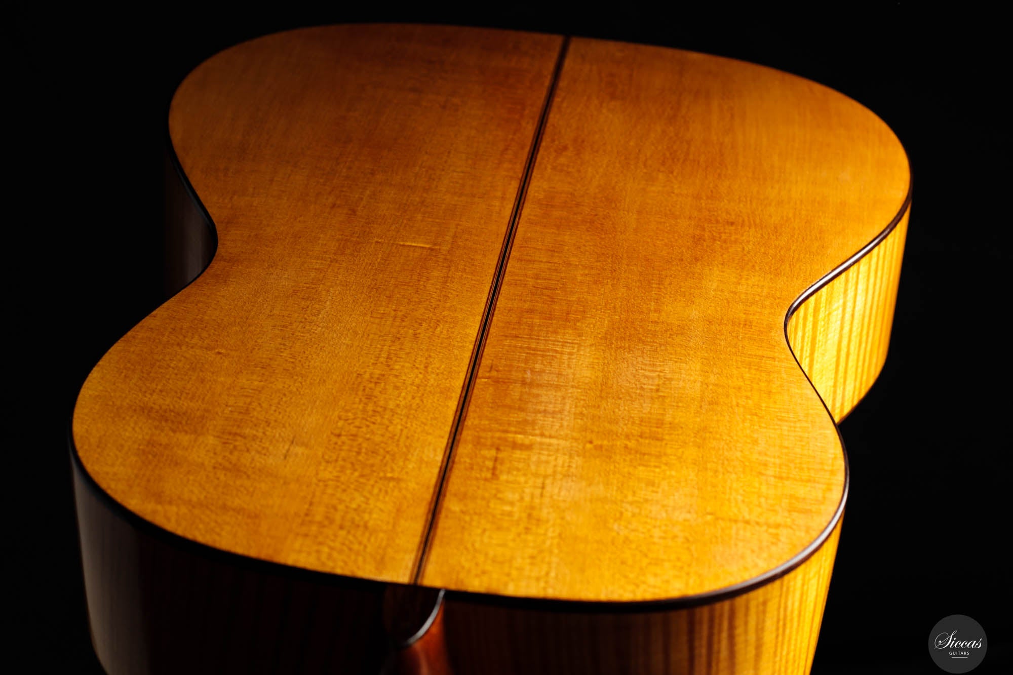 Die Karl-Hermann Schäfer Gitarre von 2024 zollt den reichen Traditionen des deutschen Gitarrenhandwerks Tribut, inspiriert von den legendären deutschen Gitarren von 1937. Während das Original aus brasilianischem Palisander gefertigt wurde, vereint diese moderne Interpretation eine Fichtendecke mit der raffinierten Eleganz von Ahorn für Rücken und Seiten, was eine durchdachte Materialwahl zeigt.