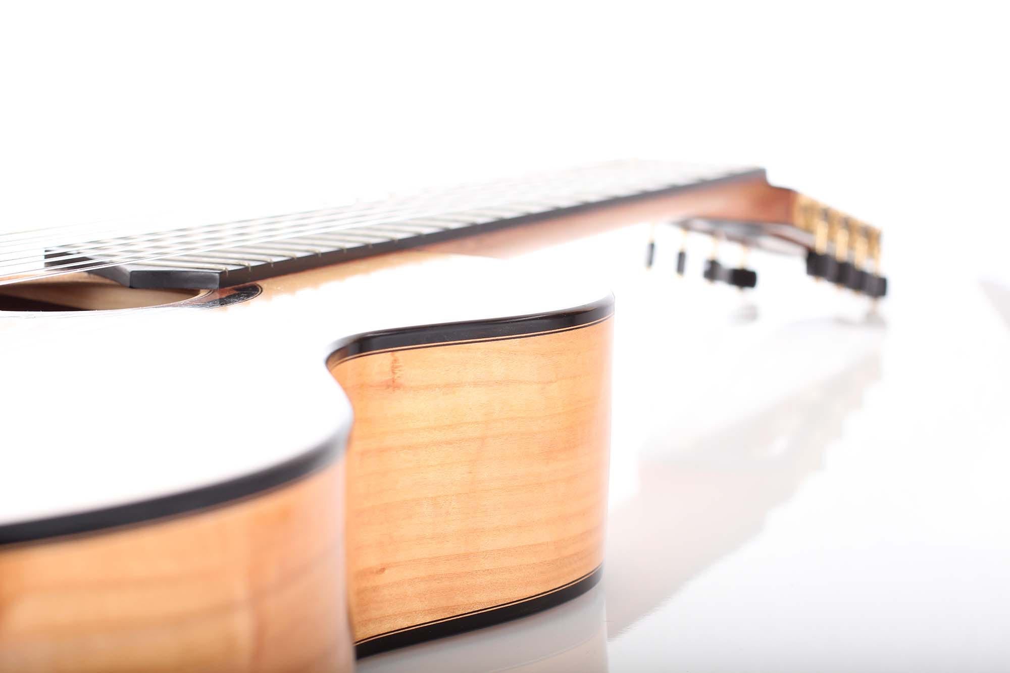 Die klassische Gitarre mit ihren weichen Nylonsaiten und ihrem charakteristischen Timbre ist zum Symbol der Kammermusik, der spanischen Tradition und des Konzertrepertoires geworden. Ihre moderne Form prägte Antonio de Torres im 19. Jahrhundert, indem er den Standard für Korpus, Fächerbeleistung und die 65-Zentimeter-Mensur setzte, die bis heute verwendet werden. Instrumente dieser Kategorie eröffnen eine reiche Palette von den feinen romantischen Miniaturen Tárregas bis zu den majestätischen Konzerten Rodrigos. Hier finden Sie Gitarren, die historische Kontinuität bewahren und zugleich zu neuen Interpretationen anregen.Alle Gitarren der Kollektion ansehen -