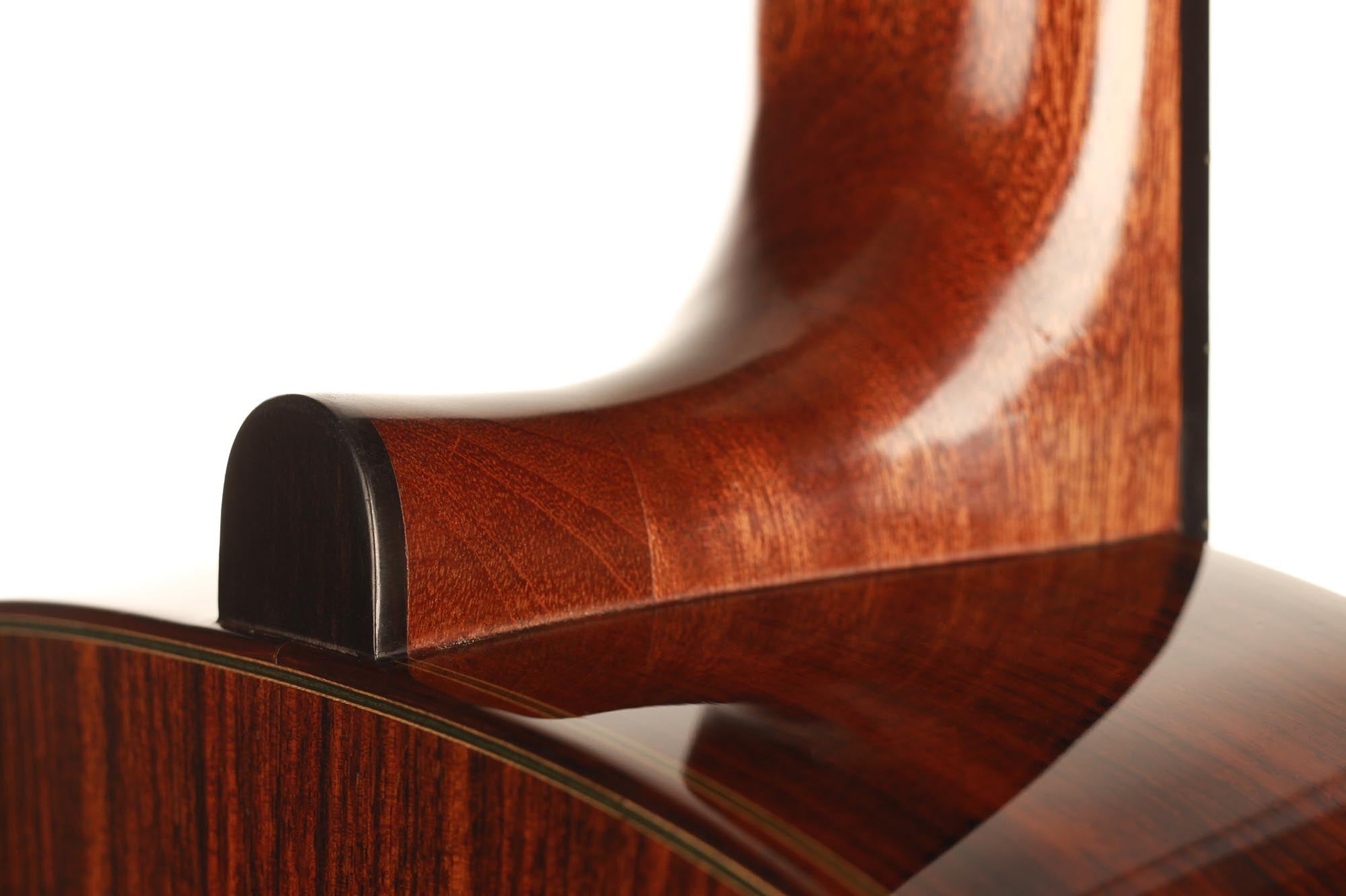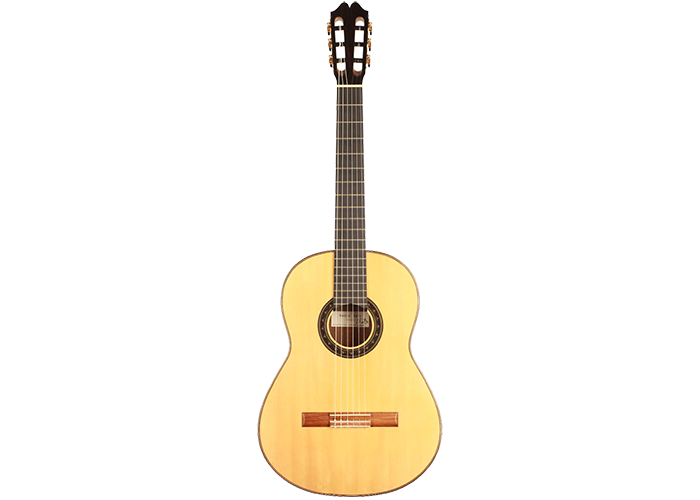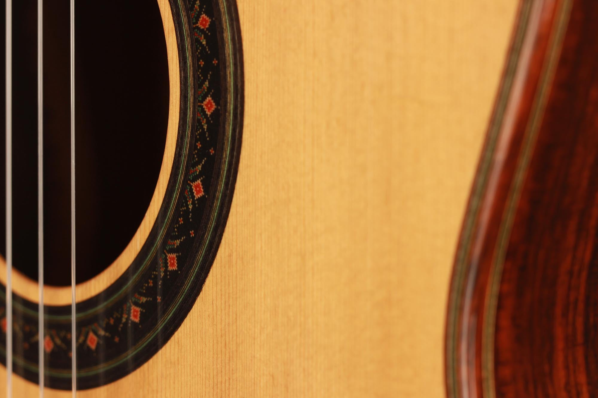 Dieses 2019er Kazuo Sato Prelude Modell hat eine Decke aus Alpenfichte. Der Boden und die Zargen sind aus indischem Palisander gefertigt. Das Design zeichnet sich durch eine schlichte Eleganz aus. Die Gitarre ist mit Mechaniken von Alessi ausgestattet und mit Schellack veredelt. Sie reagiert schnell, ist kräftig, ausgeglichen und hat einen harmonischen Charakter. Außerdem ist sie in einem hervorragenden Zustand mit einigen Spielspuren auf der Decke und einem kleinen, sehr gut reparierten Riss auf der Rückseite.