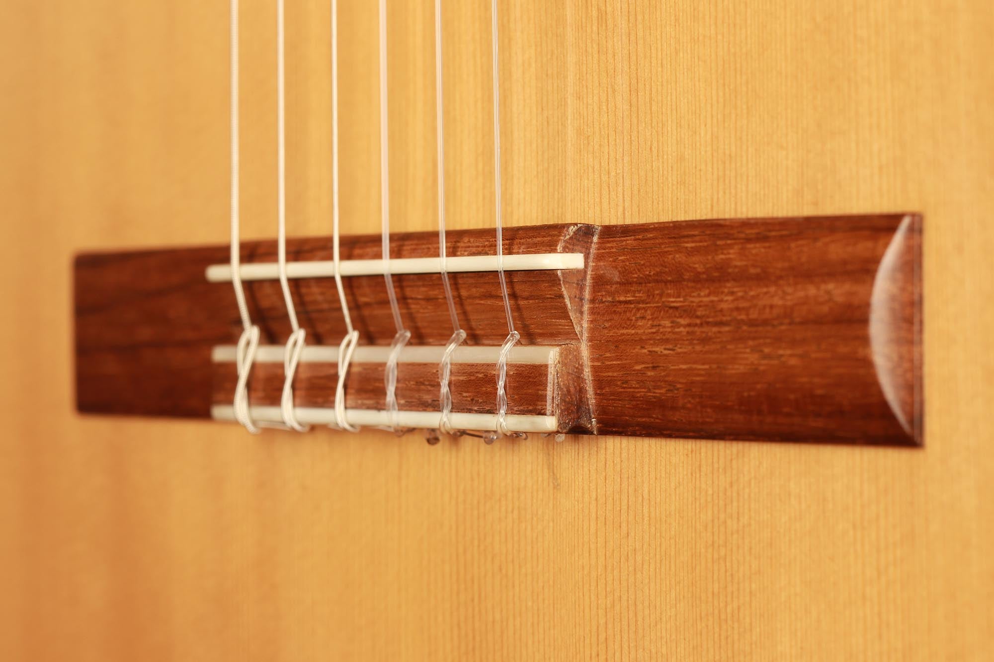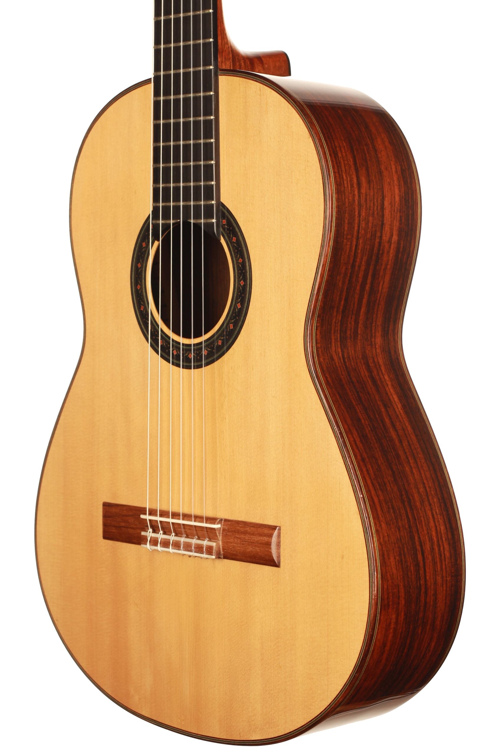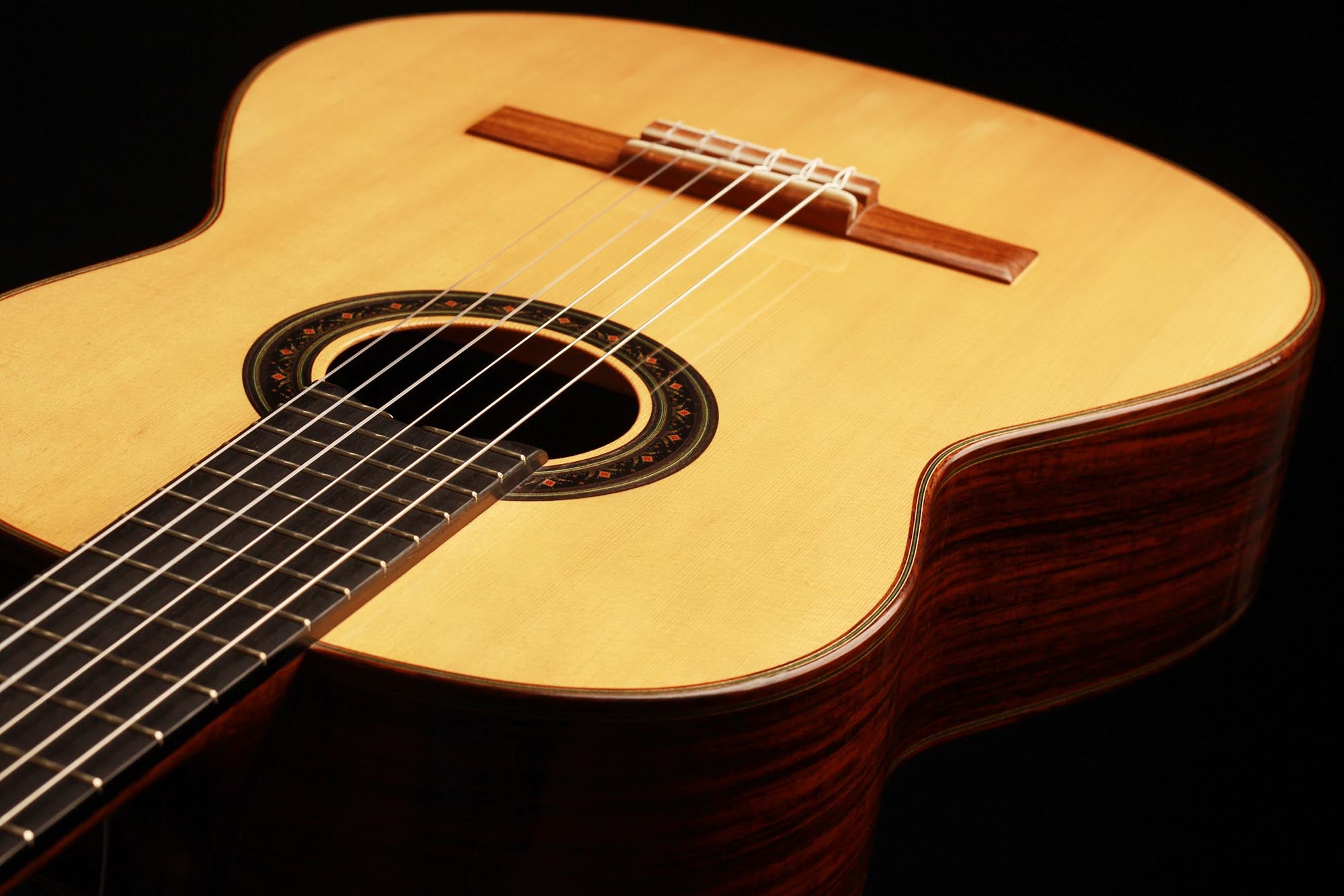 Dieses 2019er Kazuo Sato Prelude Modell hat eine Decke aus Alpenfichte. Der Boden und die Zargen sind aus indischem Palisander gefertigt. Das Design zeichnet sich durch eine schlichte Eleganz aus. Die Gitarre ist mit Mechaniken von Alessi ausgestattet und mit Schellack veredelt. Sie reagiert schnell, ist kräftig, ausgeglichen und hat einen harmonischen Charakter. Außerdem ist sie in einem hervorragenden Zustand mit einigen Spielspuren auf der Decke und einem kleinen, sehr gut reparierten Riss auf der Rückseite.