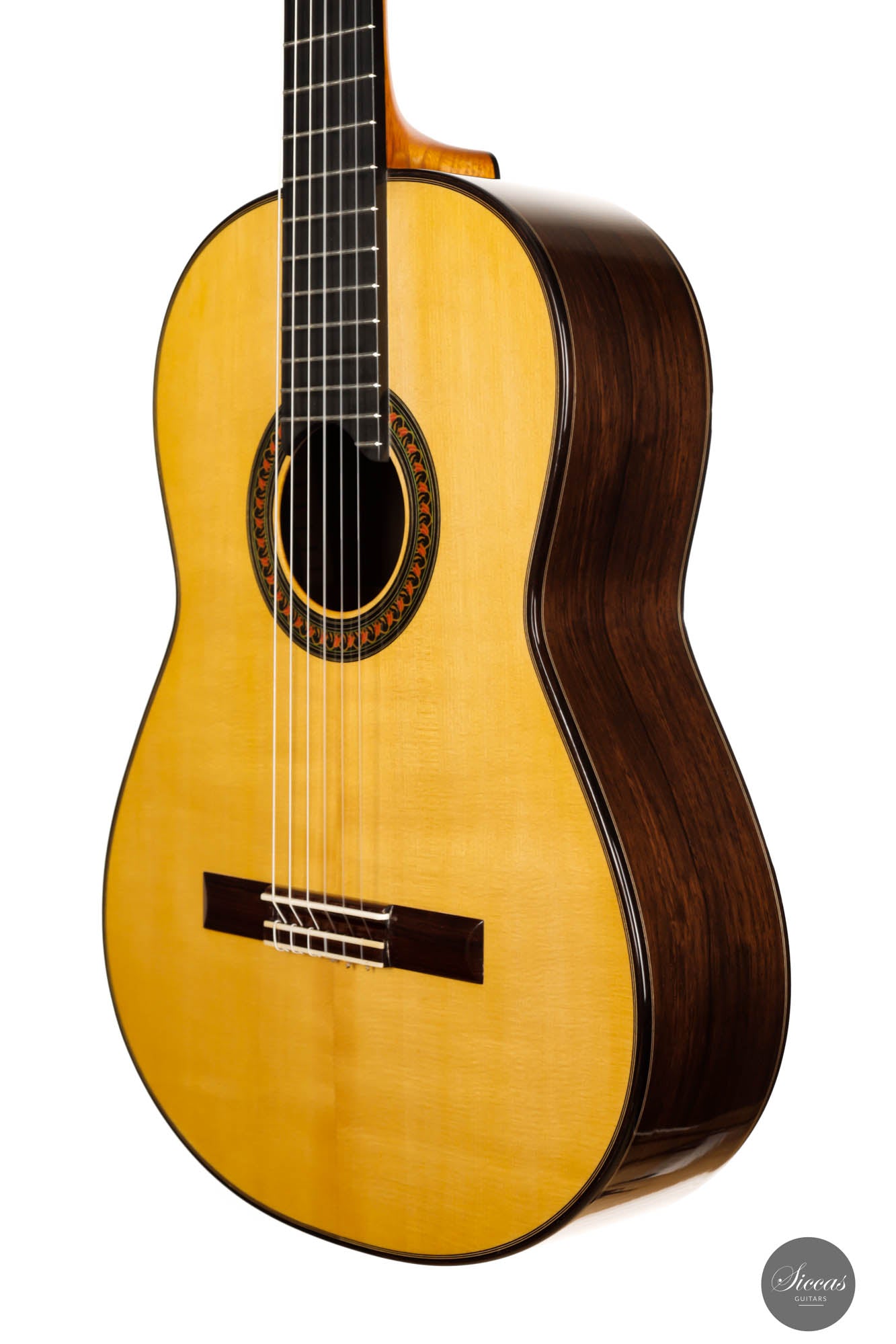 Das "Prestige"-Modell von Kazuo Sato ist neben seinem "Special"-Modell das Satos Spitzenmodell. Das stark gemaserte Madagaskarpalisander Holz, welches für Boden und Zargen ausgewählt wurde ist von bemerkenswerter Qualität. Eines der ersten klanglischen Eigenschaften die uns auffallen ist die exzellente Projektion, die dieses Instrument zu einer hervorragenden Konzertgitarre macht. Aufgrund ihrer reichen Klangfarben, ihres warmen Timbres und ihrer außergewöhnlichen Sensibilität bietet diese Gitarre dem Gitarristen unbegrenzte Möglichkeiten. Gebaut im Jahr 2022, weist sie nur oberflächliche Spielspuren auf. Diese Gitarre ist eine einmalige Chance, ein Kazuo Sato "Prestige"-Modell aus dem letzten Jahr ohne Wartezeit und zu einem sehr guten Preis zu erwerben.