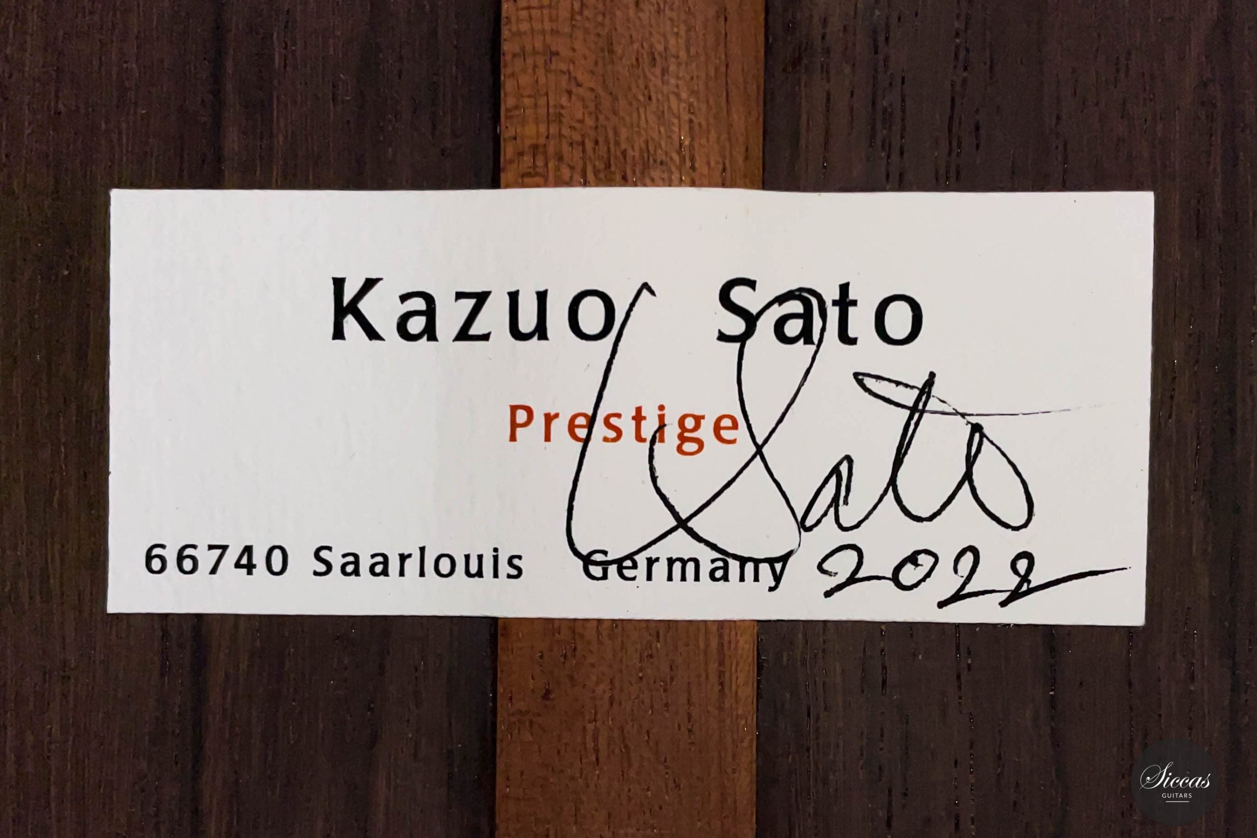 Kazuo Sato, 1946 in Tokio geboren, ist ein international bekannter Gitarrenbauer, der von 1965 bis 1971 bei Kuniharu Nobe in Japan in der Lehre war. Anschließend ging er in die Werkstatt von David Rubio in England, wo er mit einem weiteren namhaften Gitarrenbauer zusammenarbeitete, nämlich mit Paul Fischer. 1974 gründete er seine eigene Werkstatt in Deutschland, wo er immer noch ansässig ist und wo er nun mit seinem Sohn Hideo Sato zusammenarbeitet.