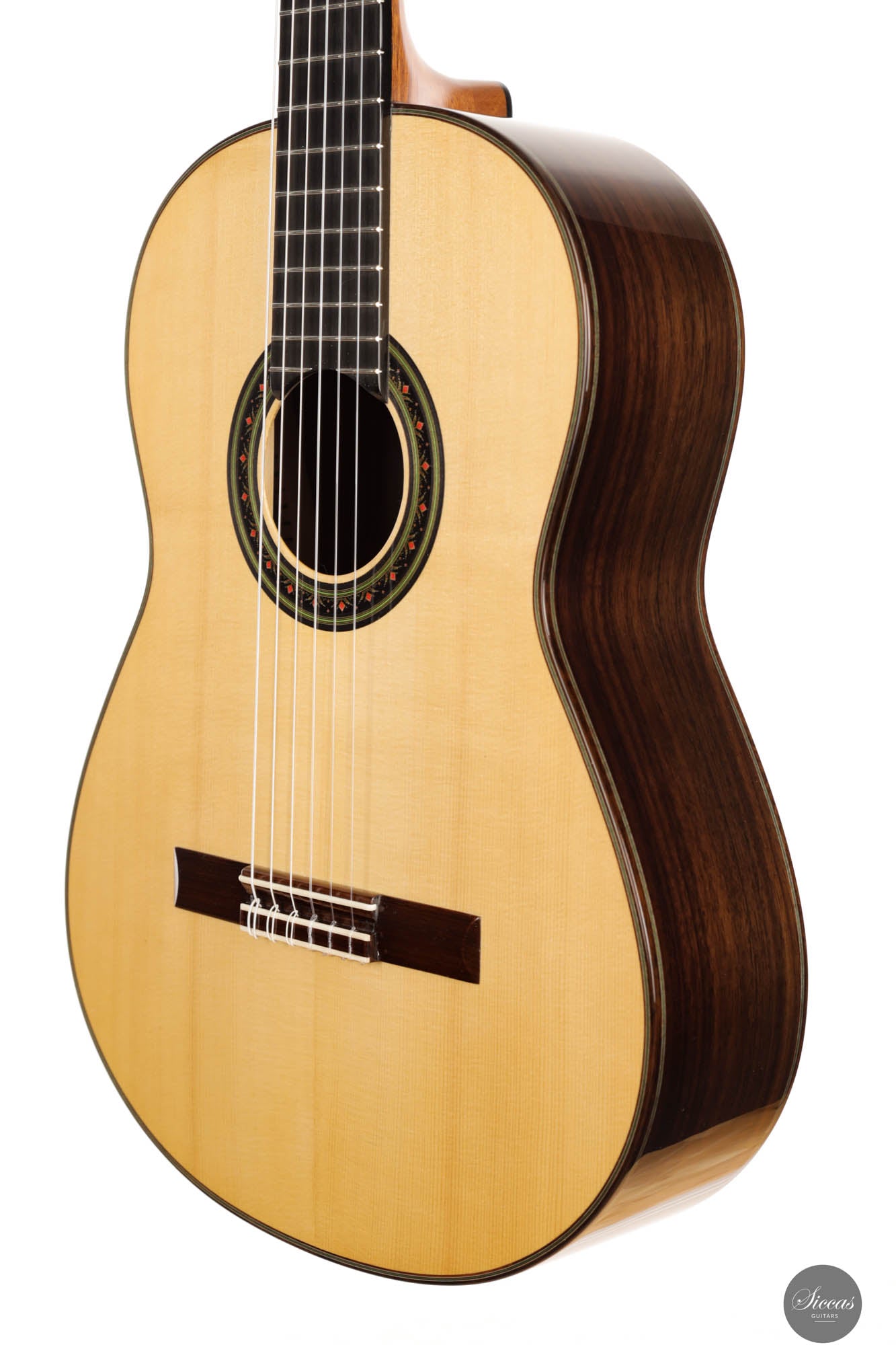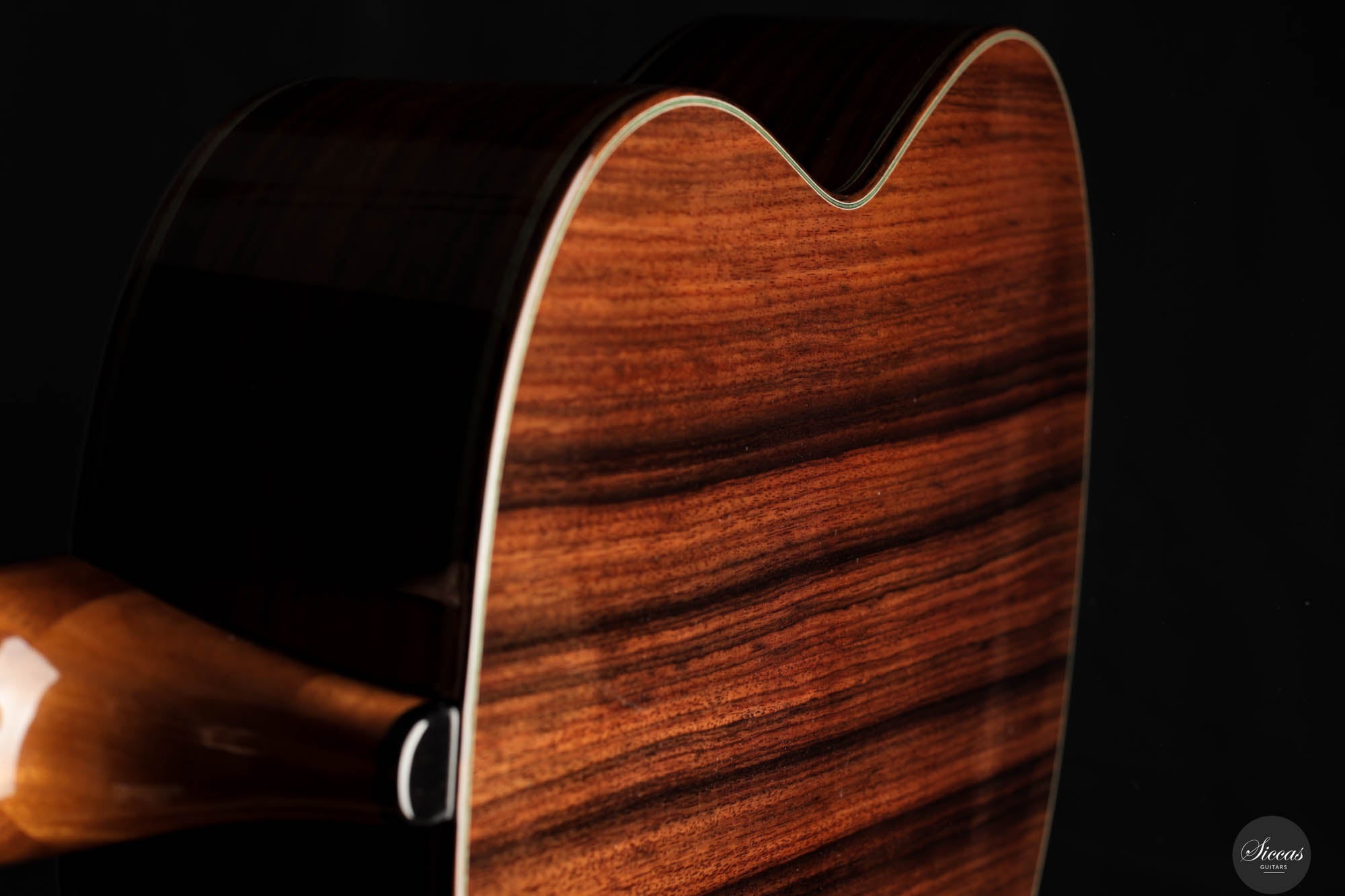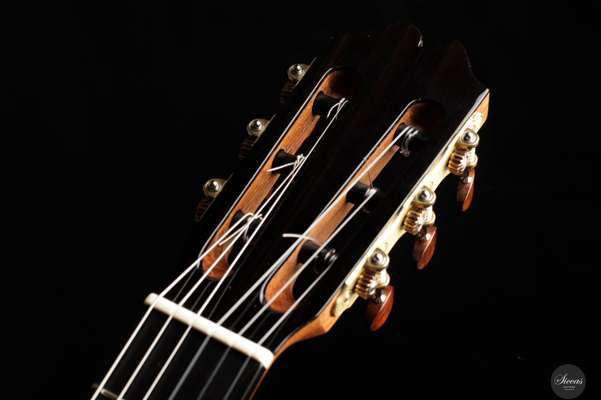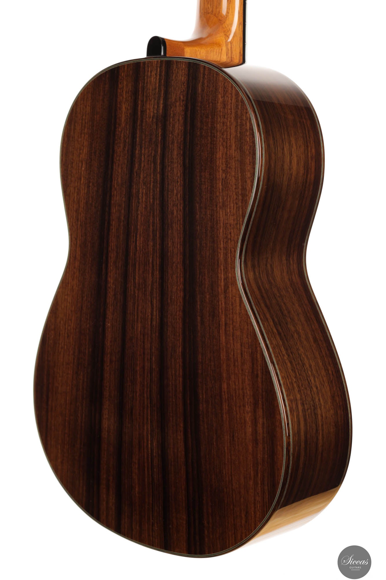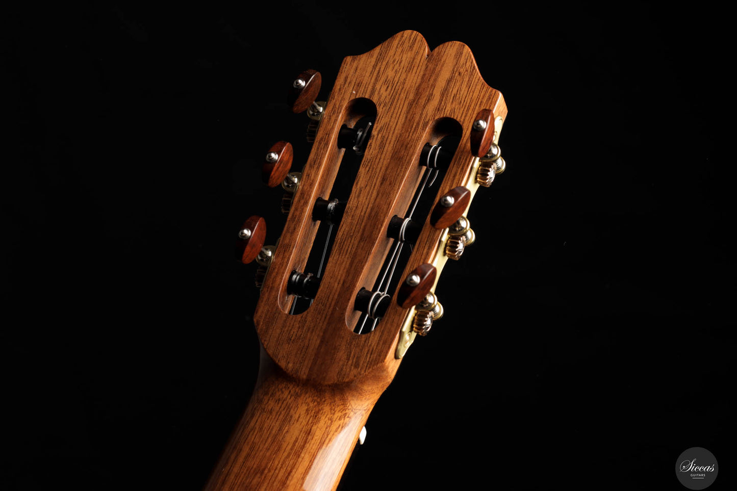 Diese exquisite Gitarre verfügt über eine Decke aus feinstem Alpenfichtenholz, bekannt für seine hervorragende Klangqualität, die wunderschön mit dem ästhetisch ansprechenden und klangvollen indischen Palisander für Rücken und Seiten kombiniert ist. Das Gesamterscheinungsbild strahlt eine verfeinerte Eleganz aus, die durch das Schellack-Finish verstärkt wird, das nicht nur schützt, sondern der Gitarre auch einen glänzenden Schimmer verleiht. Weitere Ergänzungen zu ihrem anspruchsvollen Design sind die Alessi-Mechaniken, bekannt für ihre Präzision und Zuverlässigkeit, die zum Premium-Feeling der Gitarre und zur Leichtigkeit des Stimmens beitragen.
