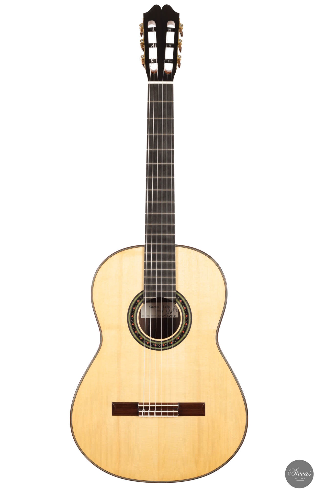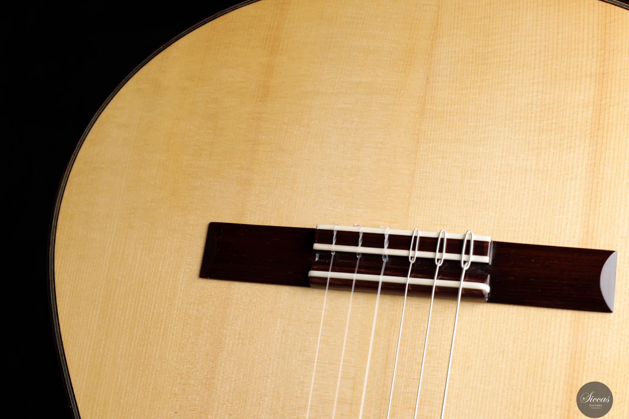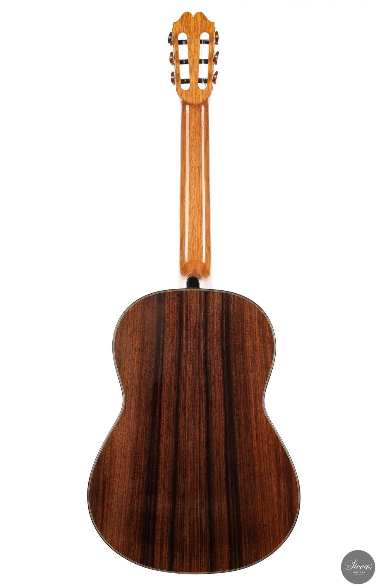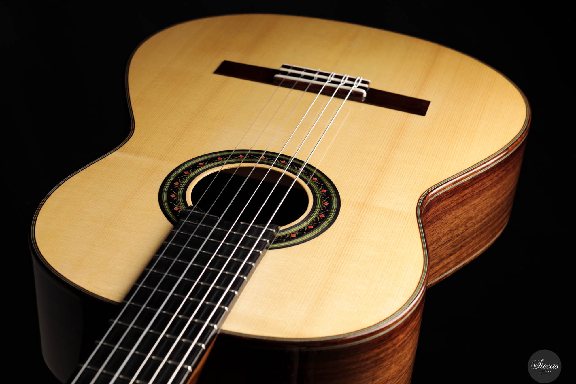 Diese exquisite Gitarre verfügt über eine Decke aus feinstem Alpenfichtenholz, bekannt für seine hervorragende Klangqualität, die wunderschön mit dem ästhetisch ansprechenden und klangvollen indischen Palisander für Rücken und Seiten kombiniert ist. Das Gesamterscheinungsbild strahlt eine verfeinerte Eleganz aus, die durch das Schellack-Finish verstärkt wird, das nicht nur schützt, sondern der Gitarre auch einen glänzenden Schimmer verleiht. Weitere Ergänzungen zu ihrem anspruchsvollen Design sind die Alessi-Mechaniken, bekannt für ihre Präzision und Zuverlässigkeit, die zum Premium-Feeling der Gitarre und zur Leichtigkeit des Stimmens beitragen.