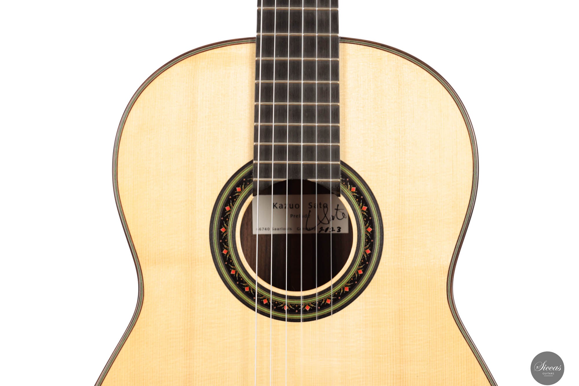 Kazuo Sato, 1946 in Tokio geboren, ist ein international bekannter Gitarrenbauer, der von 1965 bis 1971 bei Kuniharu Nobe in Japan in der Lehre war. Anschließend ging er in die Werkstatt von David Rubio in England, wo er mit einem weiteren namhaften Gitarrenbauer zusammenarbeitete, nämlich mit Paul Fischer. 1974 gründete er seine eigene Werkstatt in Deutschland, wo er immer noch ansässig ist und wo er nun mit seinem Sohn Hideo Sato zusammenarbeitet.