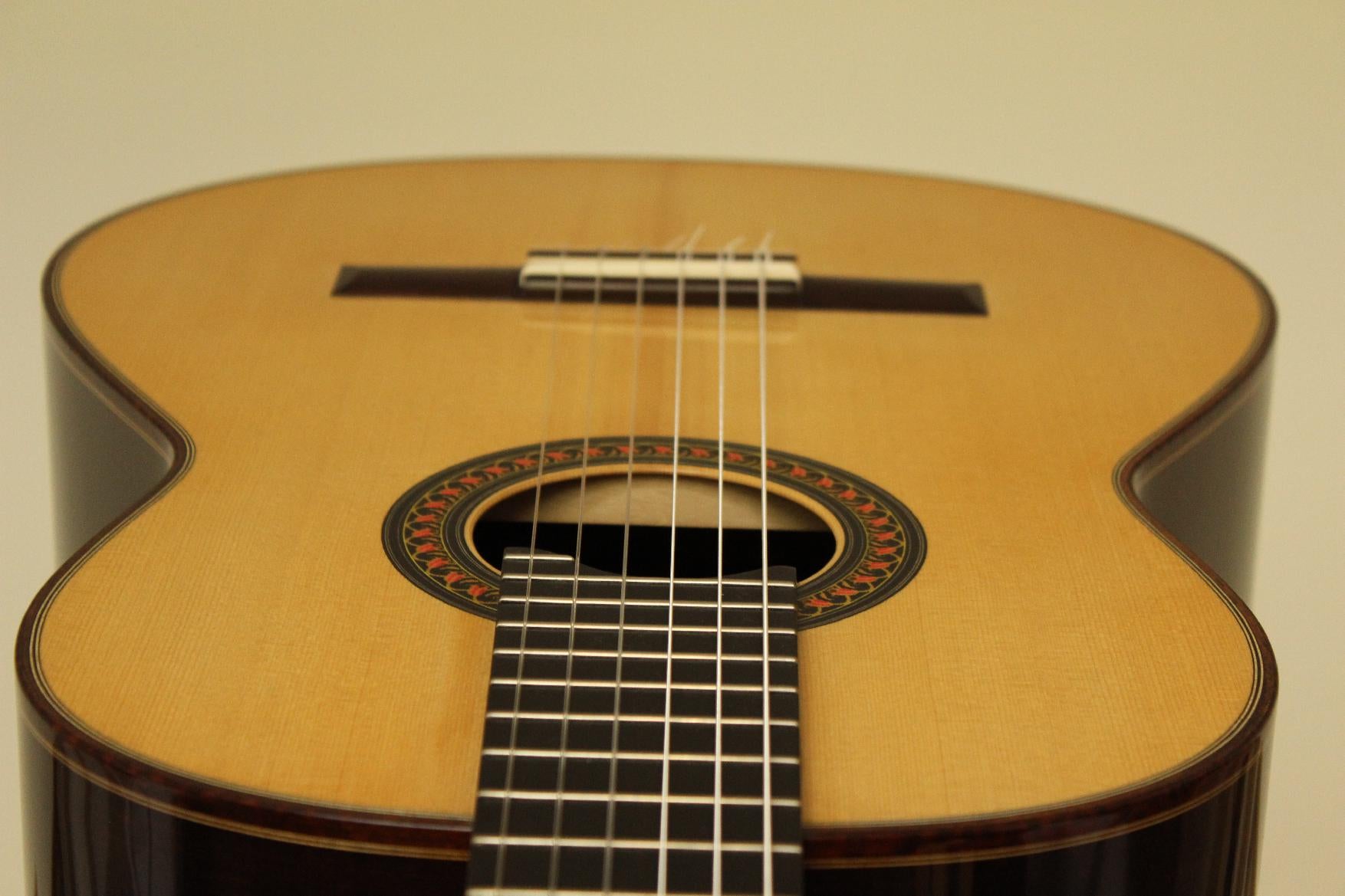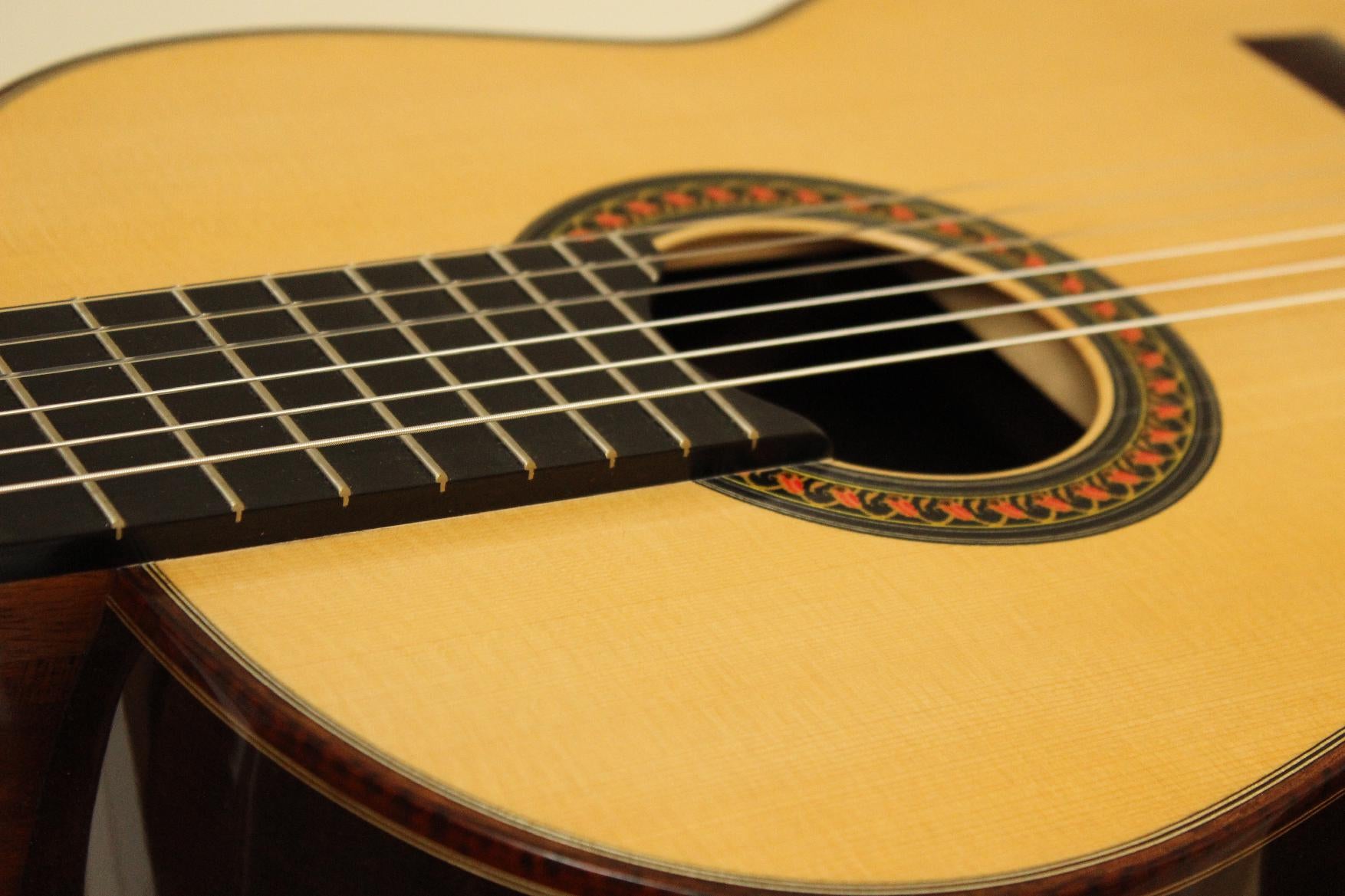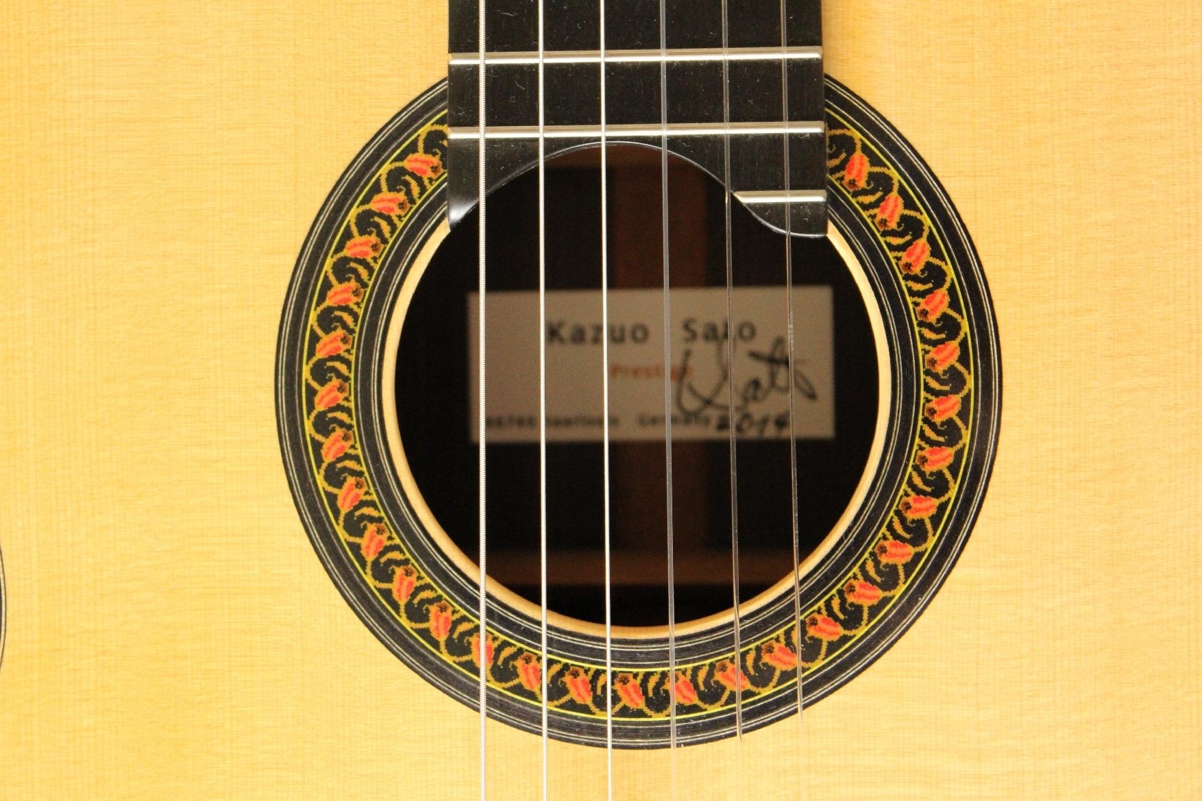 Ein ganz besonderes Meisterstück ist diese Gitarre von Kazuo Sato. Die "Prestige" entsteht durch aufwändige Handarbeit mit ausgewählten, edlen Materialien, wie Alpenfichte für die Decke und feinstem Madagaskar Palisander für Boden und Zargen. Das Design besticht durch schlichte Eleganz. Verziert werden Boden- und Deckenrand mit dunklem Palisander und Schlangenholz, die Rosette mit Tulpenmosaiken. Die Mechaniken von Alessi zitieren mit Wirbeln aus Schlangenholz Elemente der Korpusverzierung. Veredelt wird die Gitarre mit einer Politur aus Schellack. Wie kaum eine andere Gitarre verbindet die "Prestige" einen großen Dynamikumfang und Klangfarbenreichtum zu einer harmonischen Einheit. Durch schnelle Ansprache, starkes Durchsetzungsvermögen und ihren vielfältigen Charakter erweckt sie unbändige Spielfreude.