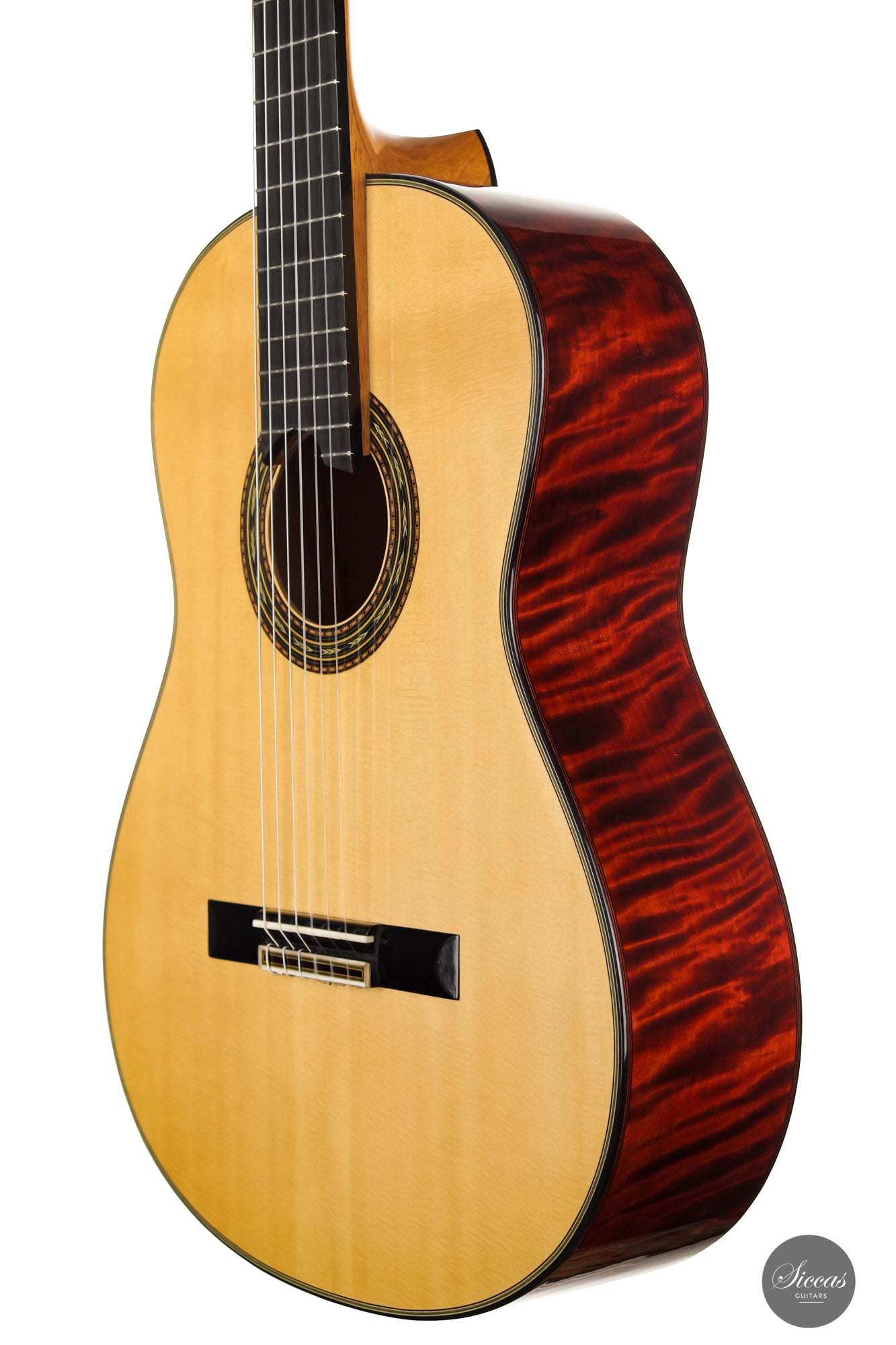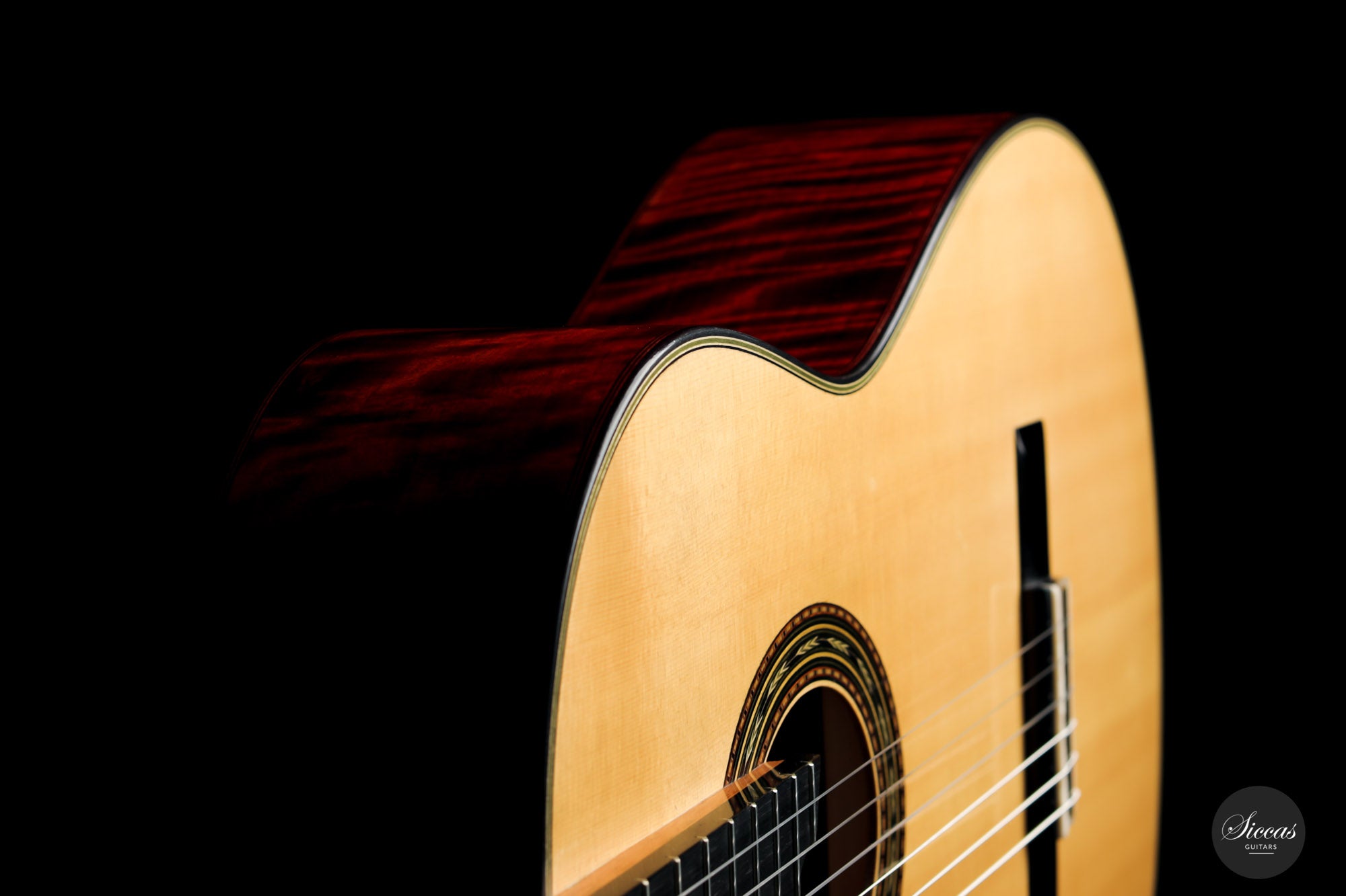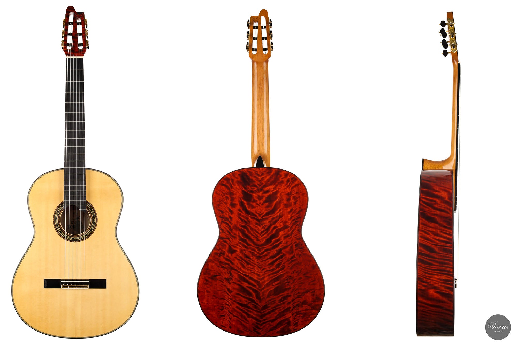 This wonderful instrument can sound both gentle and robust. It has the potential to fill any concert hall with a virtuosic tone, and remains just as convincing when played piano or in slow and carried pieces. The treble sounds rich and pronounced, with an interesting compact tone and great sustain. A real sense of equilibrium emanates from this instrument, resulting in a delightful playing experience for any passionate guitarist.