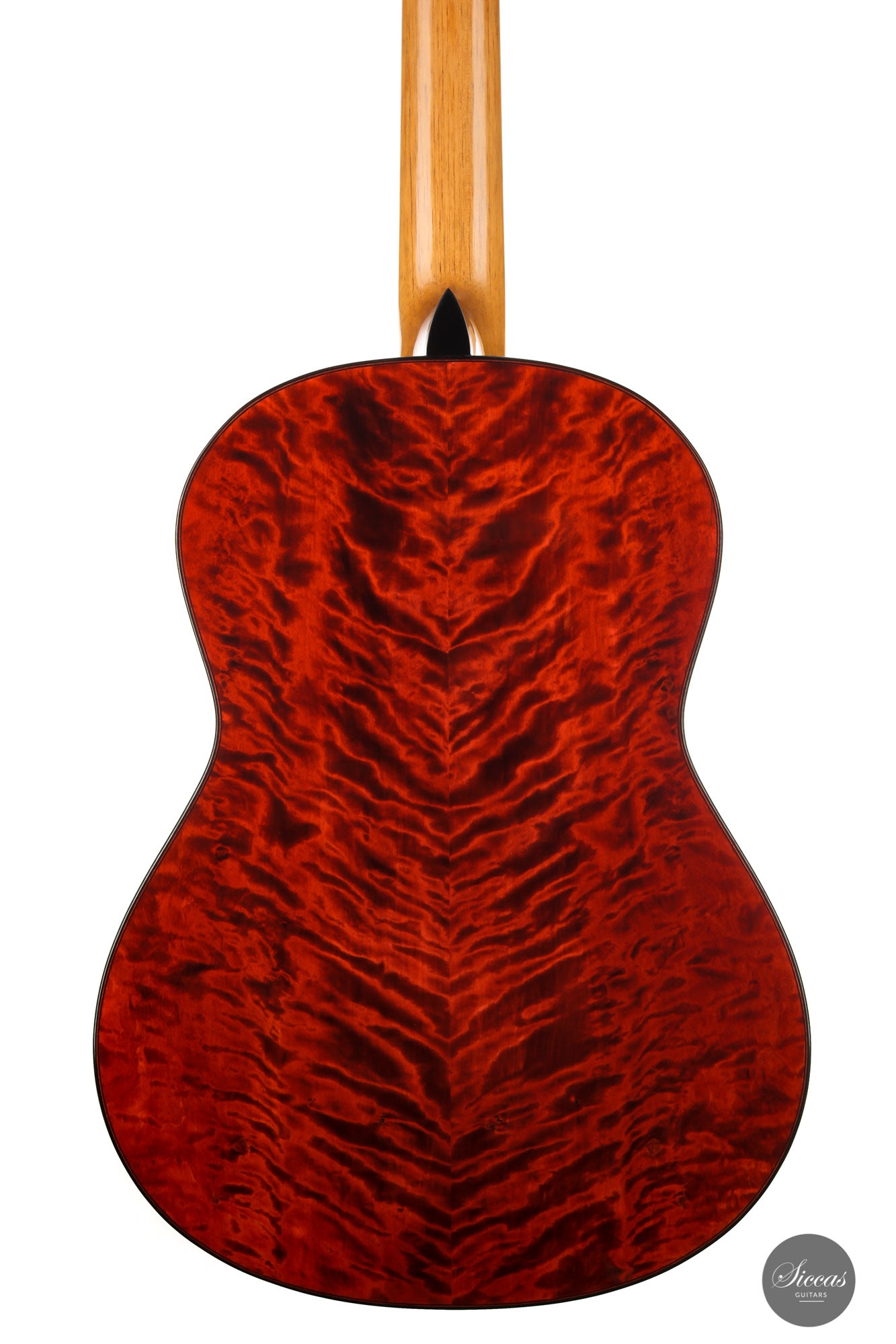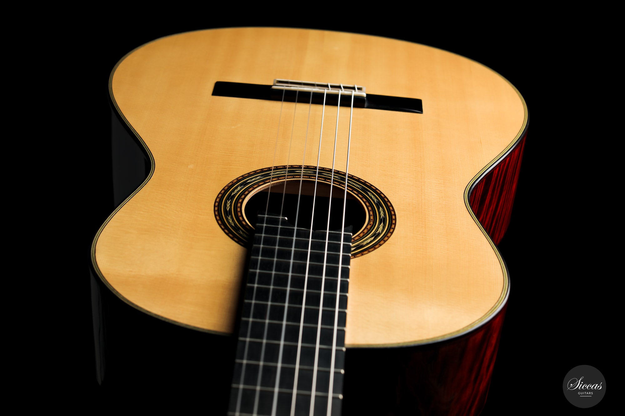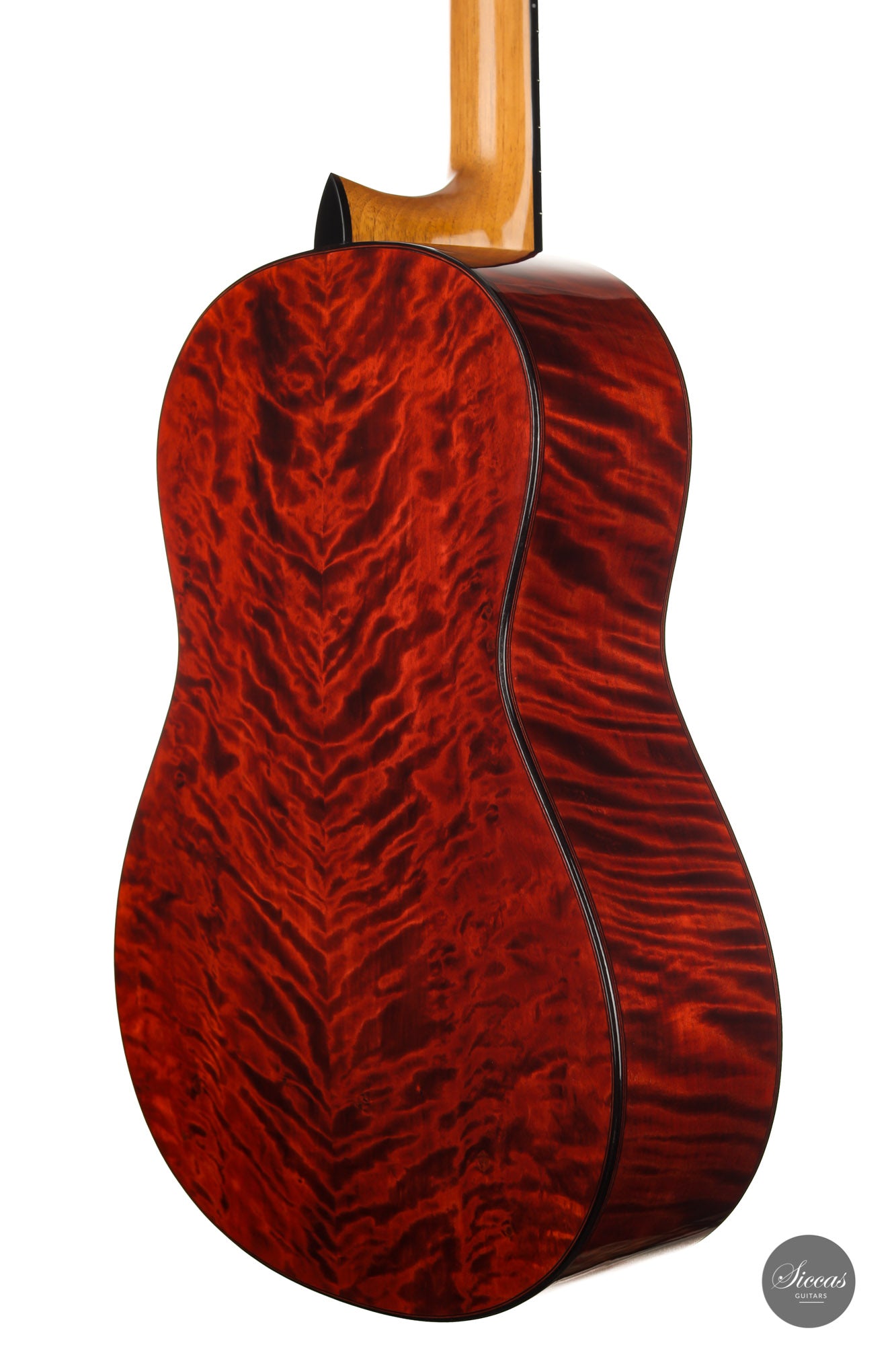 This wonderful instrument can sound both gentle and robust. It has the potential to fill any concert hall with a virtuosic tone, and remains just as convincing when played piano or in slow and carried pieces. The treble sounds rich and pronounced, with an interesting compact tone and great sustain. A real sense of equilibrium emanates from this instrument, resulting in a delightful playing experience for any passionate guitarist.