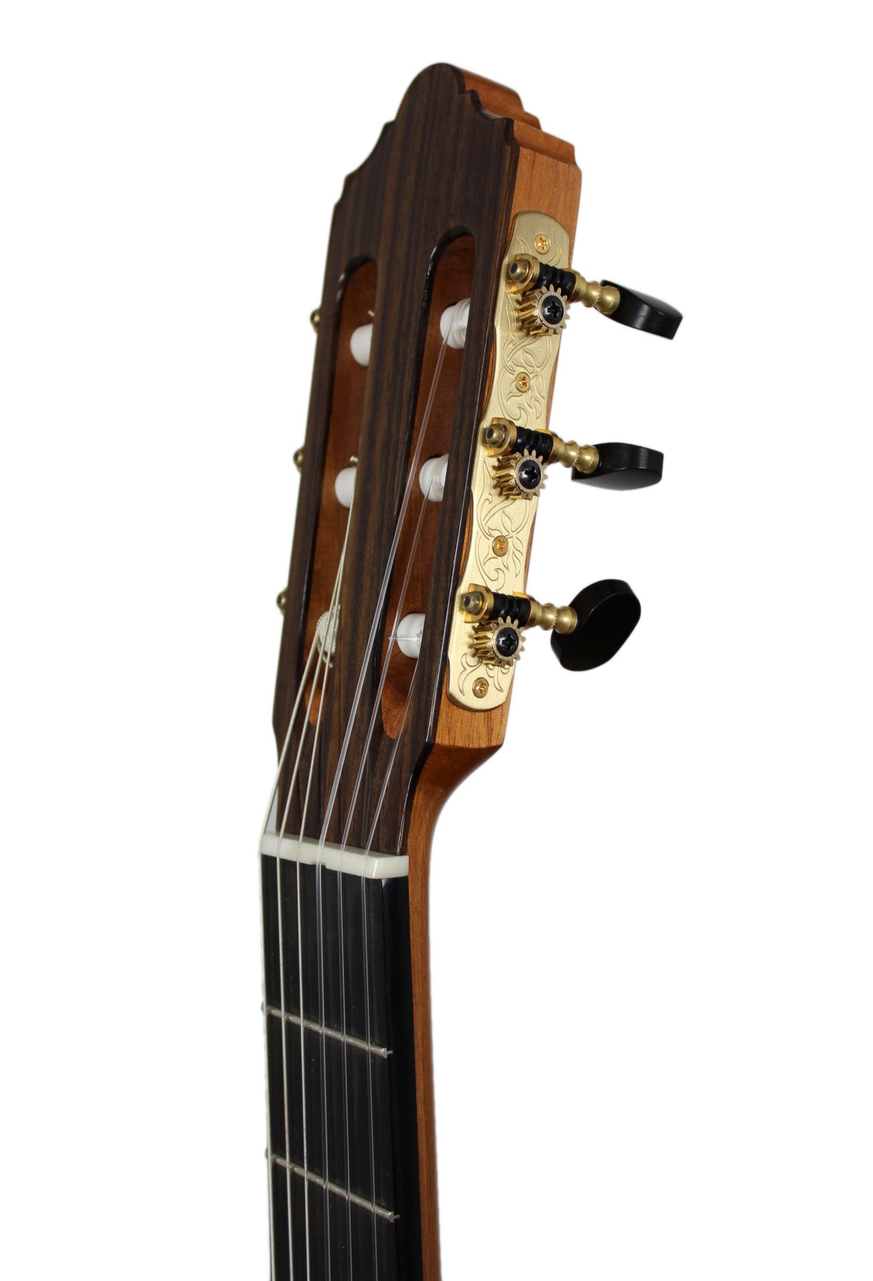Die klassische Gitarre mit ihren weichen Nylonsaiten und ihrem charakteristischen Timbre ist zum Symbol der Kammermusik, der spanischen Tradition und des Konzertrepertoires geworden. Ihre moderne Form prägte Antonio de Torres im 19. Jahrhundert, indem er den Standard für Korpus, Fächerbeleistung und die 65-Zentimeter-Mensur setzte, die bis heute verwendet werden. Instrumente dieser Kategorie eröffnen eine reiche Palette von den feinen romantischen Miniaturen Tárregas bis zu den majestätischen Konzerten Rodrigos. Hier finden Sie Gitarren, die historische Kontinuität bewahren und zugleich zu neuen Interpretationen anregen.Alle Produkte der Kollektion ansehen -