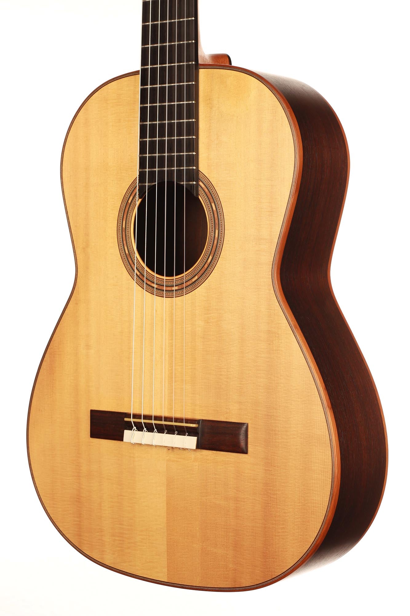 Kevin Aram was born in 1949 and grew up in Clipstone in the UK. He started building guitars full-time in 1978 and built more than 300 guitars since then. He also had the chance to study and restore great XIXth and XXth century instruments built by Vicente Arias, Domingo Esteso, Santos Hernandez, Manuel Ramirez and José Luis Romanillos for example. Kevin Aram focuses on the construction of guitars in the Torres tradition since 1991. Julian Bream famously owned a 1980s Kevin Aram guitar and recorded his 1988 instrument on his CD: “Julian Bream – La Guitarra Romantica”.