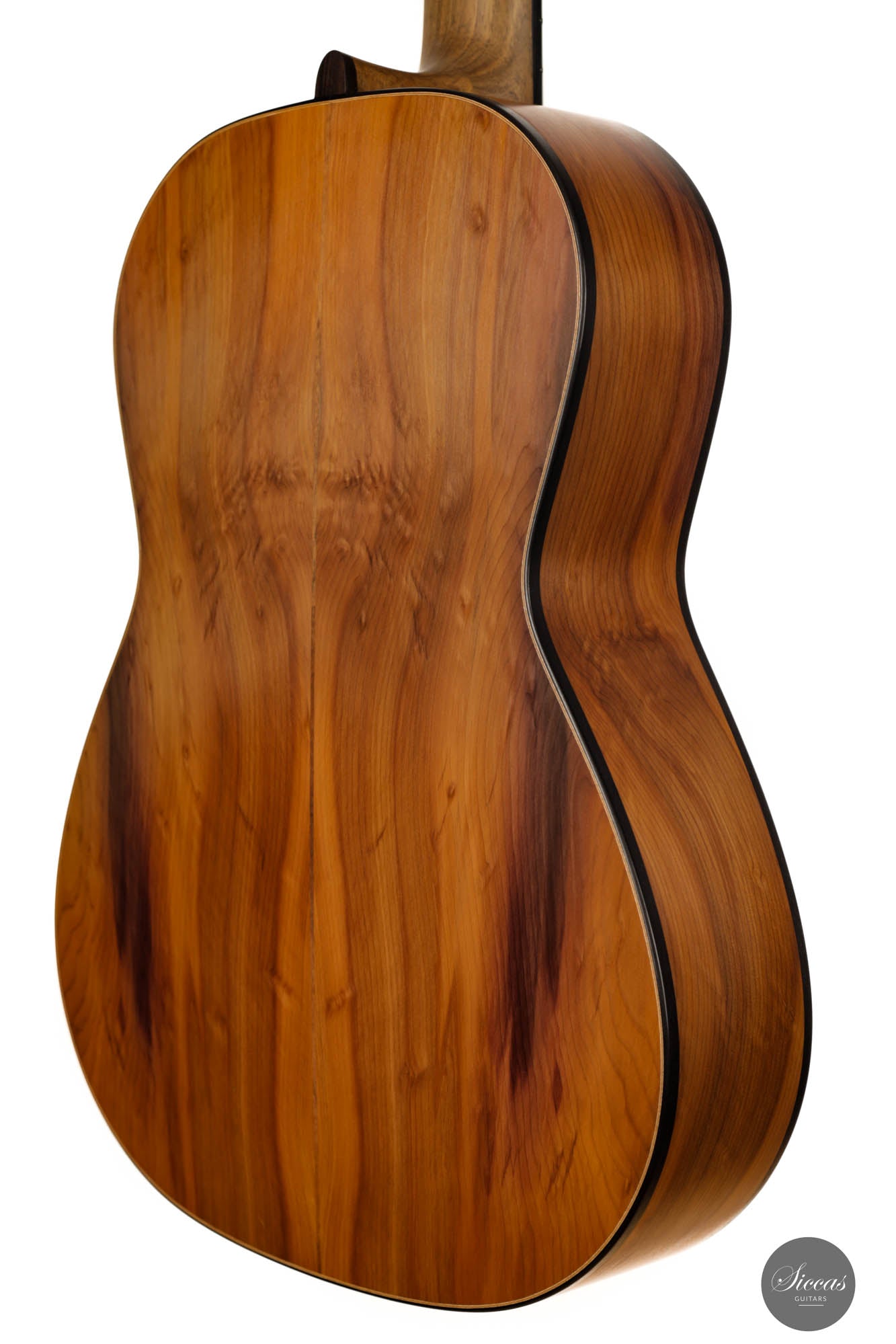 Das Design der Gitarre ist zeitlos und verbindet Eleganz und akustische Qualität in einer harmonischen Ehe. Der Korpus der Gitarre resoniert zwischen F# und G und liefert einen reichen, altmodischen Klang. Erwarten Sie tiefe, resonante Bässe, klare Höhen und alle modernen Eigenschaften, die von heutigen anspruchsvollen Gitarristen gesucht werden. Perfekt als Konzertgitarre, zeigt sie die Entwicklung klassischer Musikinstrumente.