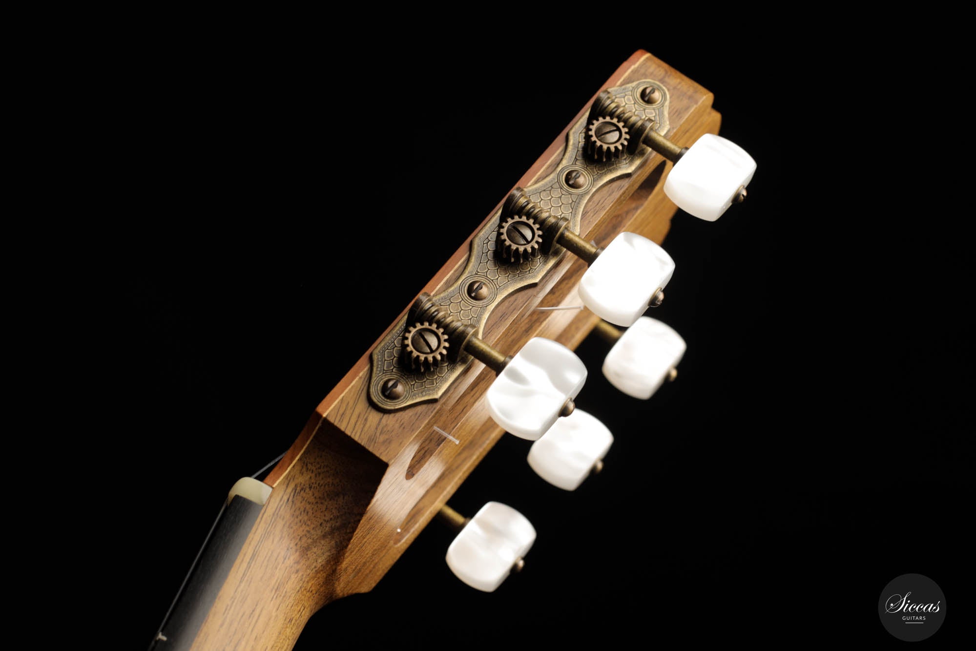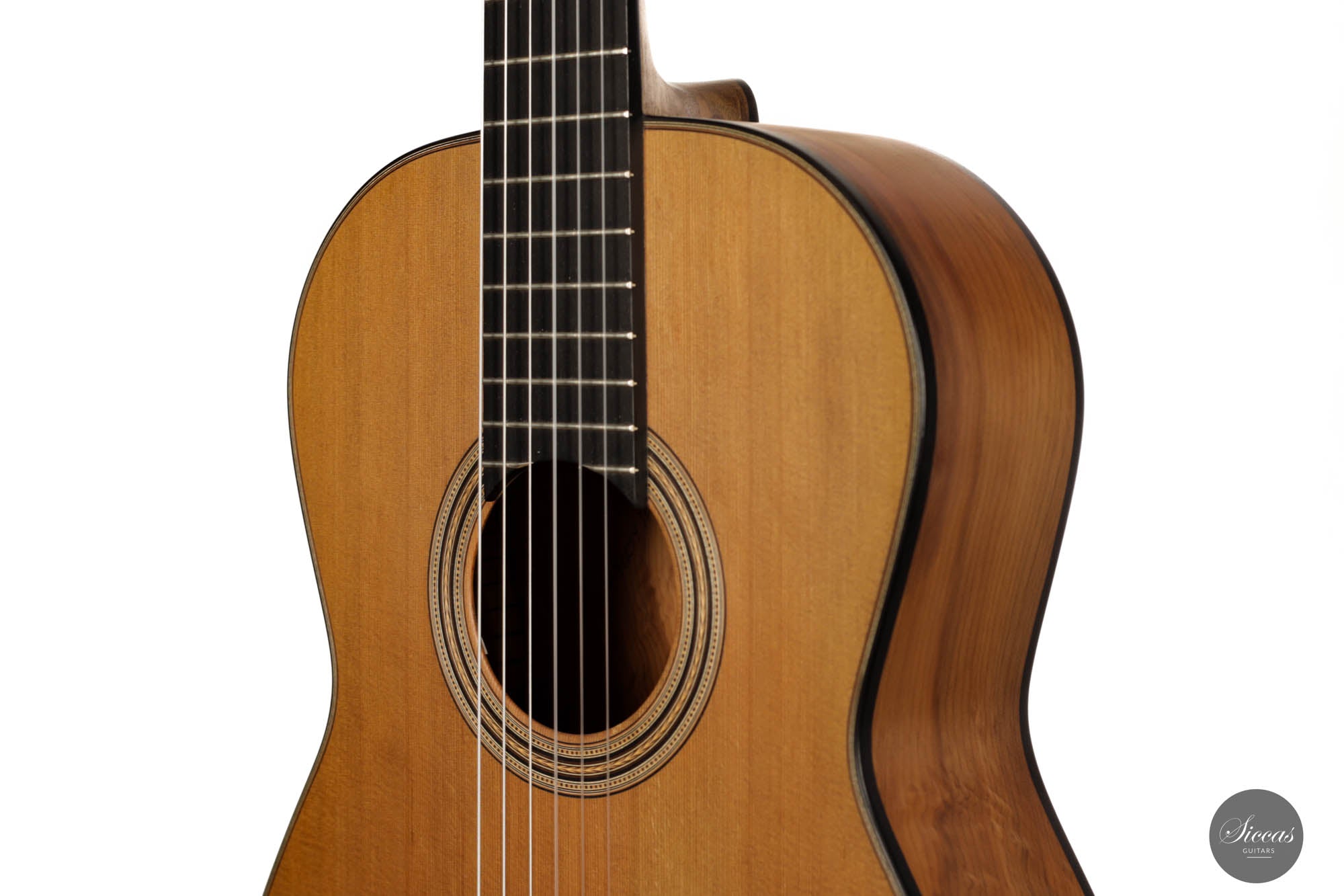 Die klassische Gitarre mit ihren weichen Nylonsaiten und ihrem charakteristischen Timbre ist zum Symbol der Kammermusik, der spanischen Tradition und des Konzertrepertoires geworden. Ihre moderne Form prägte Antonio de Torres im 19. Jahrhundert, indem er den Standard für Korpus, Fächerbeleistung und die 65-Zentimeter-Mensur setzte, die bis heute verwendet werden. Instrumente dieser Kategorie eröffnen eine reiche Palette von den feinen romantischen Miniaturen Tárregas bis zu den majestätischen Konzerten Rodrigos. Hier finden Sie Gitarren, die historische Kontinuität bewahren und zugleich zu neuen Interpretationen anregen.