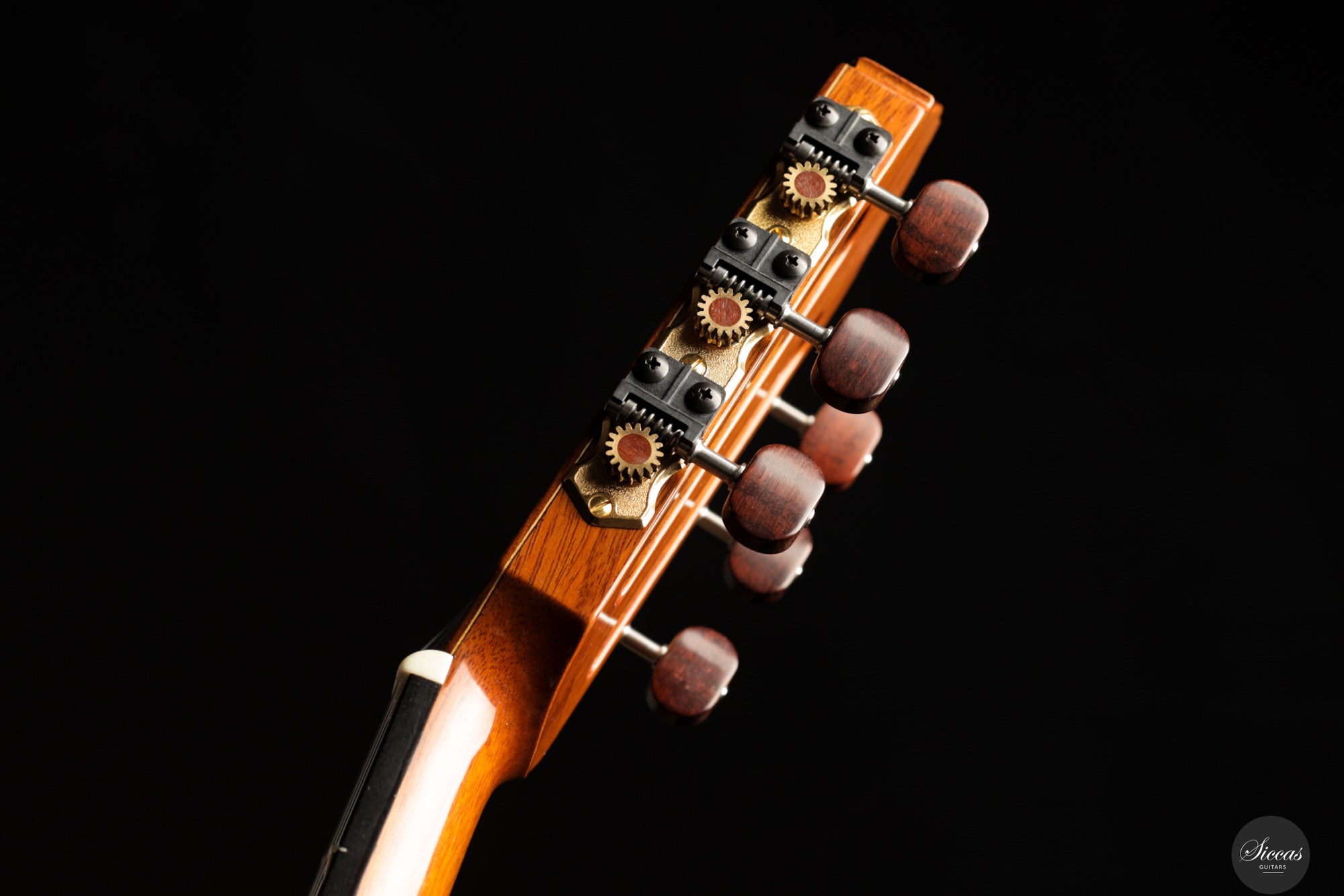 Die Decke ist mit einer matten Wachsoberfläche versehen, die die natürliche Resonanz der Zeder bewahrt. Der Korpus ist mit einem Polyurethanlack geschützt. Die Gilbert-Mechaniken mit reibungsarmem System erlauben ein präzises, geschmeidiges Stimmen – ganz ohne Öl oder Schmiermittel. Diese Gitarre ist ein echtes Beispiel für das australische Lattice-Konzept: kraftvoll, effizient und klanglich ausgereift, mit exzellenter Klarheit, Balance und Projektion, ohne an Wärme oder Charakter zu verlieren.