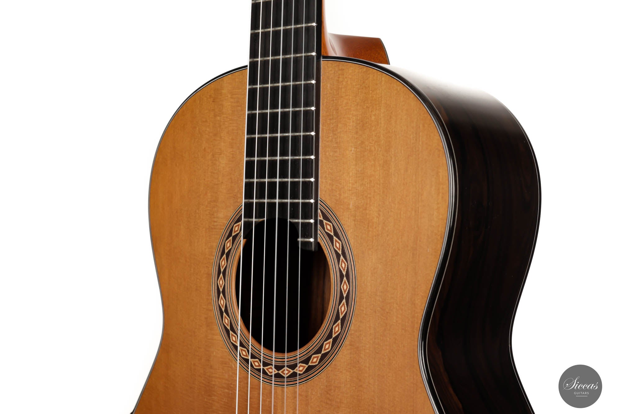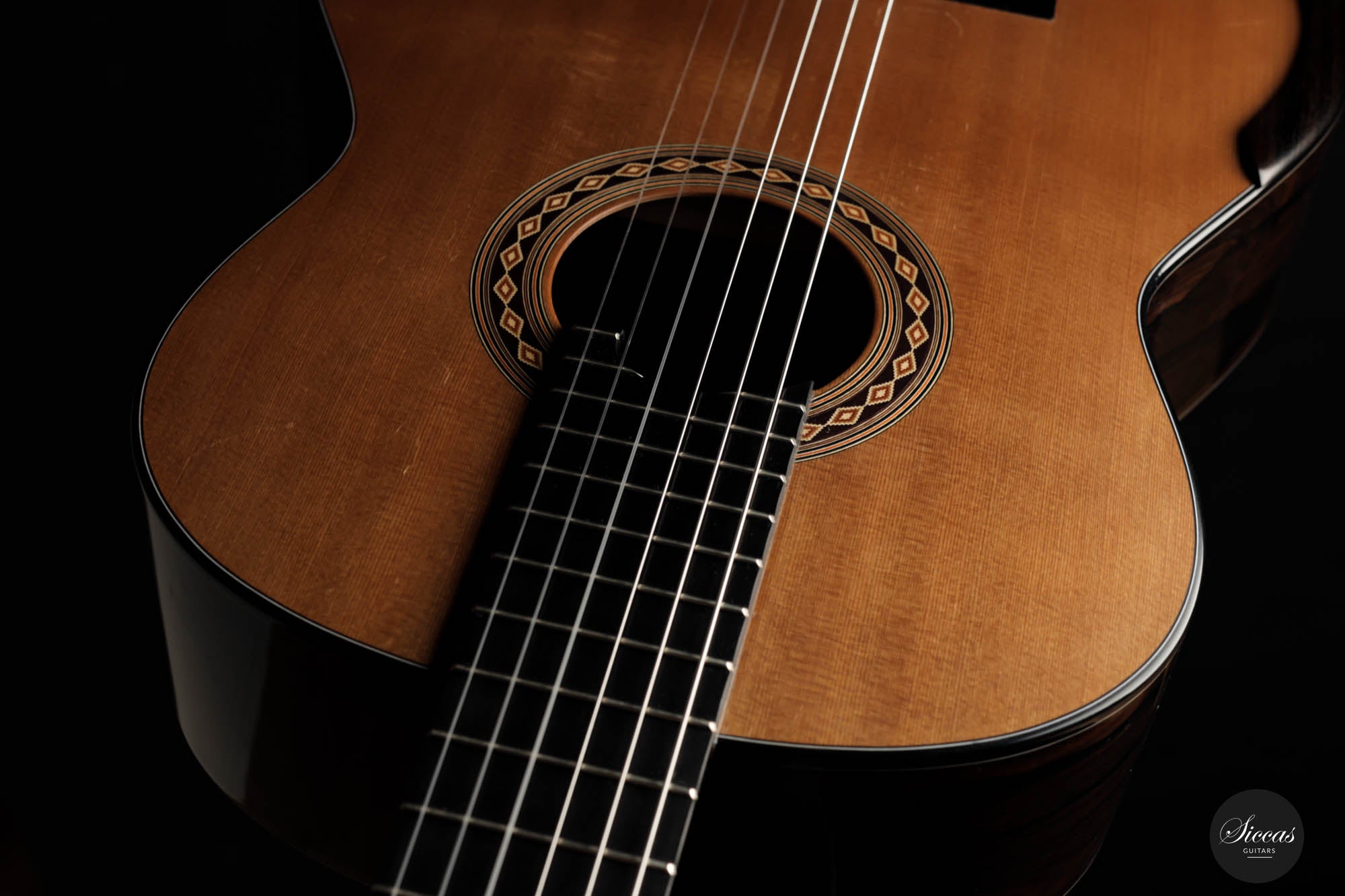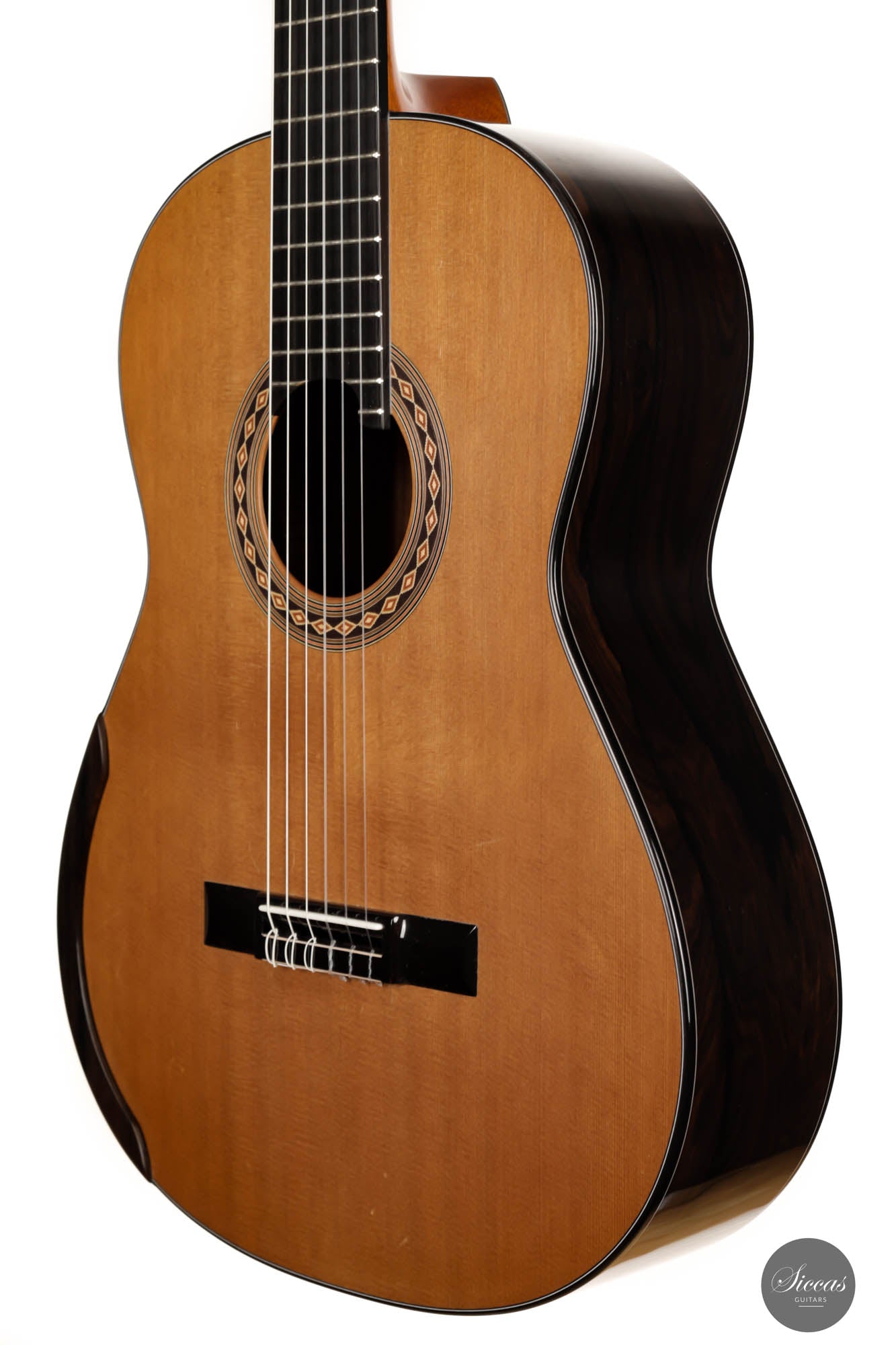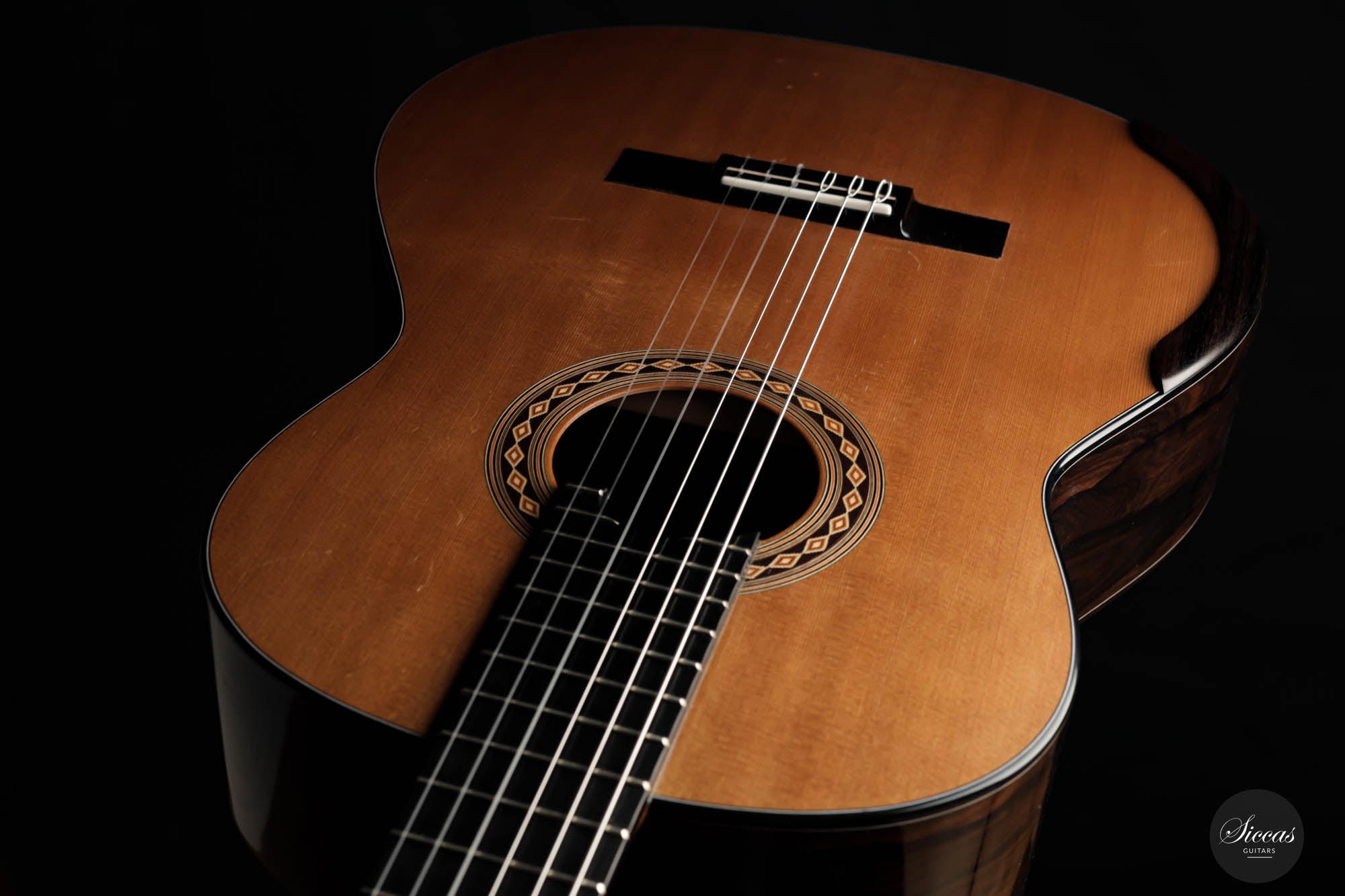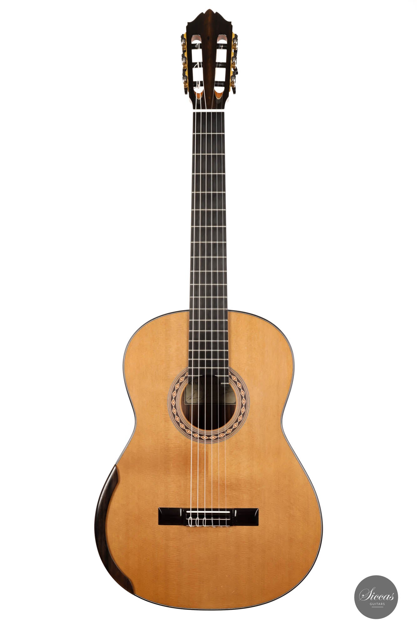 This 2017 lattice guitar is in very good condition. As a pre-loved instrument, it displays minimal playing wears but nothing structural. This beautiful instrument was crafted with an exceptionally thin, responsive cedar top and beautiful dark-grained Ziricote back and sides. The expressive power emanating from this guitar is impressive, making this instrument by Kim Lissarrague of our top 5 most powerful guitars. Not only does it impress with its volume of sound, but also its very rich and flexible tone. This instrument is definitely a true concert powerhouse that can be played in any concert setting. The responsive and strong trebles make this guitar easy for the right hand. Combined with an exceptional neck shape, this guitar is a pure joy to play.