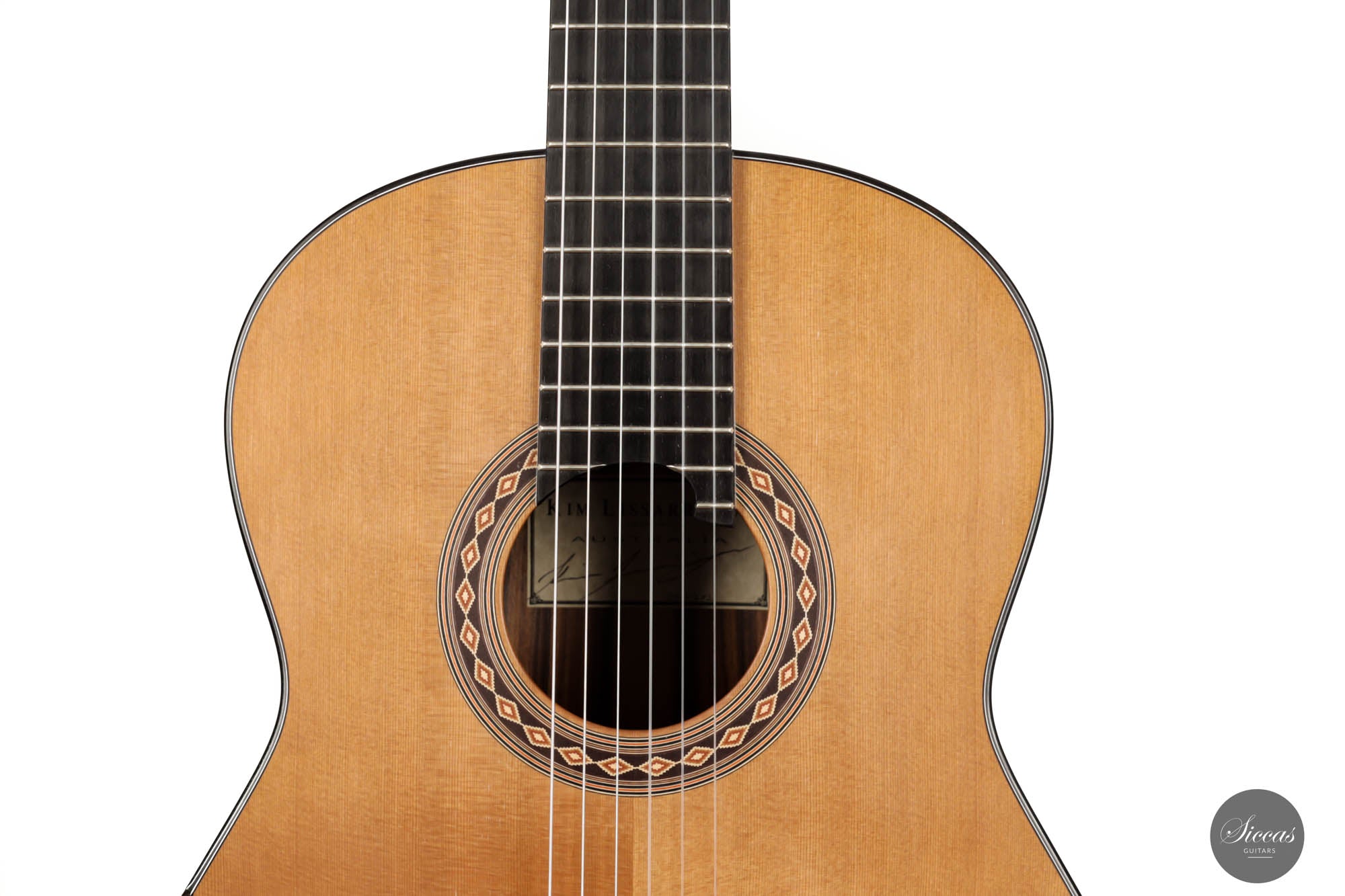 Kim Lissarrague is a recognized Australian luthier. He began building guitars at the very early age of thirteen and is now established in the Blue Mountains, west of Sydney. Kim makes a limited number of high-quality guitars per year and developed his designs based on the “Australian School” of guitar making. In other words, his guitars are lattice-braced with an arched back, offering a vast projection, clarity, and sustain.