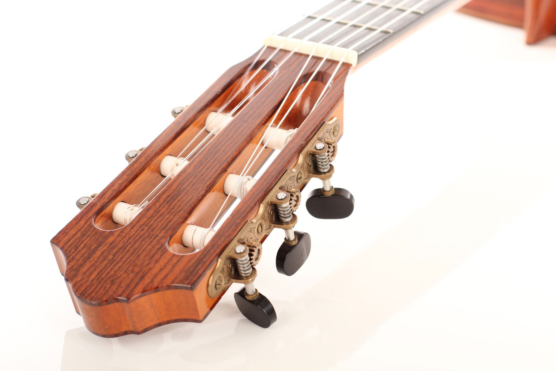 Gitarrenbauer: José Luis RomanillosBaujahr: 1979Decke: SpruceBoden und Zargen: Indian rosewoodDeckenoberfläche: French polishKorpusoberfläche: French polishLuftresonanz: G / G sharpGewicht (g): 1410Mechaniken: Klaus SchellerZustand: Excellent