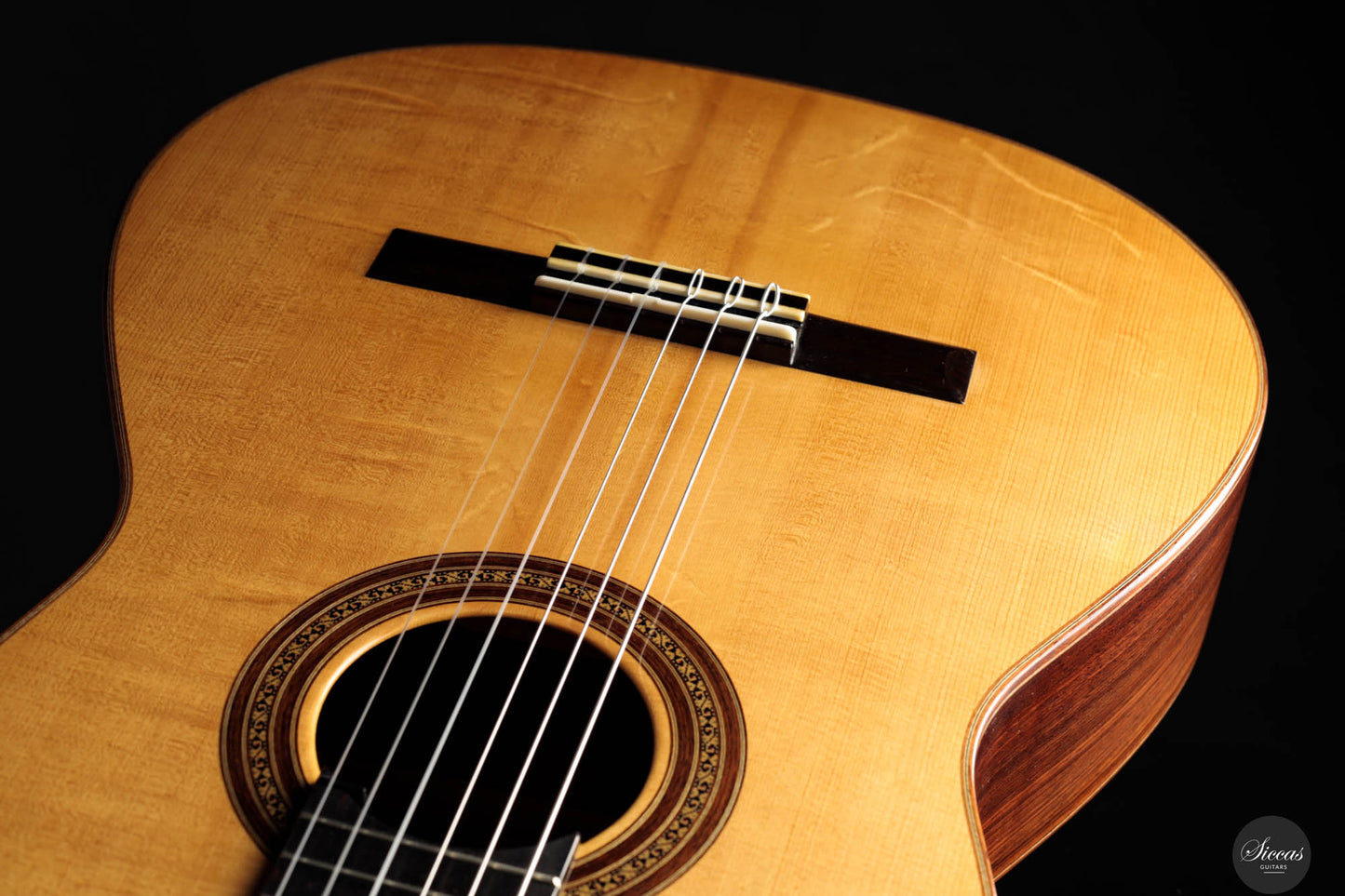 This classical guitar was built in 1999 and features a two-piece spruce top framed by elegant dark and light purflings. The back and sides are made of beautiful Indian rosewood, lending the instrument a warm and rich tonal palette. The guitar is in excellent condition, with only minor traces of nail wear. It has recently been fitted with new high-quality Alessi machine heads. The sound is typical of Panhuyzen’s work—well-balanced, with exceptional sustain and deep, resonant basses. A true concert-quality instrument from one of the great German-Canadian luthiers of our time.