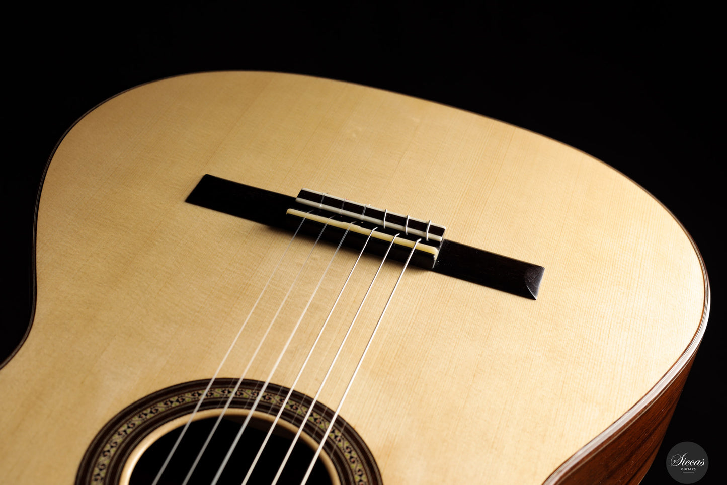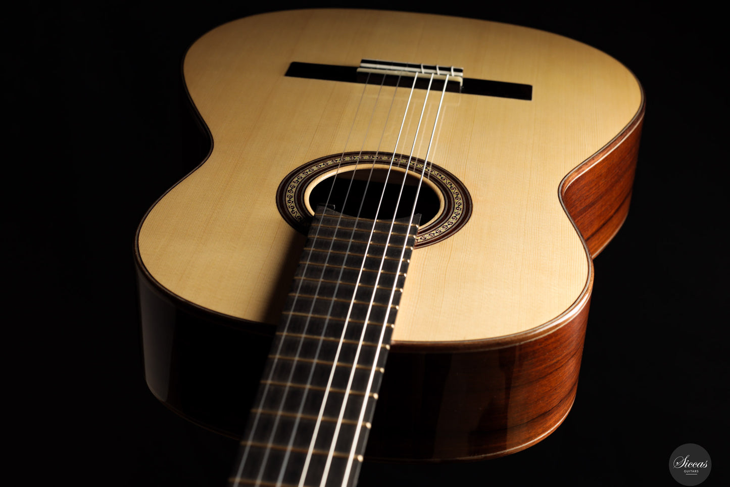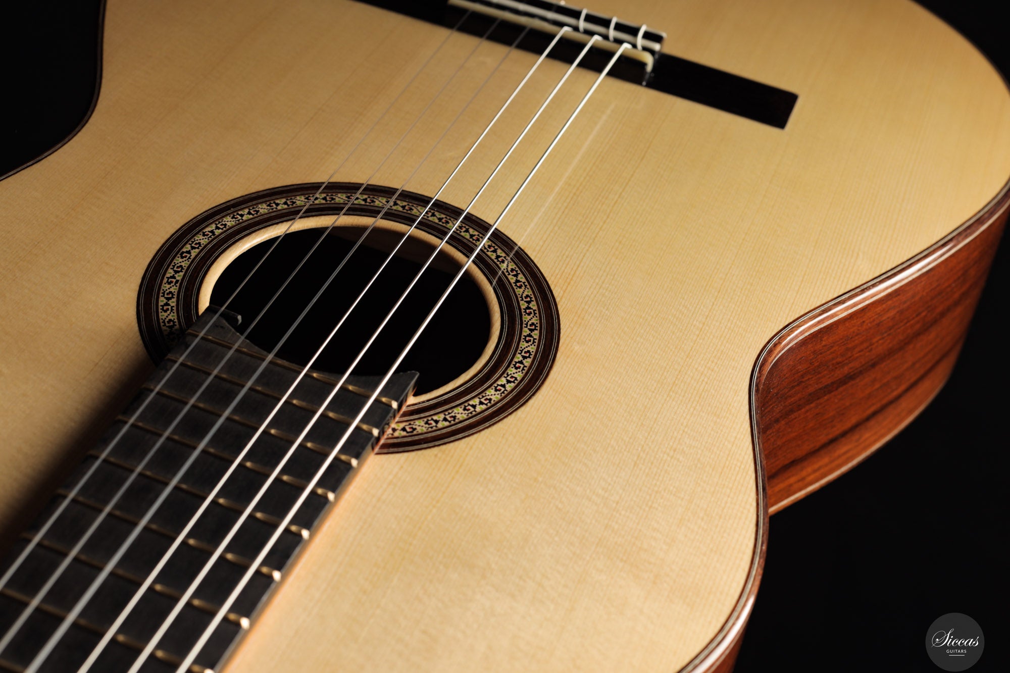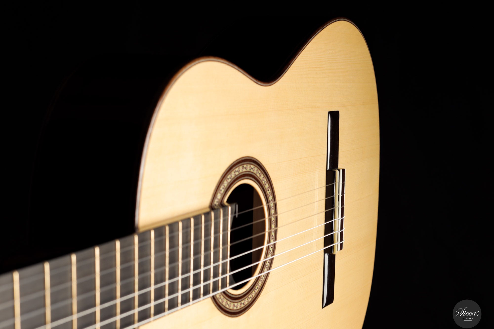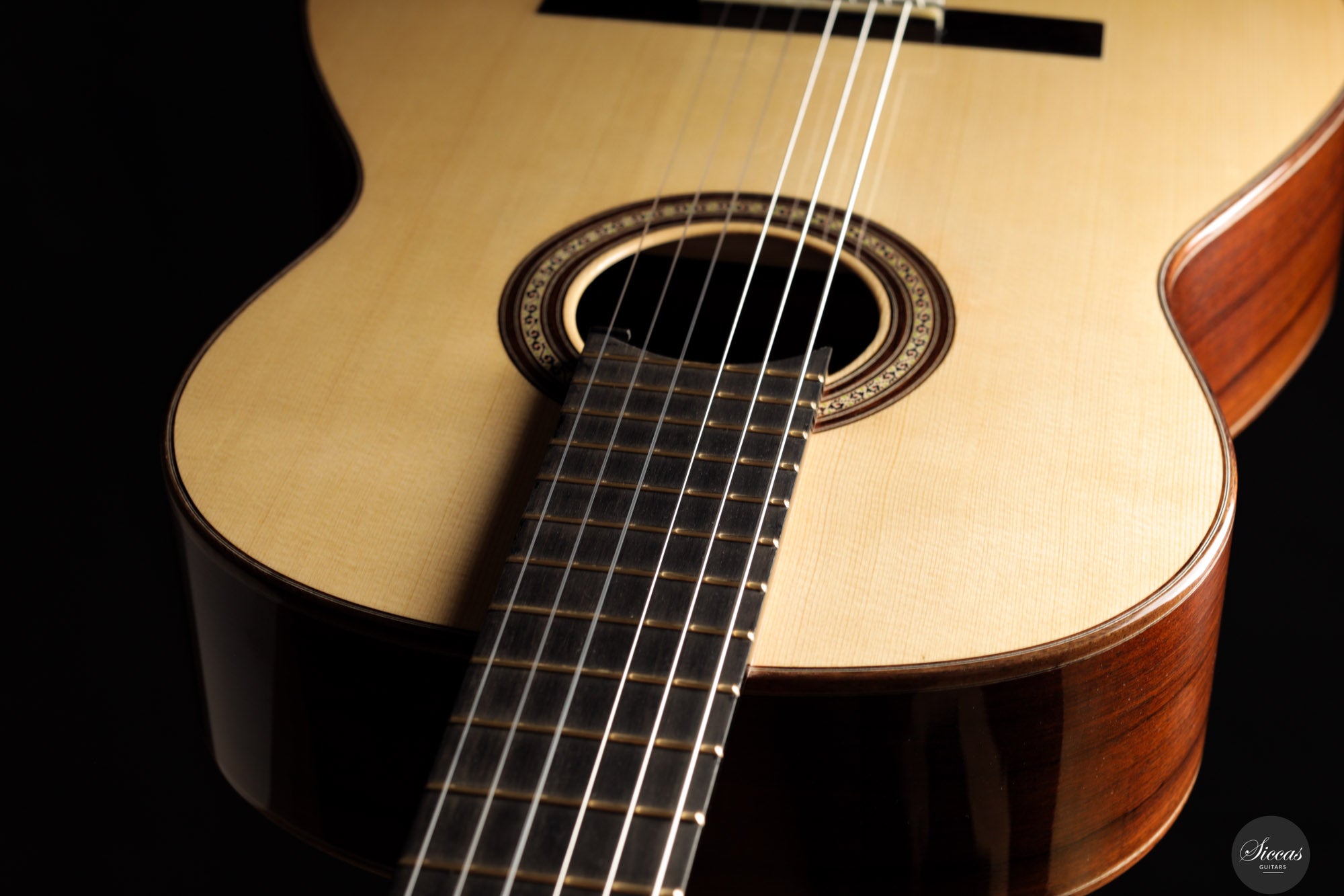 Schon beim ersten Spielen fällt die exzellente Bespielbarkeit auf. Das leicht erhöhte Griffbrett sowie das sorgfältig gestaltete Halsprofil sorgen für eine komfortable Handlage und ein müheloses Spielgefühl. Diese Gitarre lädt zu langen Übe- und Spielstunden ein. Sie verfügt über eine ausgesprochen große Dynamik, die leise, feine Passagen ebenso überzeugend darstellt wie kraftvolle, tragende Töne. Damit vereint sie Eigenschaften einer traditionellen Konzertgitarre mit der Projektion und klanglichen Bandbreite moderner Konzertinstrumente.