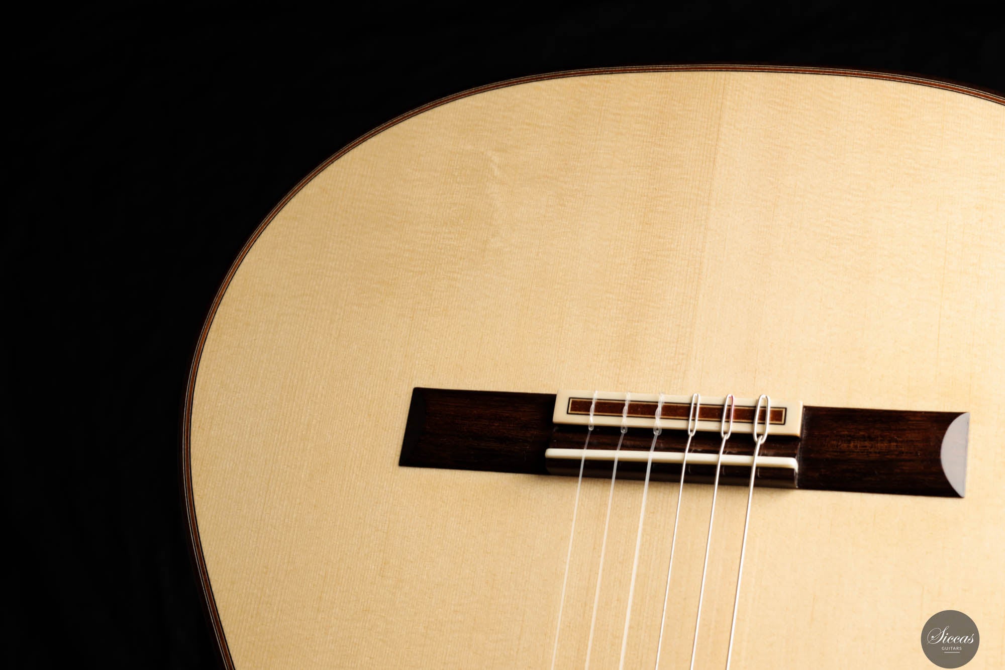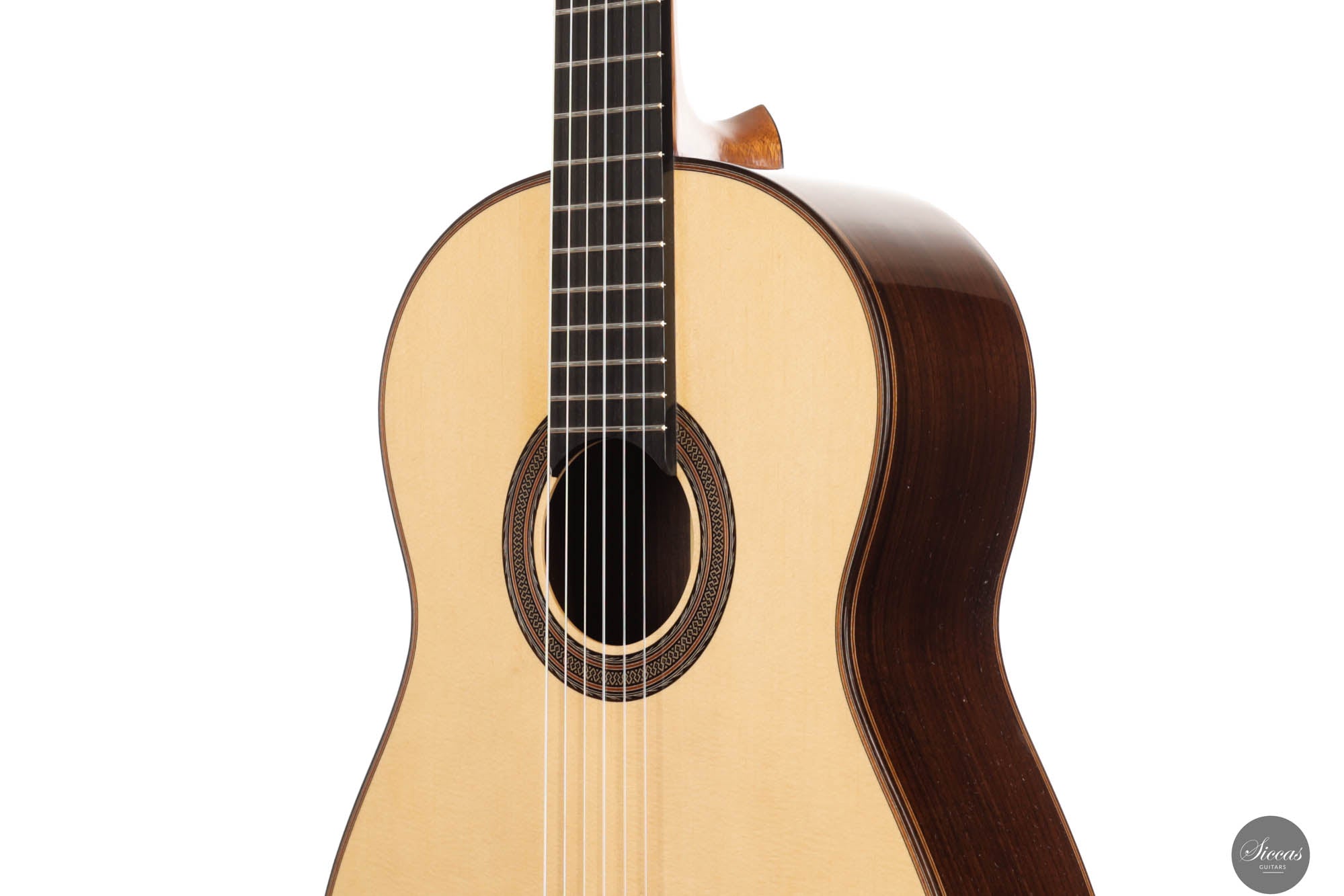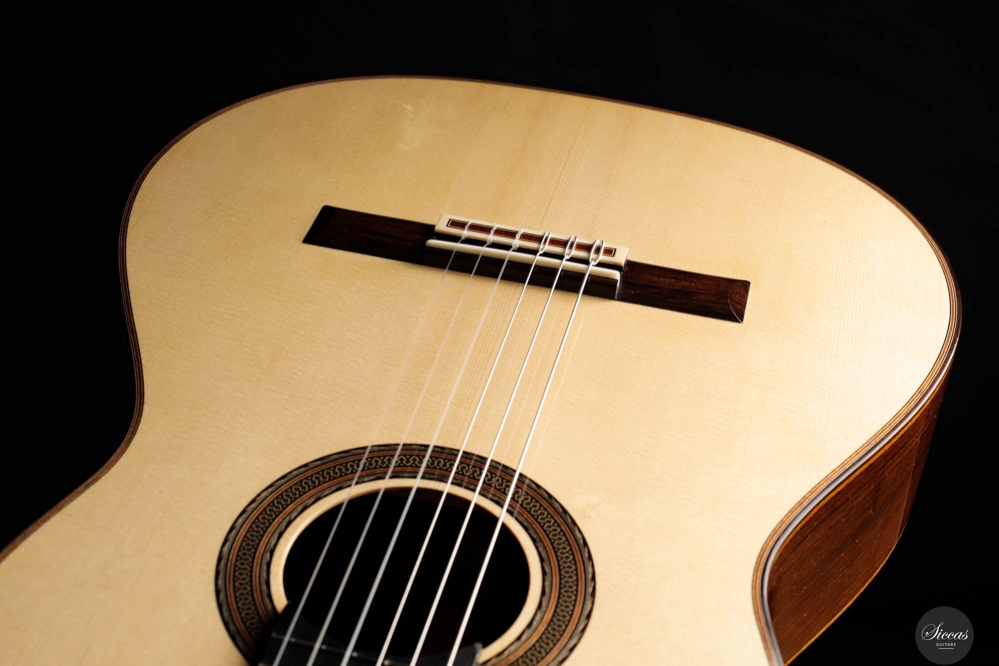 Nach seinem Master Abschluss in Soziologie begann Kristof Meeus 2006 im Zentrum für Musikinstrumentenbau (CMB) in Puurs, Belgien, seine Ausbildung als Gitarrenbauer. Parallel dazu arbeitete er in der Werkstatt von Walter Verreydt und sammelte sehr schnell solide Kenntnisse im Gitarrenbau. Im Jahr 2012 begann Kristof seine Karriere als selbstständiger Gitarrenbauer. Das CMB stellte ihn dann 2016 als Dozent für Musikinstrumentenbau ein. Kristof nahm sich die großen Maler als Vobild und ging auf Europareise, um sein Wissen zu verfeinern und sich von den Werken seiner Vorgänger inspirieren zu lassen. So studierte er die Sammlungen von Gabriele Lodi, Lorenzo Frignani, Bruno Marlat, Antonio Marin, Rafael Moreno und vielen anderen und verschaffte sich so ein globales Verständnis sowohl für die alten Meister als auch für die moderne klassische Gitarre.