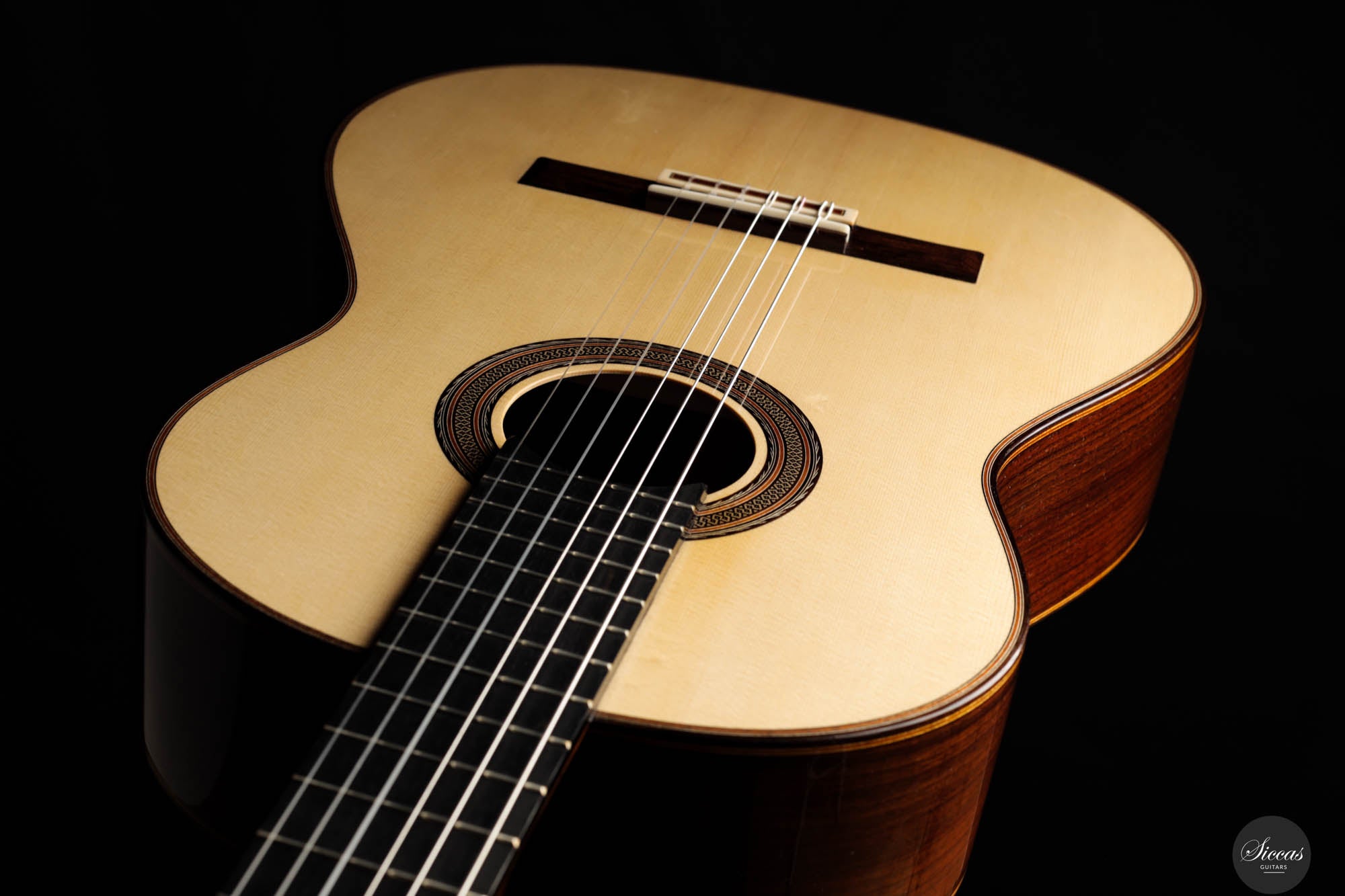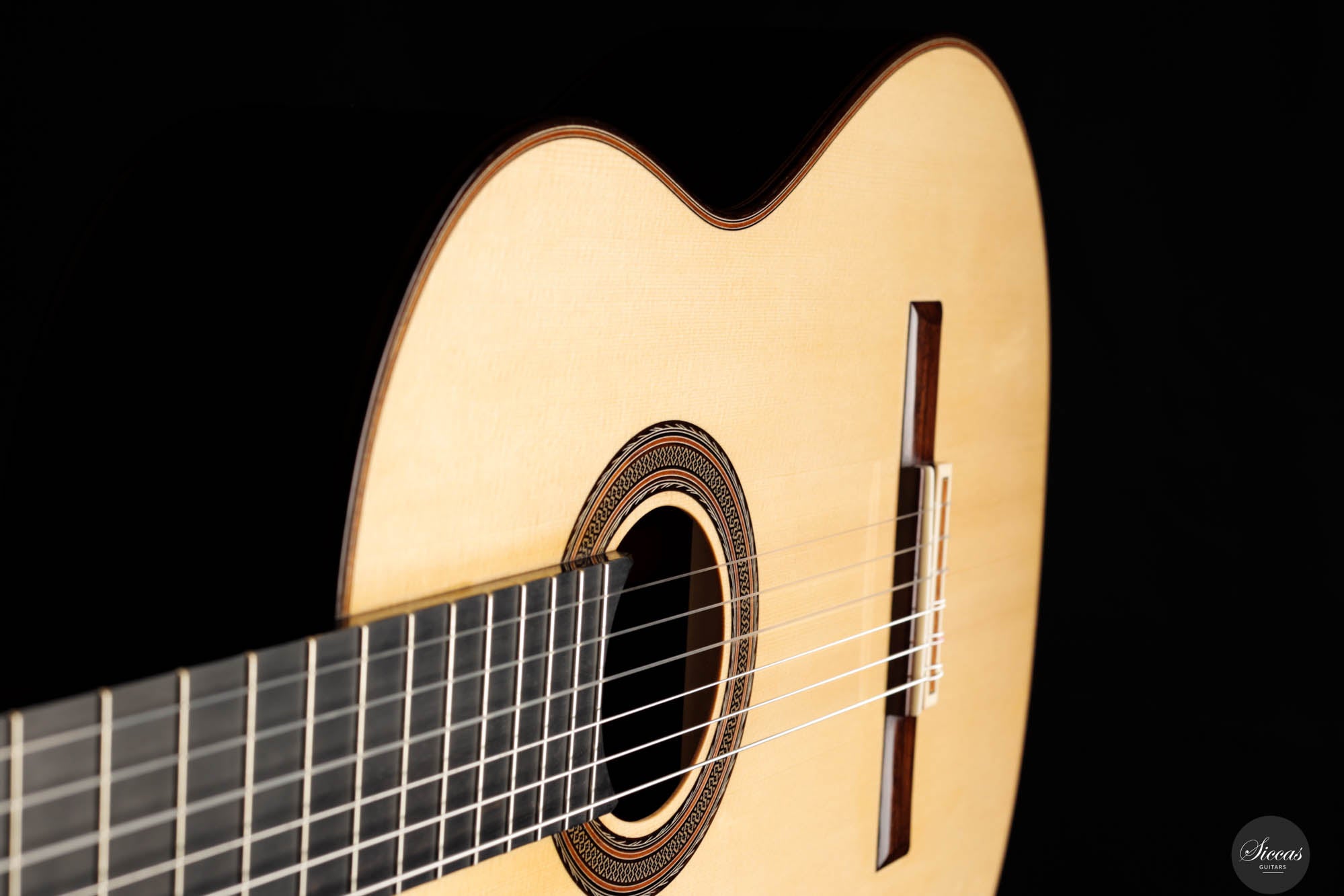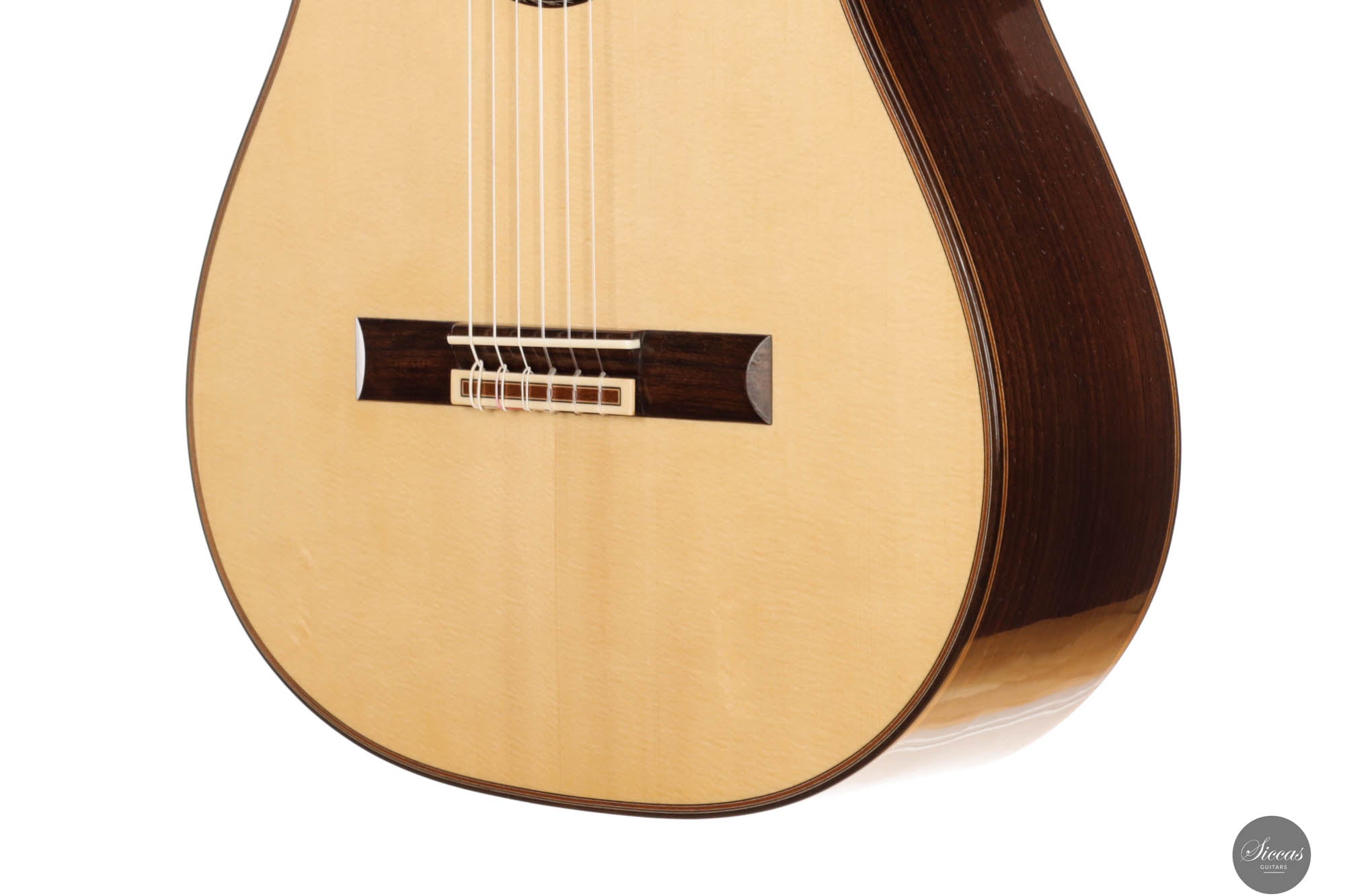 Nach seinem Master Abschluss in Soziologie begann Kristof Meeus 2006 im Zentrum für Musikinstrumentenbau (CMB) in Puurs, Belgien, seine Ausbildung als Gitarrenbauer. Parallel dazu arbeitete er in der Werkstatt von Walter Verreydt und sammelte sehr schnell solide Kenntnisse im Gitarrenbau. Im Jahr 2012 begann Kristof seine Karriere als selbstständiger Gitarrenbauer. Das CMB stellte ihn dann 2016 als Dozent für Musikinstrumentenbau ein. Kristof nahm sich die großen Maler als Vobild und ging auf Europareise, um sein Wissen zu verfeinern und sich von den Werken seiner Vorgänger inspirieren zu lassen. So studierte er die Sammlungen von Gabriele Lodi, Lorenzo Frignani, Bruno Marlat, Antonio Marin, Rafael Moreno und vielen anderen und verschaffte sich so ein globales Verständnis sowohl für die alten Meister als auch für die moderne klassische Gitarre.