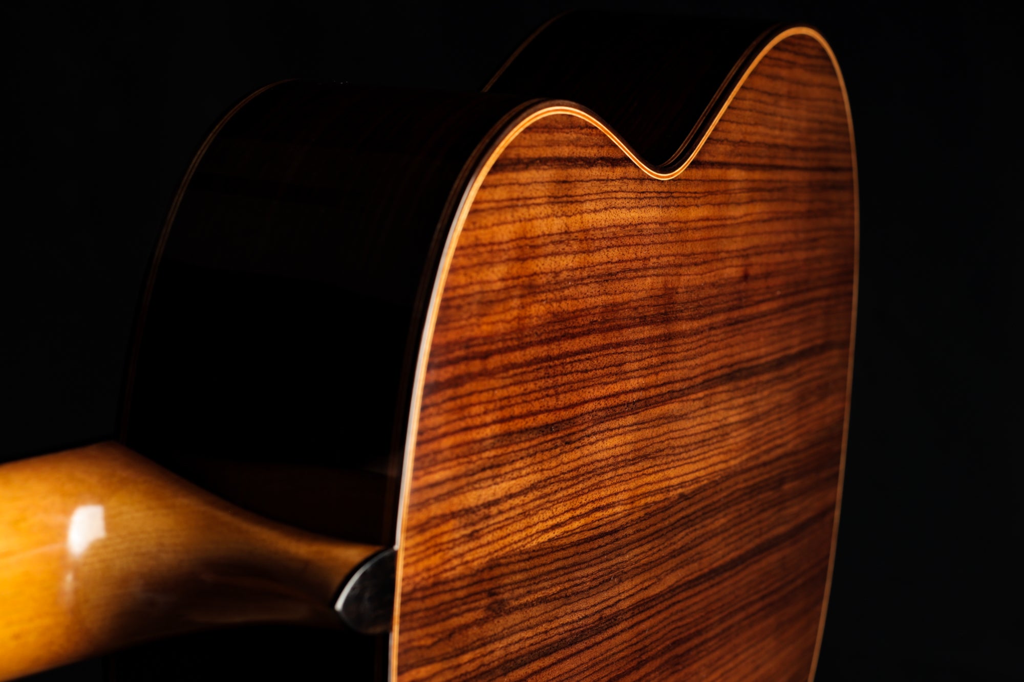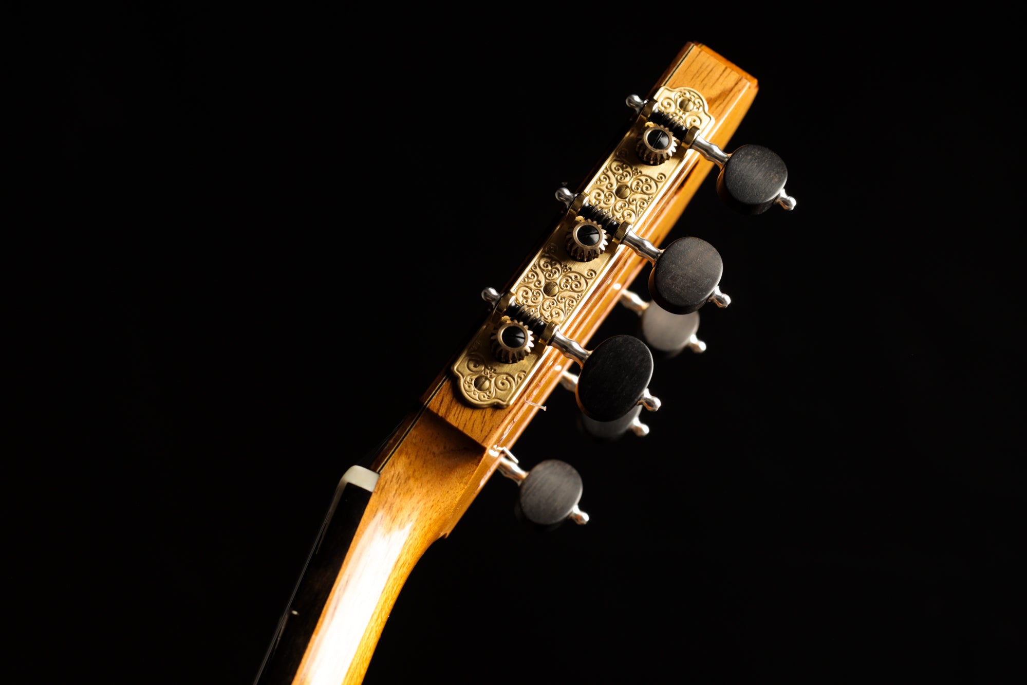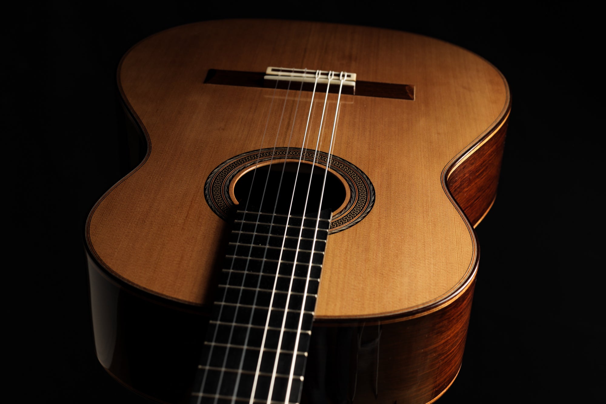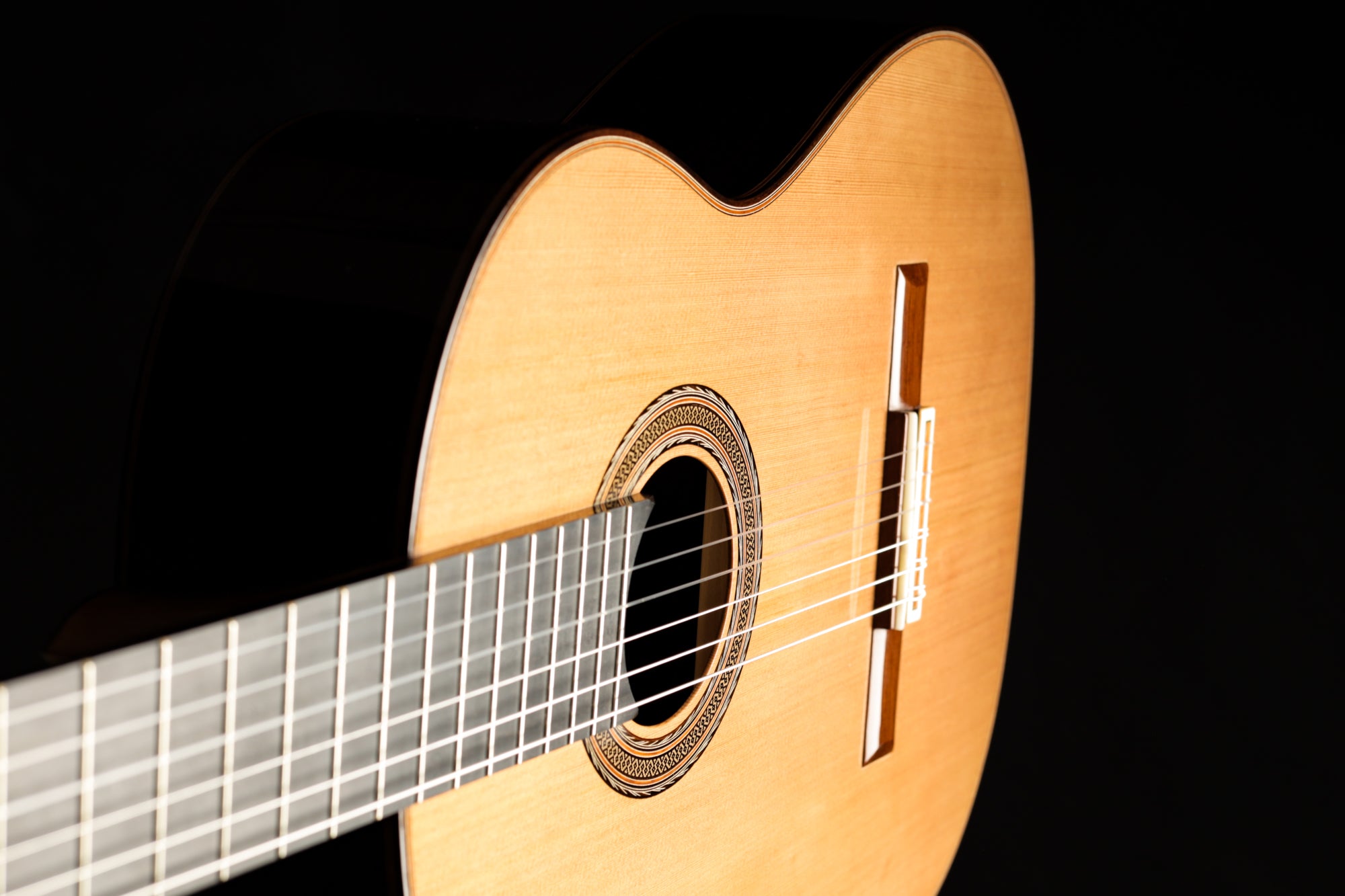 Dieses Konzertmodell aus dem Jahr 2025 kombiniert eine Zederndecke mit einer Lattice-Konstruktion und Boden sowie Zargen aus indischem Palisander. Bei dieser Version wird die Zederndecke mit Fichtenverbalkung ergänzt, was eine schnelle und sensible Ansprache ermöglicht und gleichzeitig Wärme und Tiefe erhält. Mit einer Eigenresonanz zwischen E und F und einem Gewicht von 1410 Gramm überzeugt das Instrument durch lebendigen Tonansatz, klare Tragfähigkeit und hervorragende Projektion. Die kürzere Mensur von 640 mm und eine Sattelbreite von 52 mm sorgen für ein komfortables Spielgefühl und erleichtern das Greifen in weiten Lagen. Ausgestattet mit Mechaniken von Kris Barnett und einer Schellackpolitur bietet die Gitarre eine elegante Optik und traditionelle Anmutung. Klanglich begeistert sie mit klar definierten Bässen, die in perfekter Harmonie mit den süßen, mühelos singenden Diskantseiten stehen, und entfaltet so eine ausgewogene und inspirierende Konzertstimme.Regelmäßige Pflege verlängert die Lebensdauer des Instruments