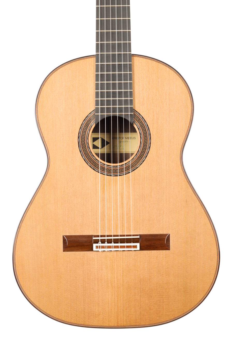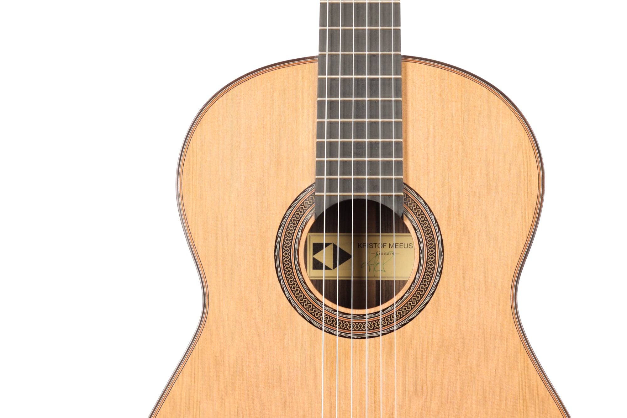 Nach einem Masterabschluss in Soziologie begann Kristof Meeus 2006 seine Ausbildung am Centre for Musical Instrument Building (CMB) in Puurs, Belgien. Parallel dazu arbeitete er in der Werkstatt von Walter Verreydt, wo er sich schnell fundierte Kenntnisse im Gitarrenbau aneignete. Seit 2012 ist er als unabhängiger Gitarrenbauer tätig und kehrte 2016 als Dozent an das CMB zurück. Wie viele Künstler, die ihre Kenntnisse durch Reisen vertiefen, besuchte er bedeutende Sammlungen und Werkstätten in Europa, unter anderem die von Gabriele Lodi, Lorenzo Frignani, Bruno Marlat, Antonio Marin und Rafael Moreno. Diese Begegnungen verschafften ihm ein umfassendes Verständnis sowohl der historischen Instrumente als auch der modernen Konzertgitarre.Über die Gitarre