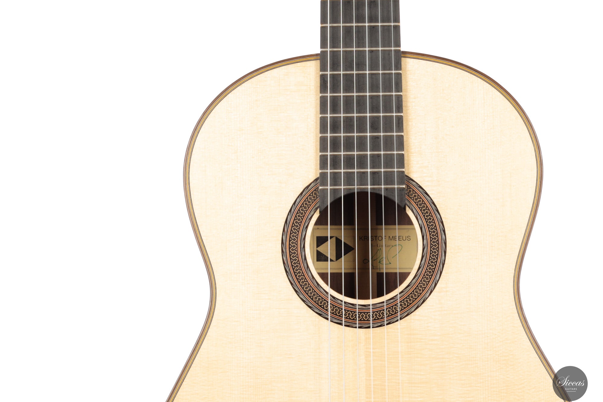 Nach einem abgeschlossenen Masterstudium in Soziologie trat Kristof Meeus 2006 dem Centre for Musical Instrument Building (CMB) im belgischen Puurs bei. Parallel dazu arbeitete er in der Werkstatt von Walter Verreydt, wo er eine solide handwerkliche Grundlage im Gitarrenbau entwickelte. Seit 2012 ist er als unabhängiger Gitarrenbauer tätig und kehrte 2016 als Dozent an das CMB zurück. Durch zahlreiche Reisen vertiefte er sein Verständnis historischer Instrumente und kam mit bedeutenden europäischen Gitarrenbauern wie Gabriele Lodi, Lorenzo Frignani, Bruno Marlat, Antonio Marín und Rafael Moreno in Kontakt. Diese Begegnungen prägten seinen weiten Blick auf den historischen sowie modernen Konzertgitarrenbau.