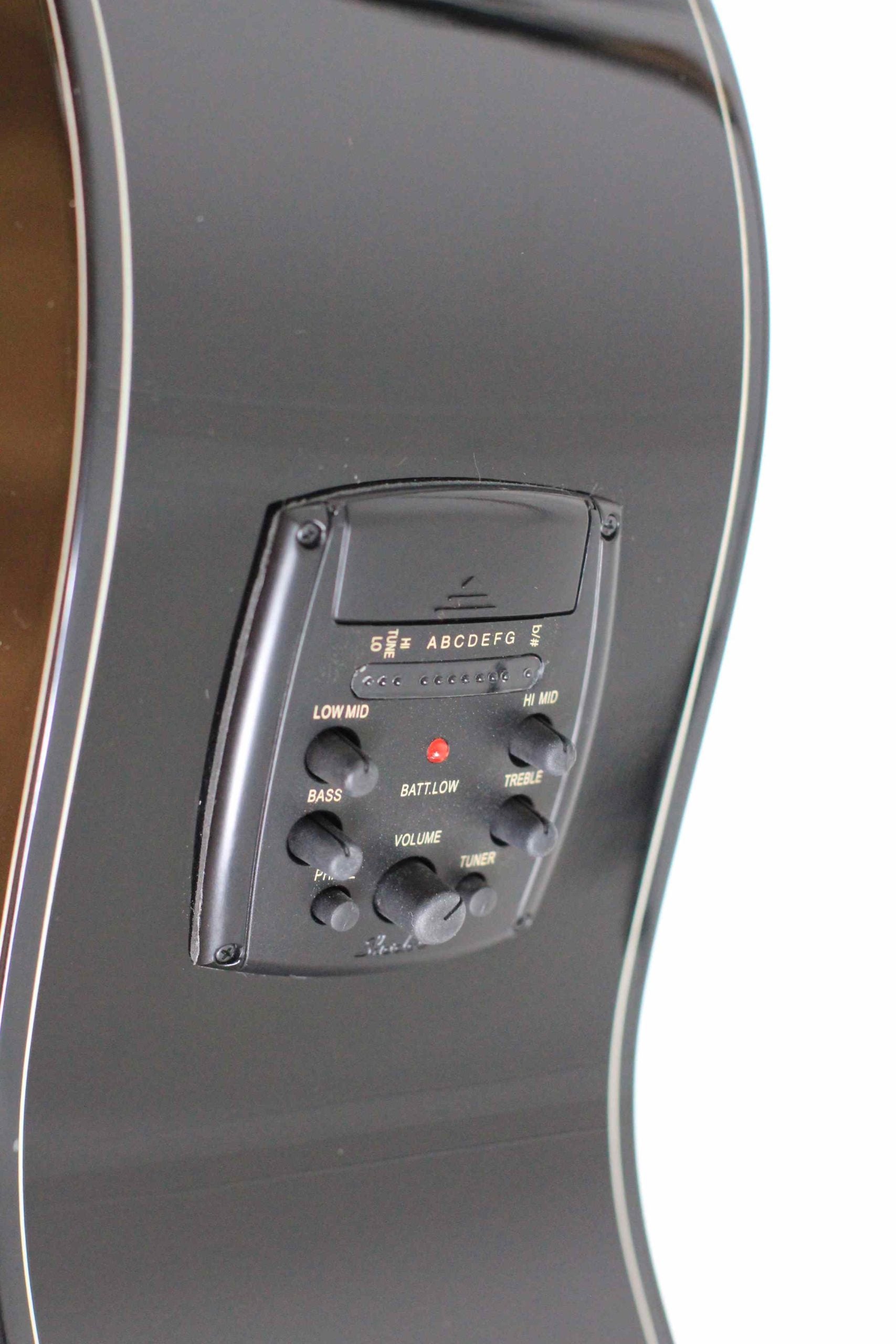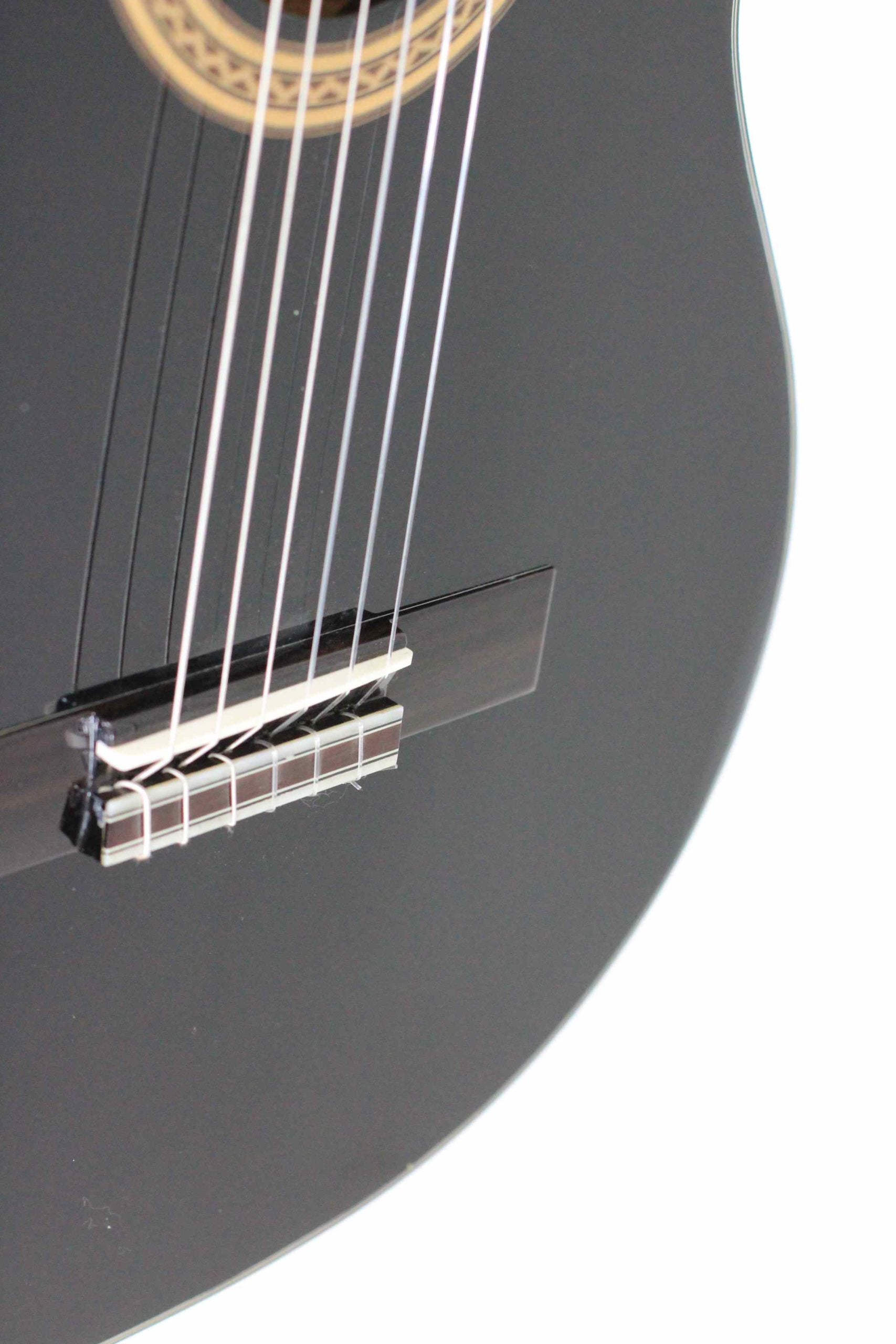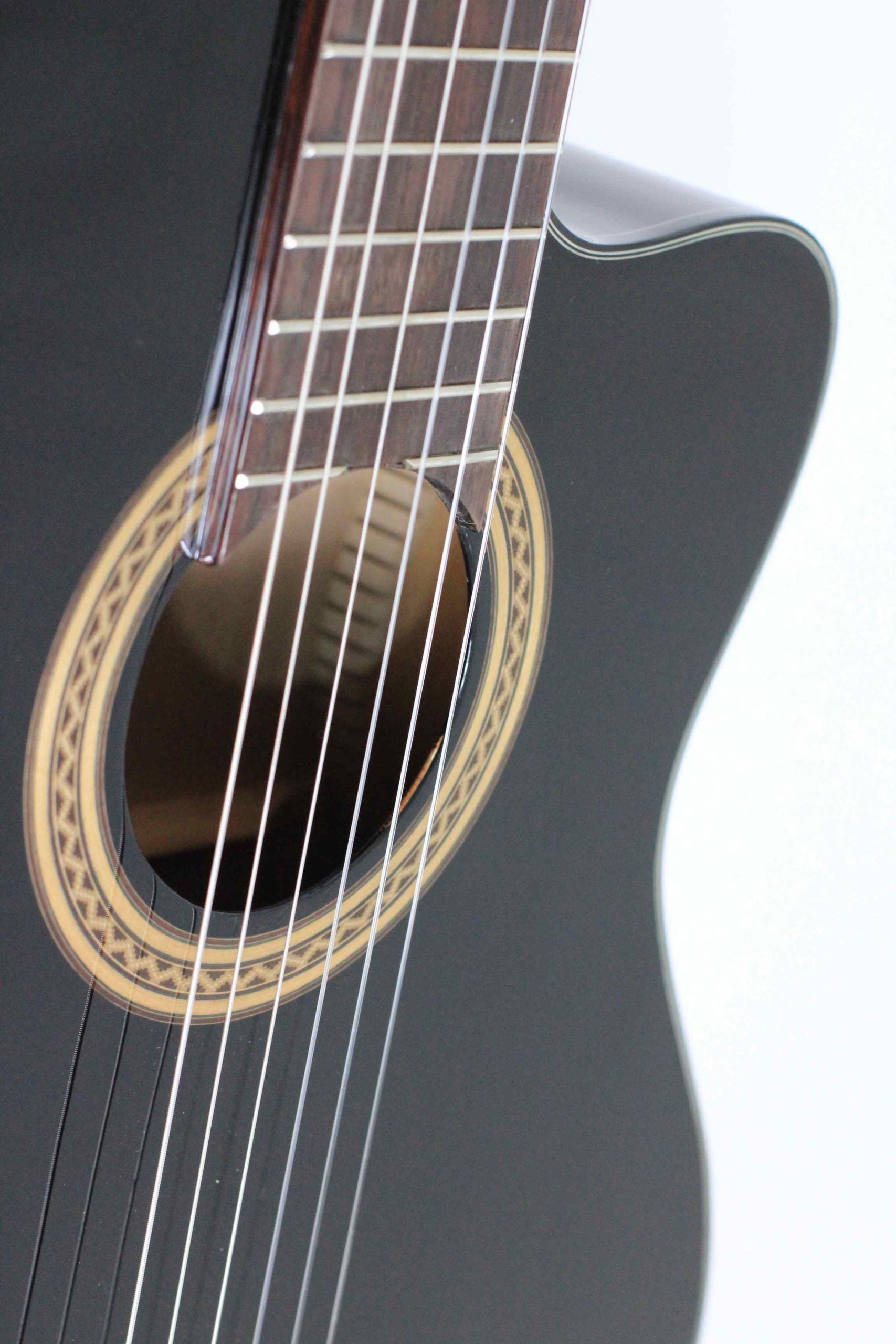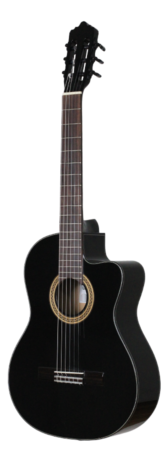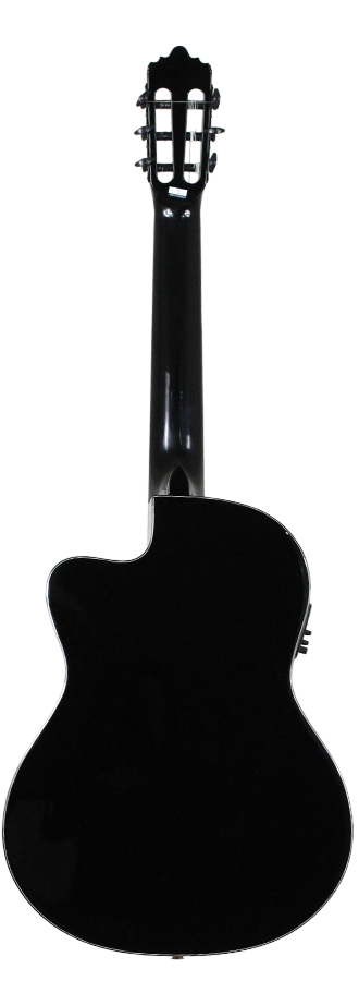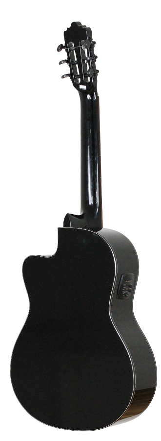 The La Perla model by La Mancha has a solid spruce top and back and sides made of mahogany. Very easy to play! A beauty in black!
