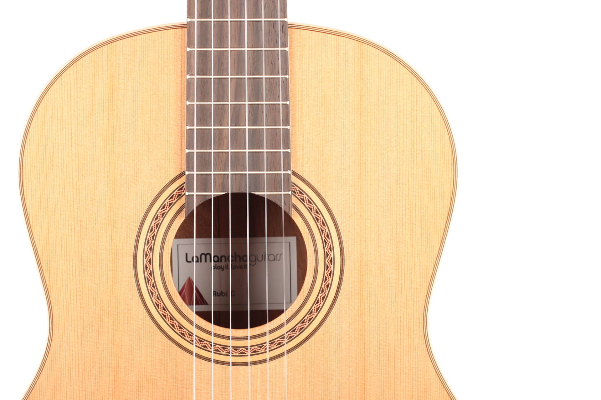 Die Rubi Serie von La Mancha wird vom preisgekrönten 'Los Angeles Guitar Quartet' empfohlen und wurde von der EGTA (Europäischer Gitarrenlehrerverband) mehrfach ausgezeichnet. Neben ihrem hervorragenden Klangvolumen überzeugen die Instrumente auch mit frischem Design und finden klasse Anklang bei Groß und Klein. Ideal für den Start mit einer Konzertgitarre.