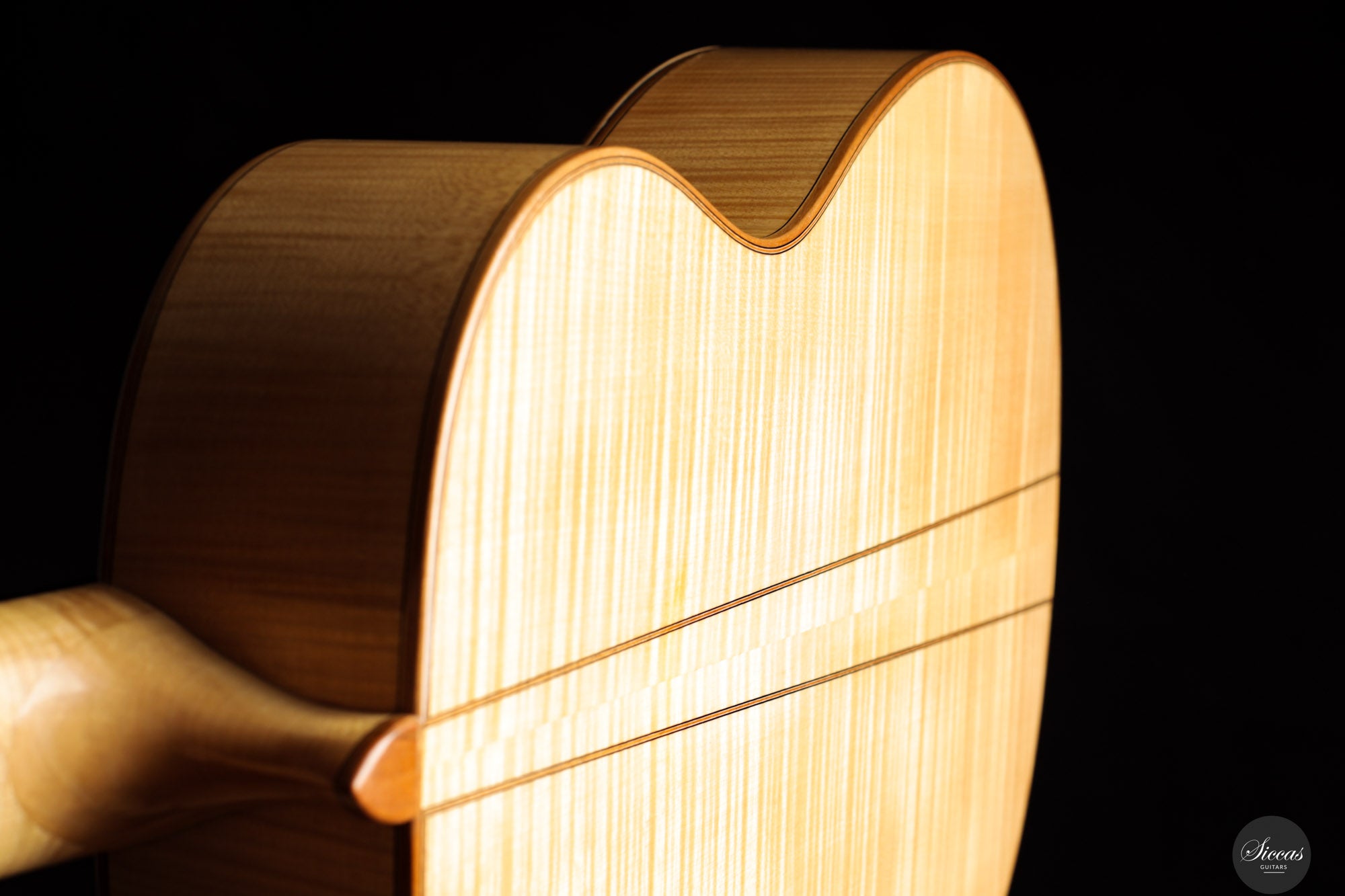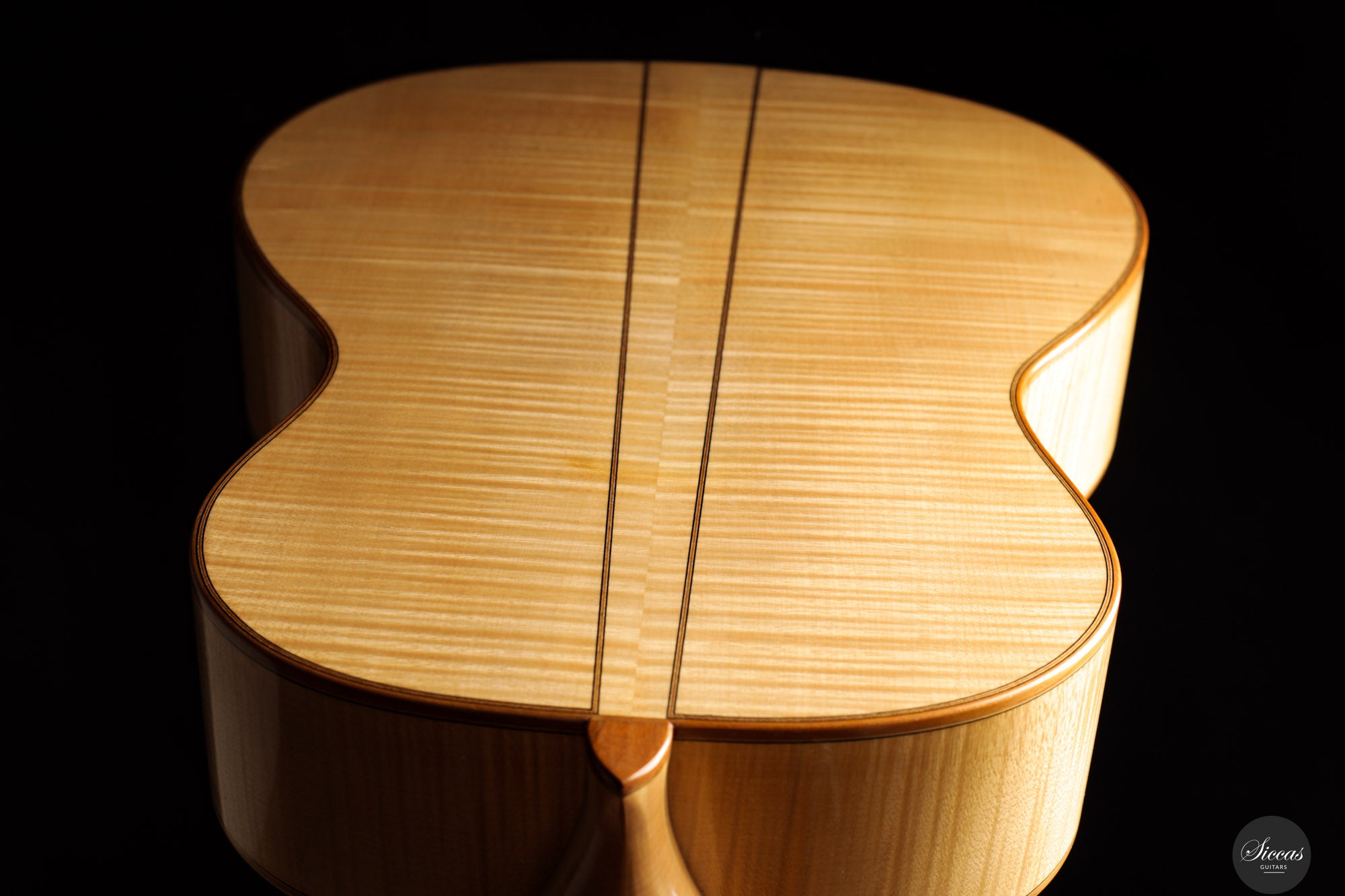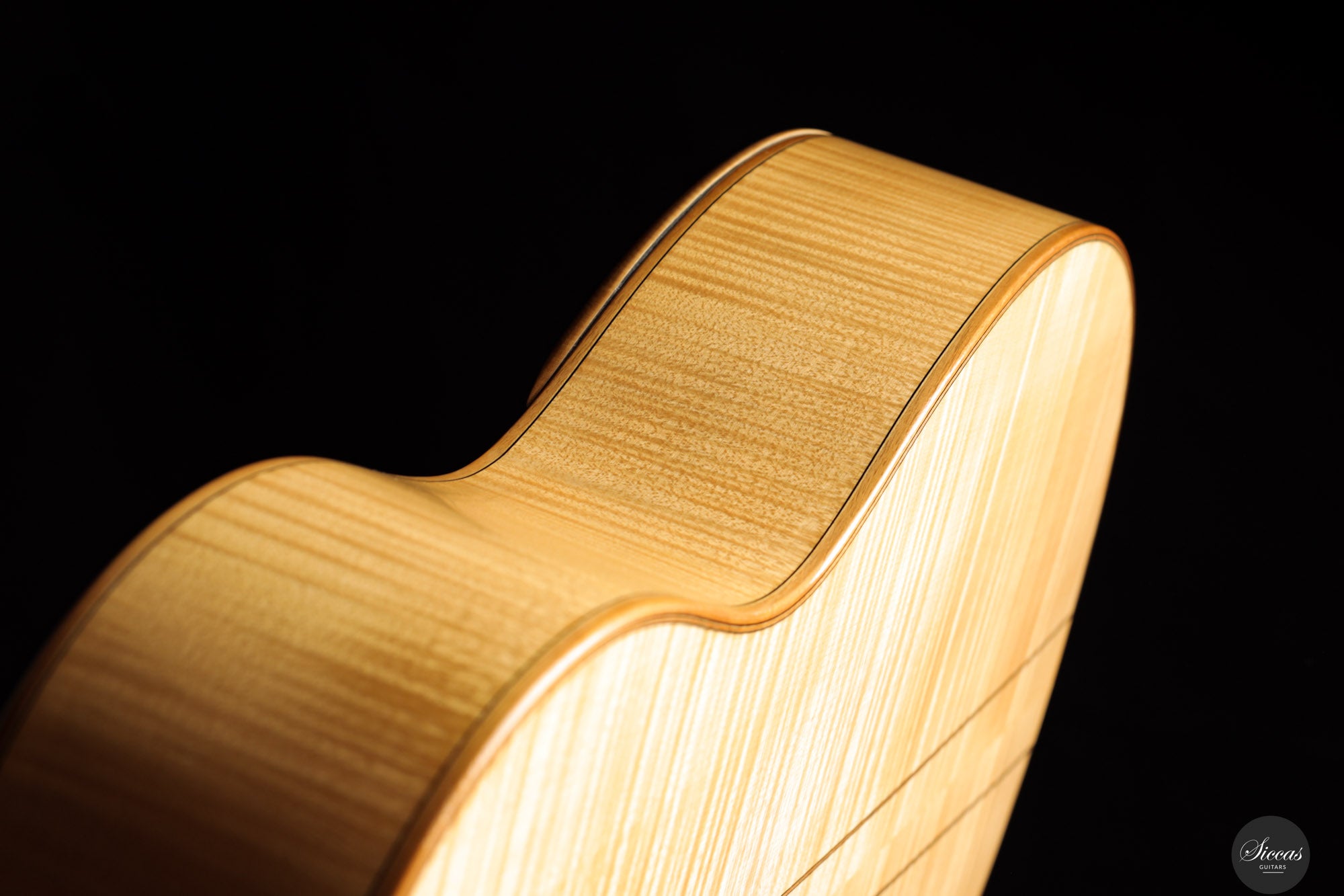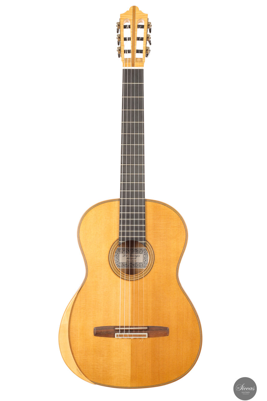 Über den Gitarrenbauer: Leo Sprenger aus Mittenwald entstammte einer Familie mit einer langen und bedeutenden Tradition im Instrumentenbau. Zunächst als Schreiner ausgebildet, studierte er später an der Staatlichen Fachschule für Geigenbau in Mittenwald. Dort verband er sein fundiertes Wissen im Holzhandwerk mit dem Erbe seiner Familie und fertigte Gitarren, Kontrabässe und andere Zupf- und Streichinstrumente auf höchstem Niveau. Als Meister im Zupfinstrumentenbau war er sowohl als aktiver Gitarrenbauer als auch als Lehrer tätig und gab sein Wissen an die nächste Generation weiter. Seine Gitarren werden für ihre präzise Bauweise, klangliche Raffinesse und die tiefe handwerkliche Verwurzelung in der Mittenwalder Tradition geschätzt. Dieses Erbe setzte er bis zu seinem Tod im Jahr 2019 fort. Über die Gitarre: Diese Konzertgitarre wurde 2004 gebaut und besitzt eine Fichtendecke sowie Boden und Zargen aus geflammtem Ahorn. Sie beeindruckt sowohl optisch als auch klanglich durch ihren besonderen Charakter. Der Klang ist holzig, rund und resonant, mit ausgezeichnetem Sustain, das sich gleichmäßig über alle Register entfaltet. Trotz ihrer leichten Bauweise bietet die Gitarre eine volle und ausgewogene Projektion, spricht leicht an und reagiert sensibel auf feinste Nuancen des Anschlags. Das Halsprofil sorgt für hohen Spielkomfort und macht die Gitarre besonders angenehm für Akkordspiel und längere Spielphasen. Mit ihrer eleganten Schellackpolitur und Sloane-Mechaniken vereint sie ästhetische Raffinesse mit höchster Funktionalität. Zustand: Das Instrument befindet sich in ausgezeichnetem Zustand ohne Risse oder strukturelle Beeinträchtigungen. Oberfläche und Konstruktion sind sehr gut erhalten. Geliefert wird die Gitarre in einem Softshell-Koffer.