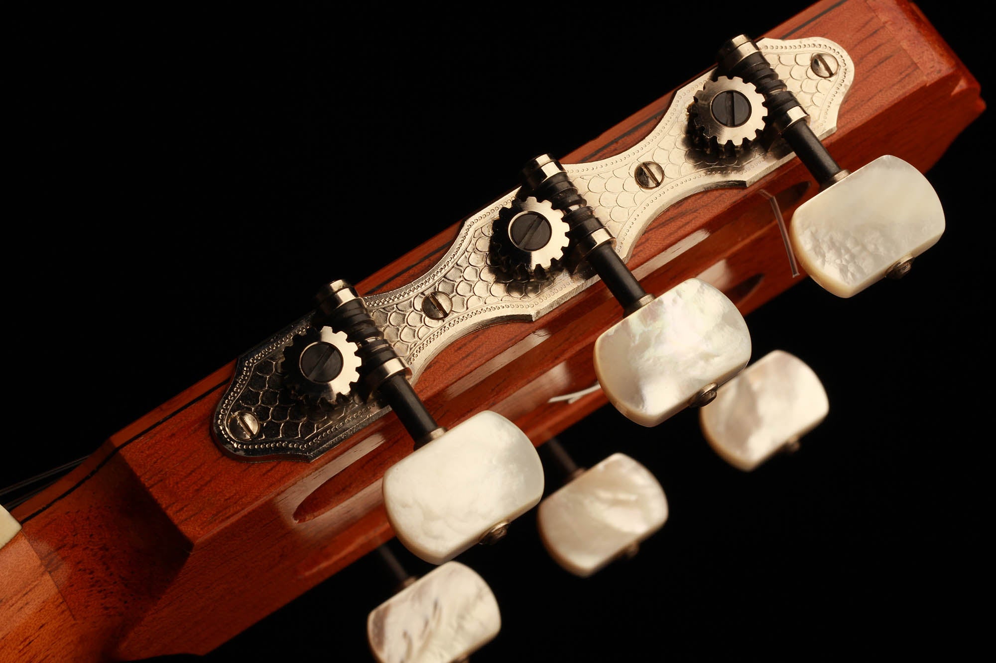 José Luis Romanillos Vega was born in Madrid in 1932 and began his cabinet-making apprenticeship at the age of thirteen. In 1956, he moved to England and worked in hospitals in Epsom and London. Five years later, he built his first Spanish guitar in London. Encouraged by the English guitarist Julian Bream, he established his guitar-making workshop in Semley, Wiltshire, in 1970. Romanillos’ guitars soon gained worldwide recognition for their tonal quality and elegant aesthetics, admired by musicians for their pure sound and harmonic balance. The Daily Mail called him “the Stradivari of the guitar,” while the Italian magazine Sei Corde named him “the most important living stringed instrument maker.”