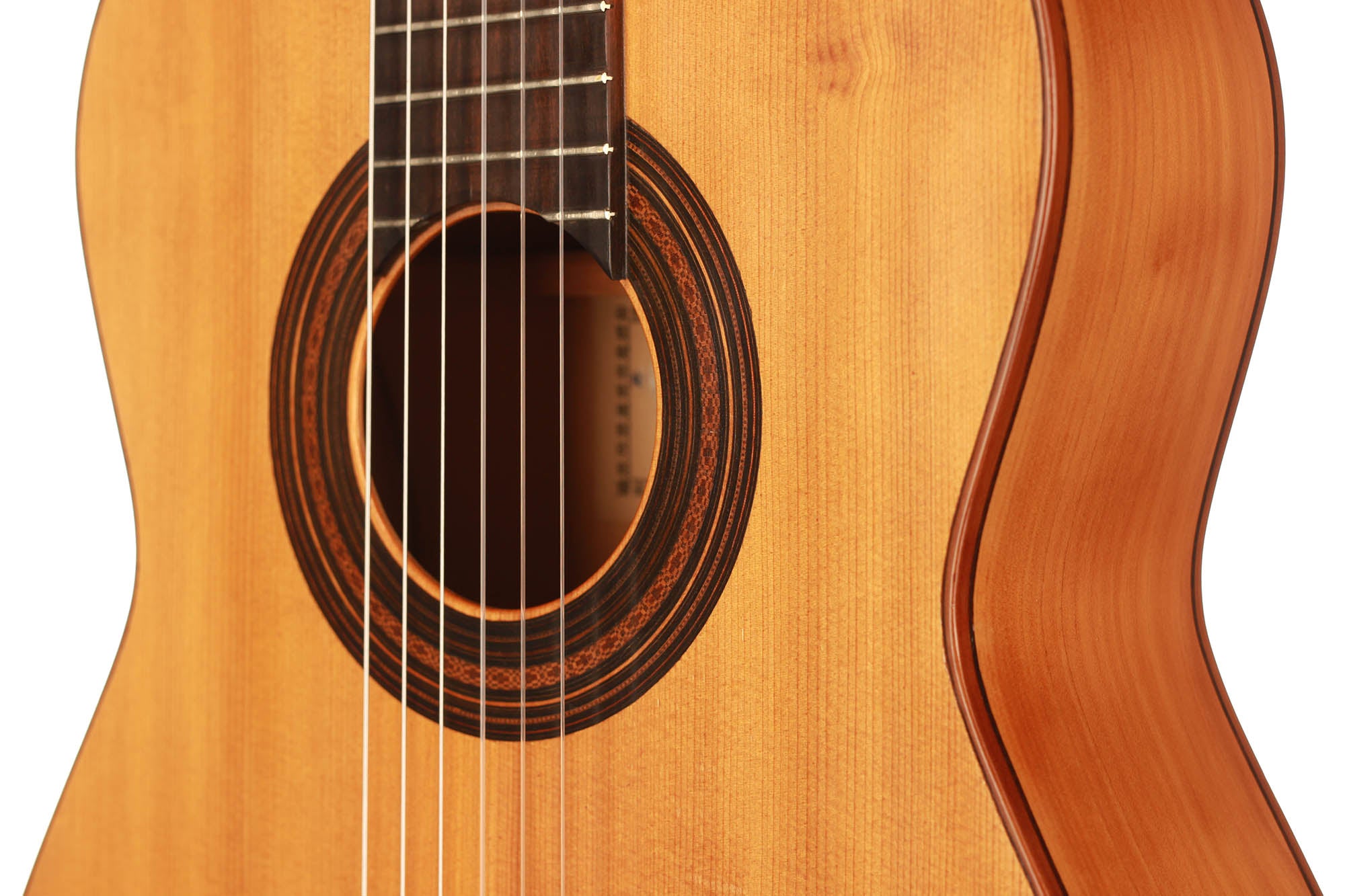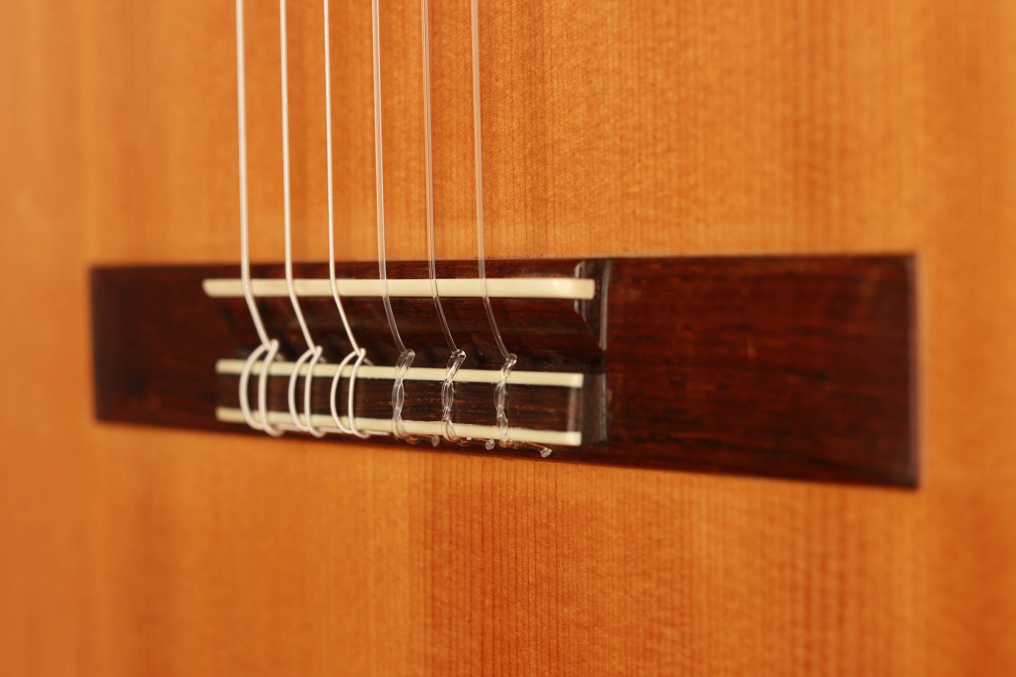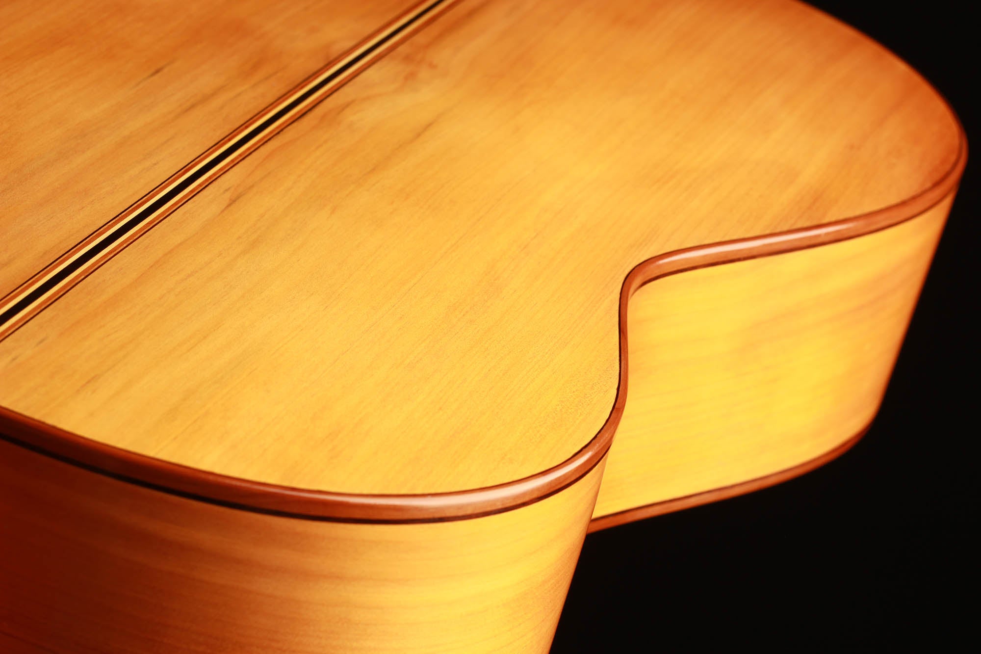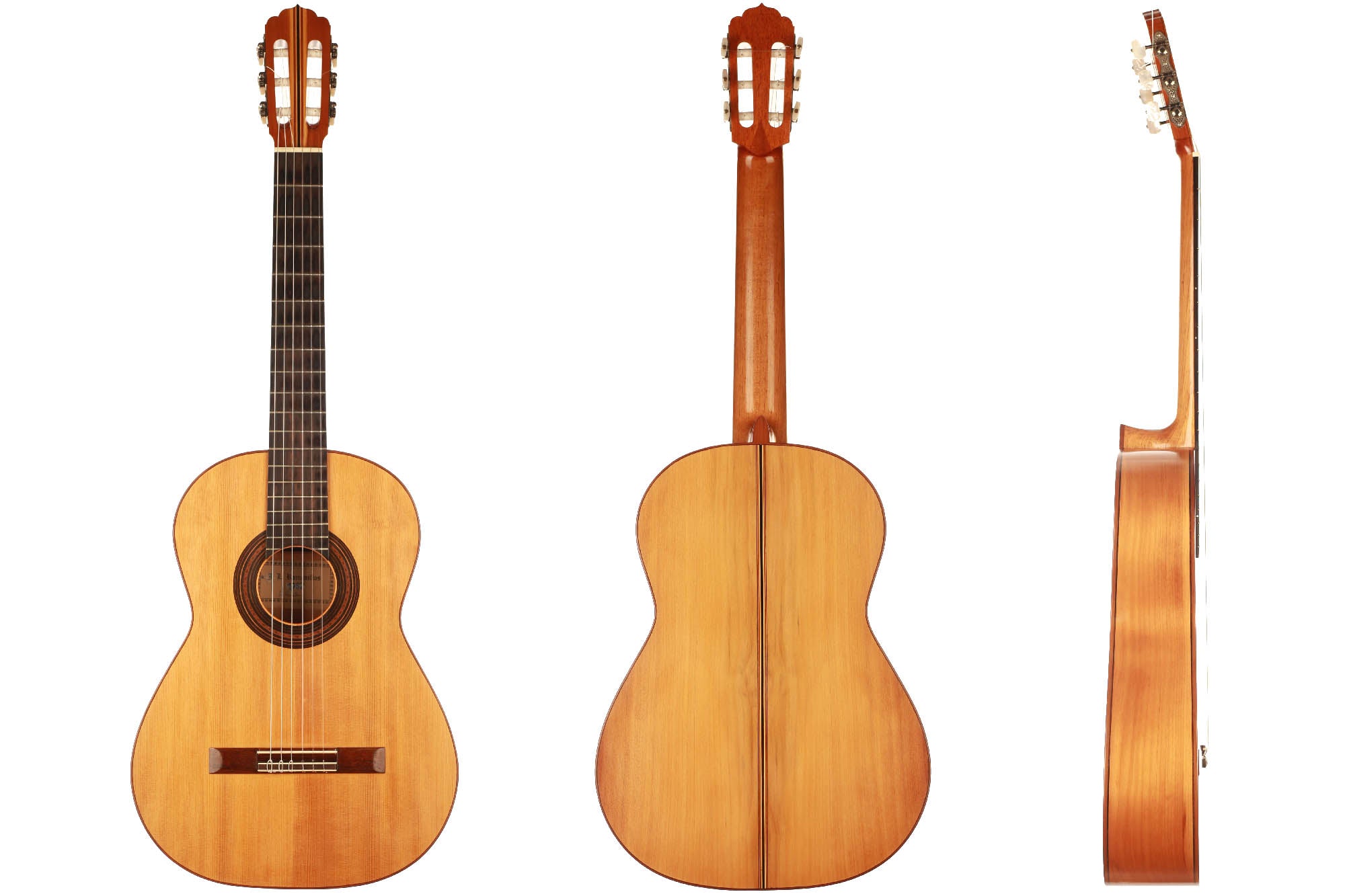 Constructed with a fine Swiss spruce top and stunning cypress back and sides, the guitar displays a deeply Spanish tonal character. Lightweight and extremely responsive, it offers a colorful, rich tonal palette and remarkable ease of play. Its balance is superb, and the sustain of the trebles is astonishing—especially for a cypress instrument. The first string sings generously, with shimmering overtones that add depth and warmth. This is a lively and mature guitar, a rare and expressive masterpiece, and a precious testament to the Romanillos legacy.