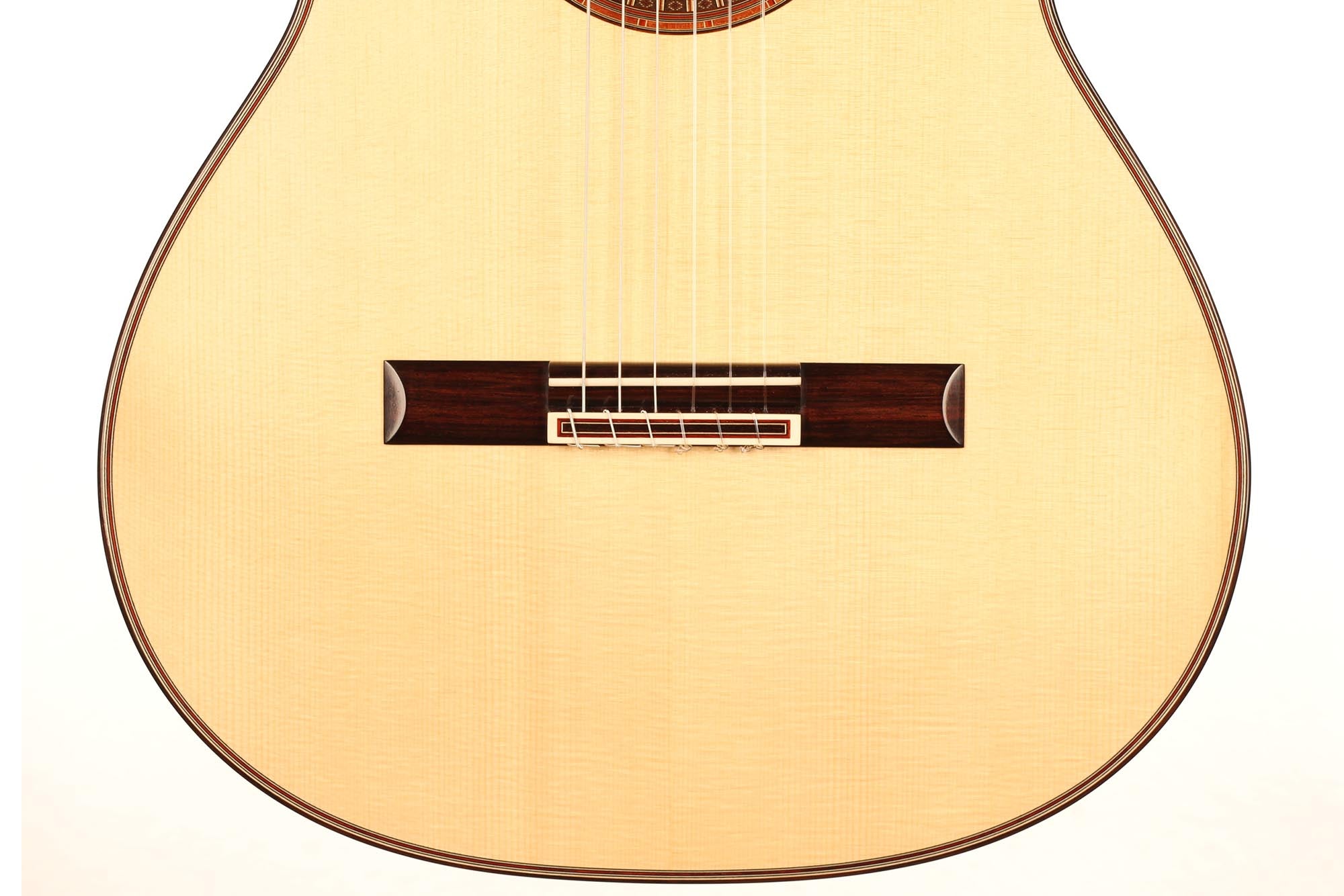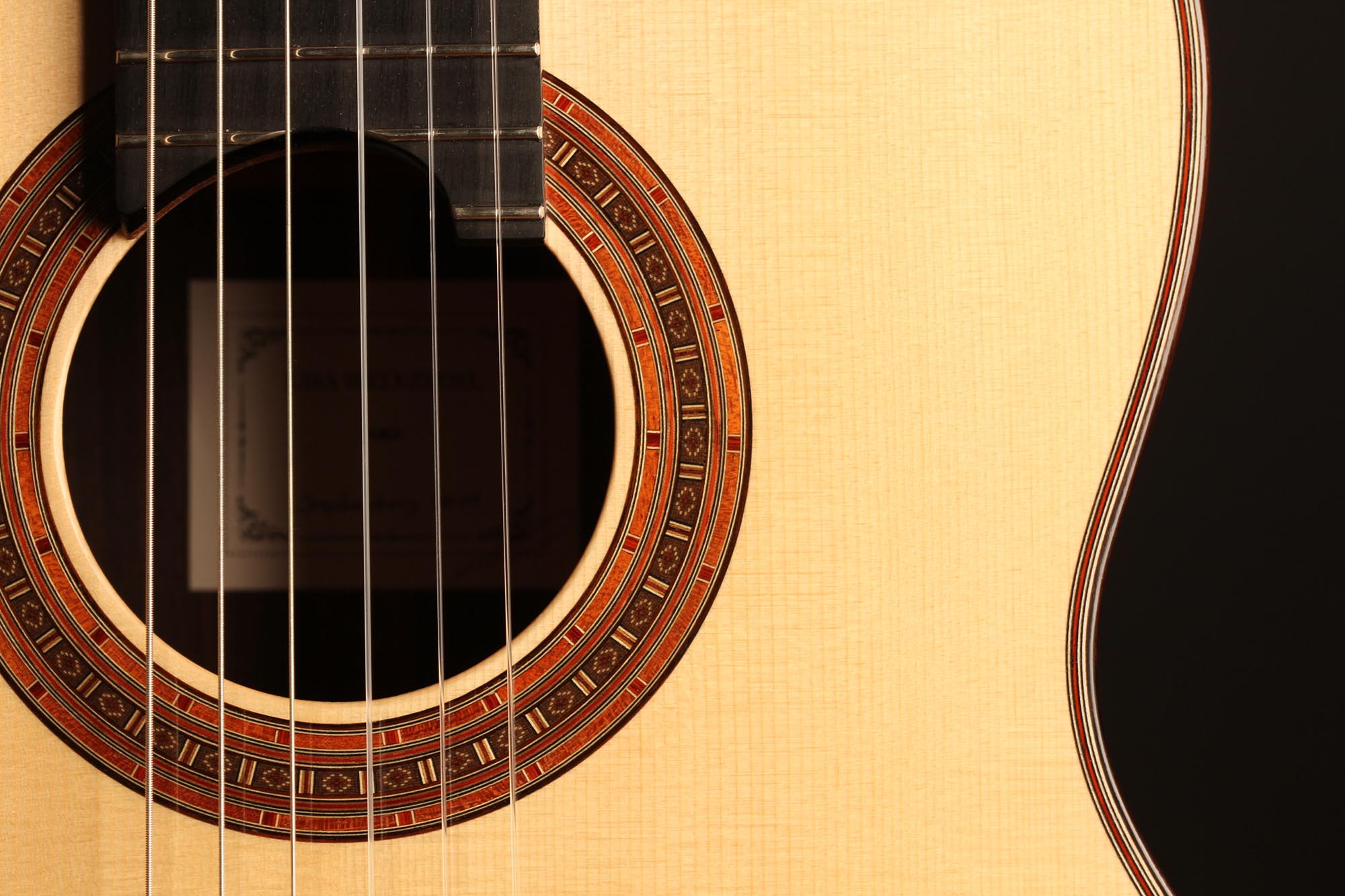 Die klassische Gitarre mit ihren weichen Nylonsaiten und ihrem charakteristischen Timbre ist zum Symbol der Kammermusik, der spanischen Tradition und des Konzertrepertoires geworden. Ihre moderne Form prägte Antonio de Torres im 19. Jahrhundert, indem er den Standard für Korpus, Fächerbeleistung und die 65-Zentimeter-Mensur setzte, die bis heute verwendet werden. Instrumente dieser Kategorie eröffnen eine reiche Palette von den feinen romantischen Miniaturen Tárregas bis zu den majestätischen Konzerten Rodrigos. Hier finden Sie Gitarren, die historische Kontinuität bewahren und zugleich zu neuen Interpretationen anregen.