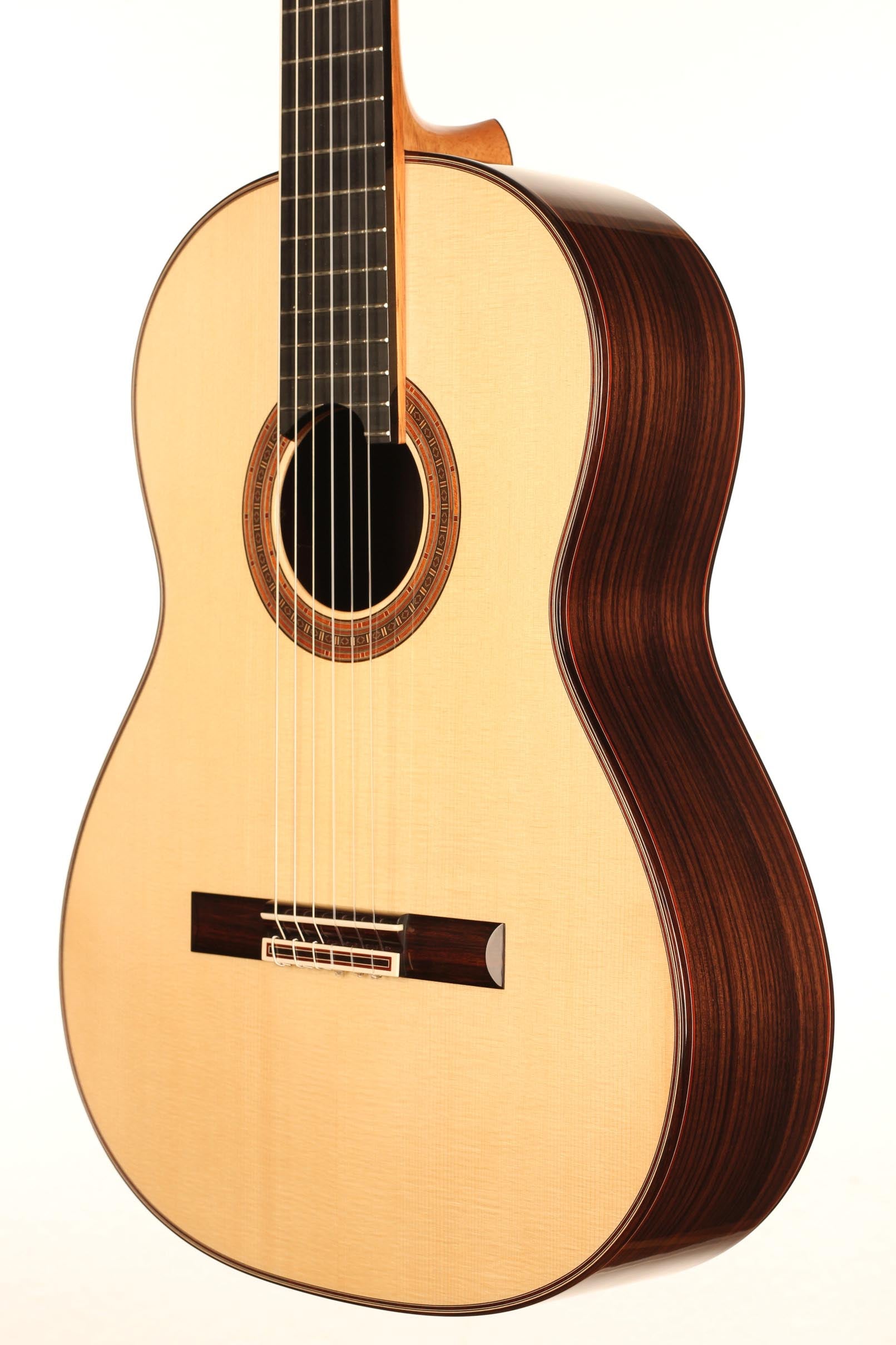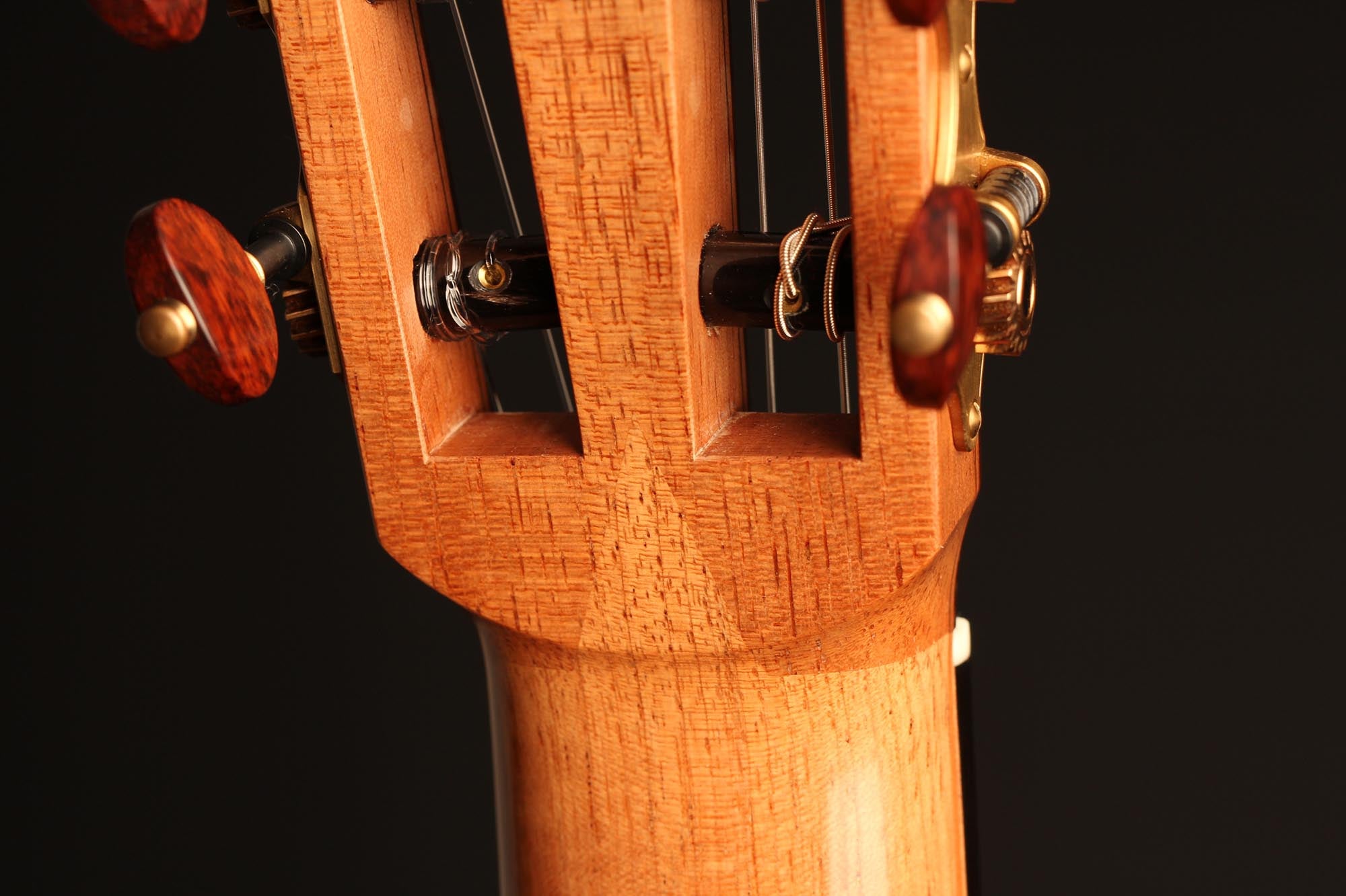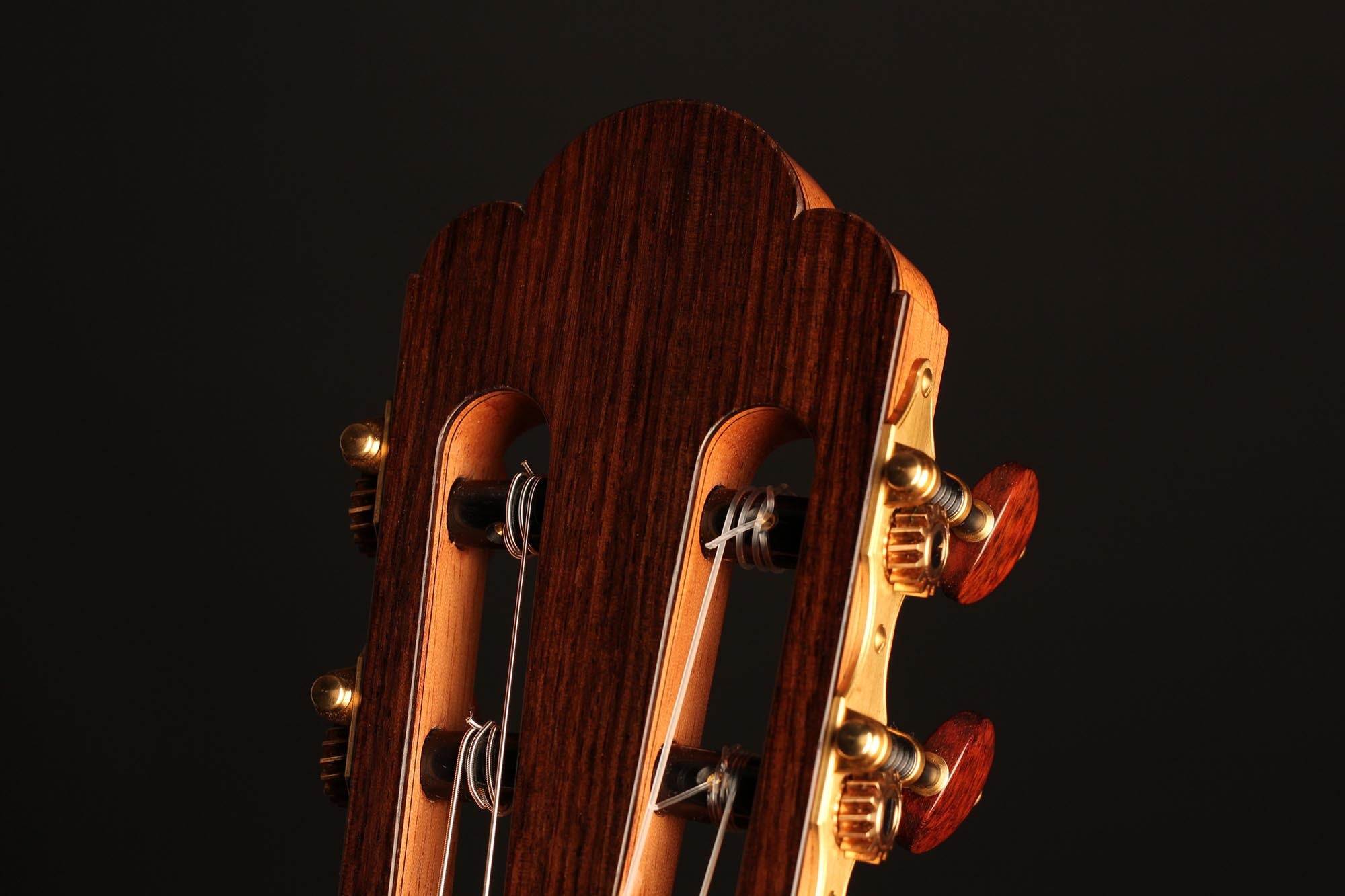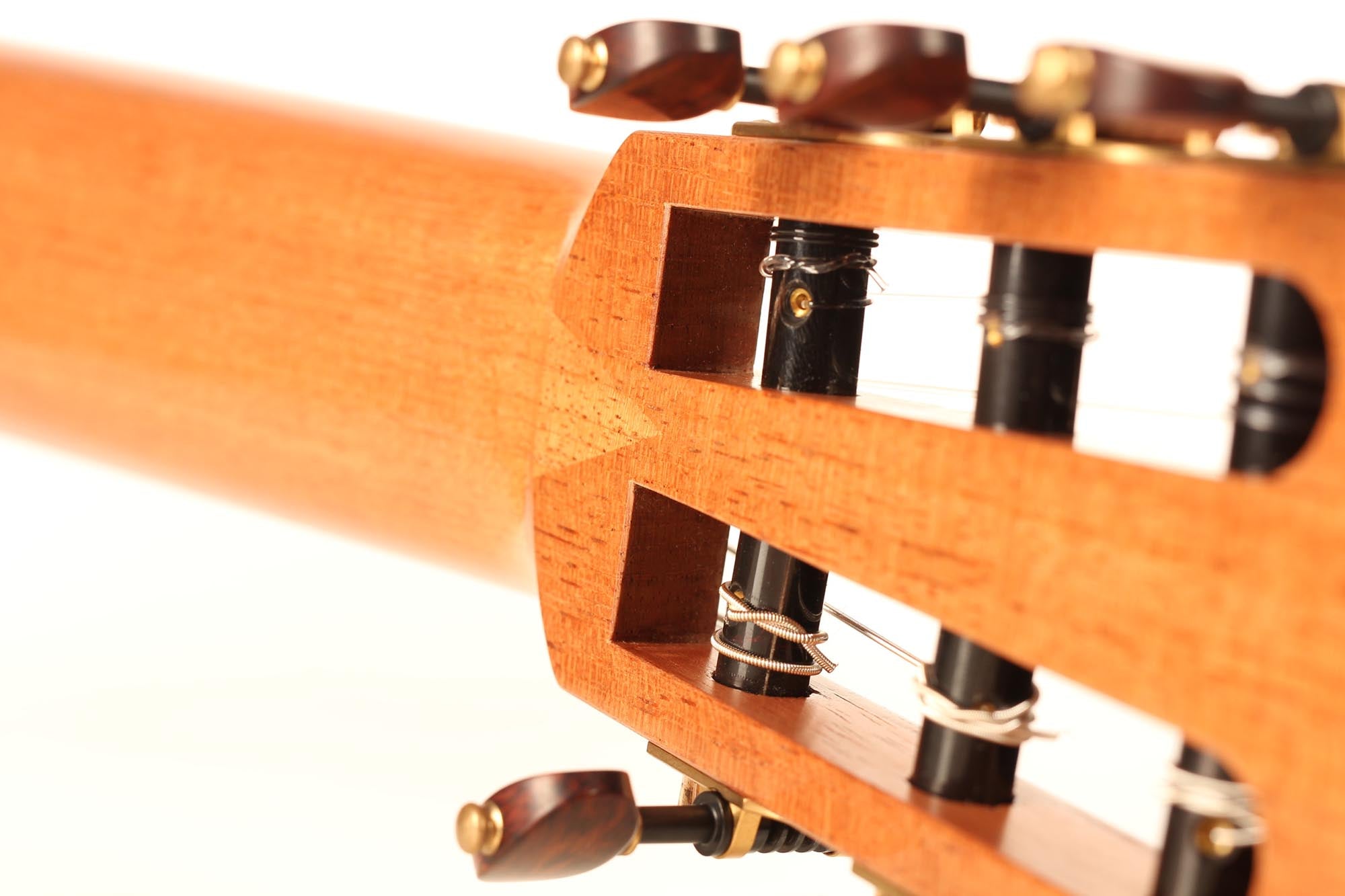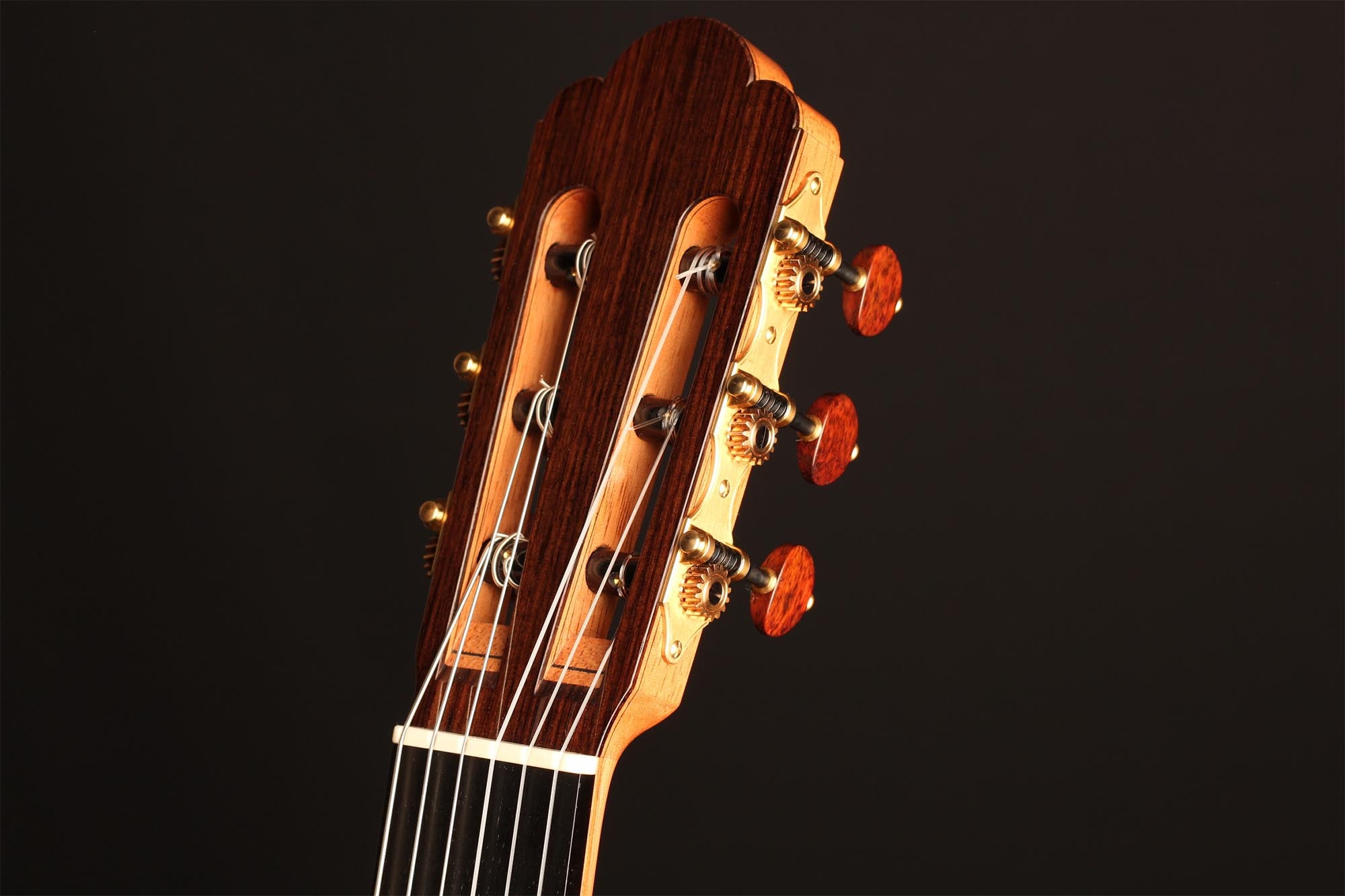 This traditionally built guitar with its balance and its very open singing sound is really convincing. The guitars’ richness of colors, the good dynamic as well as the projection and the wonderful sustain are very impressive. The high-quality mechanics are from Scheller, a Hiscox case is included.