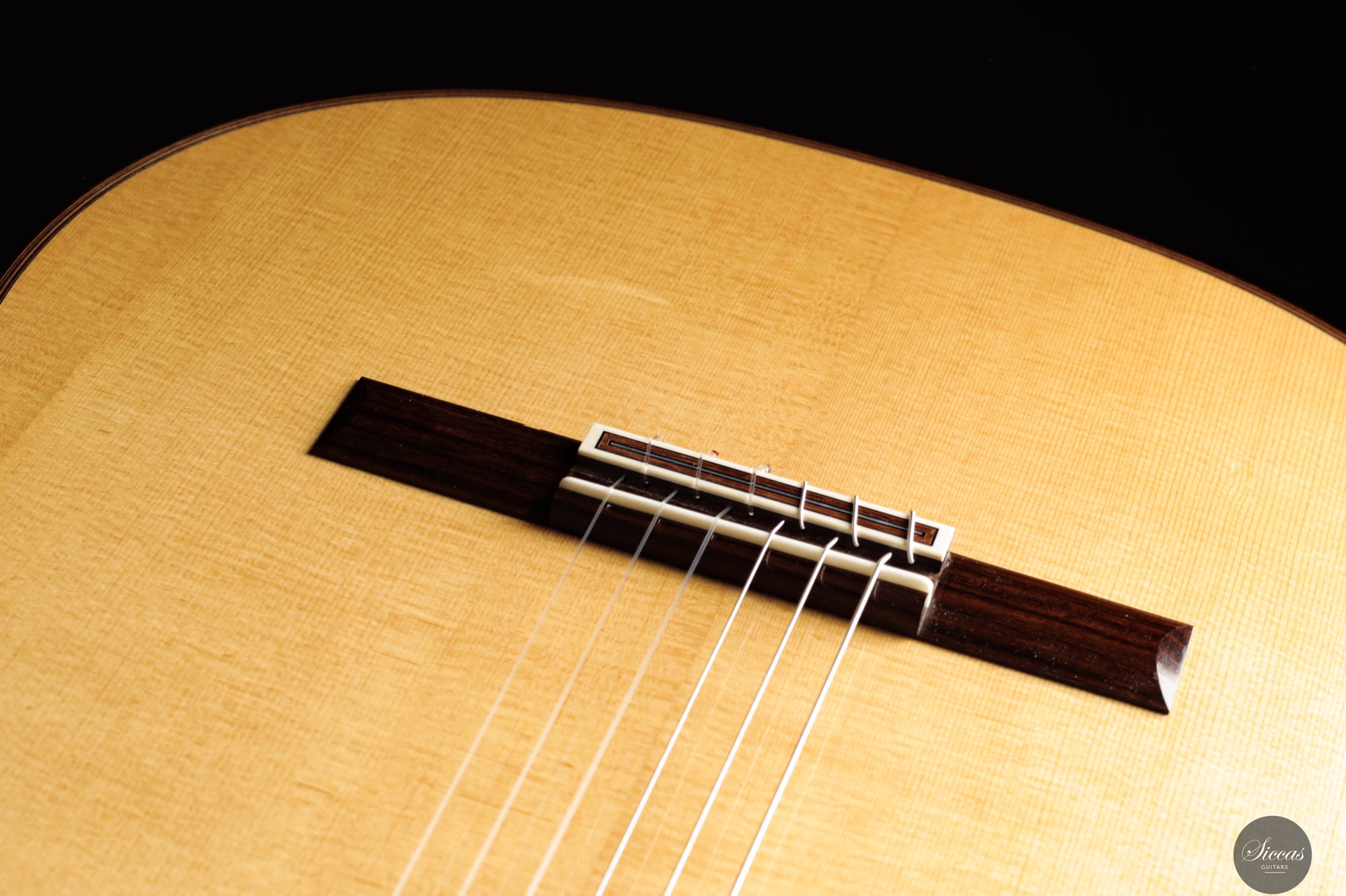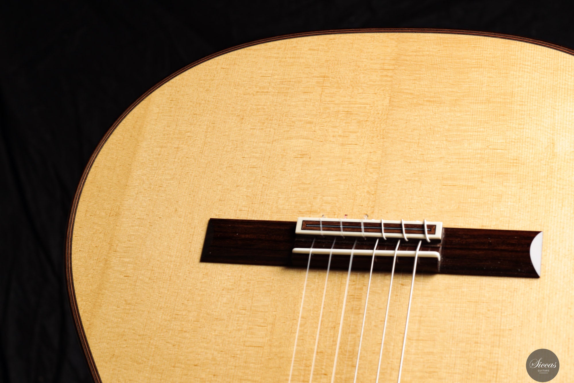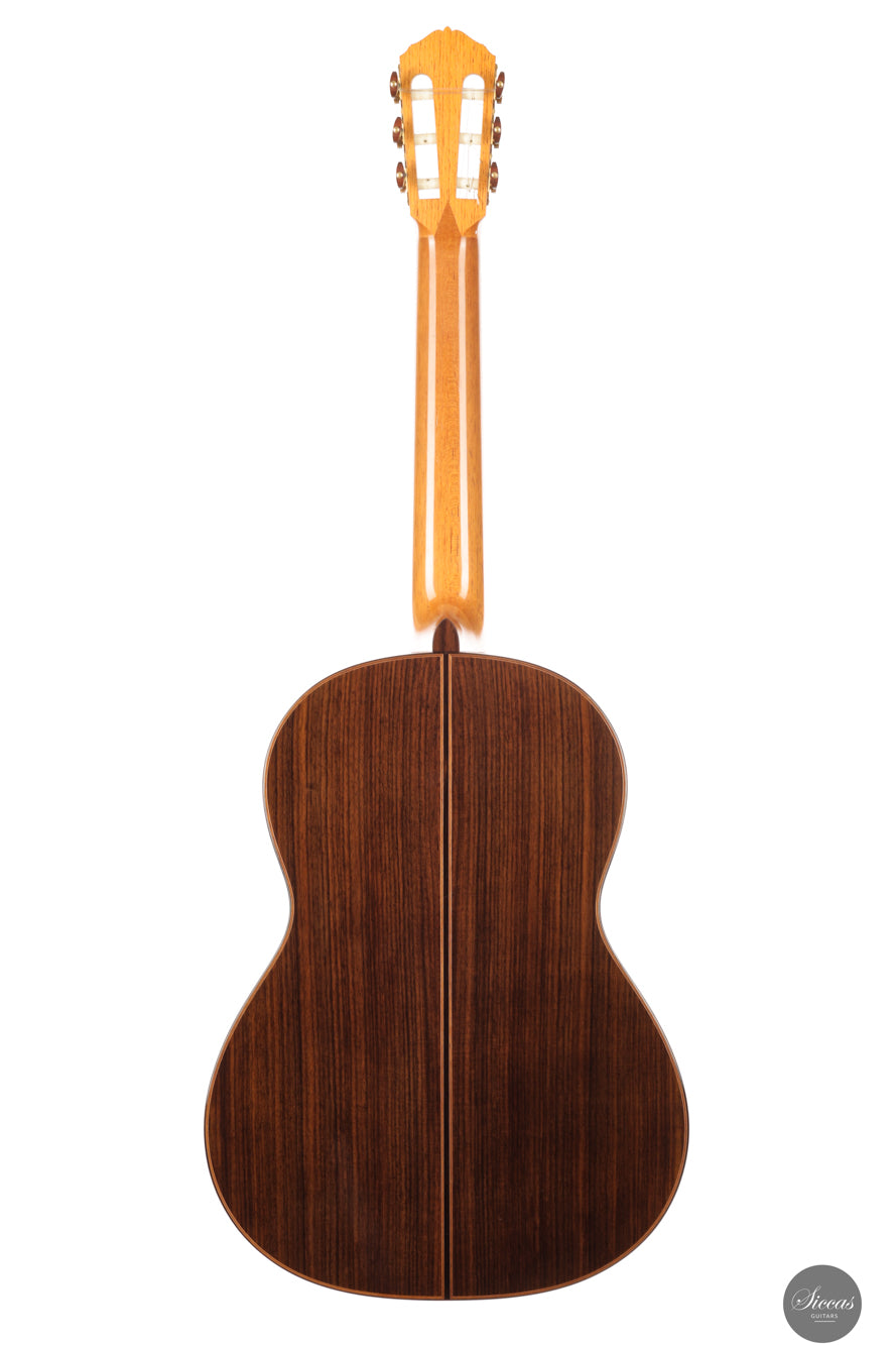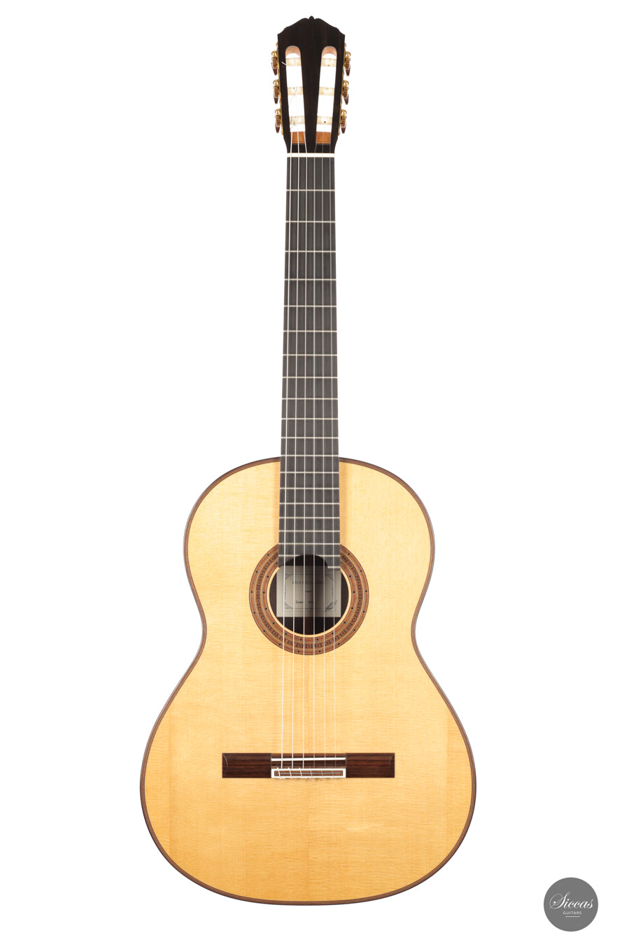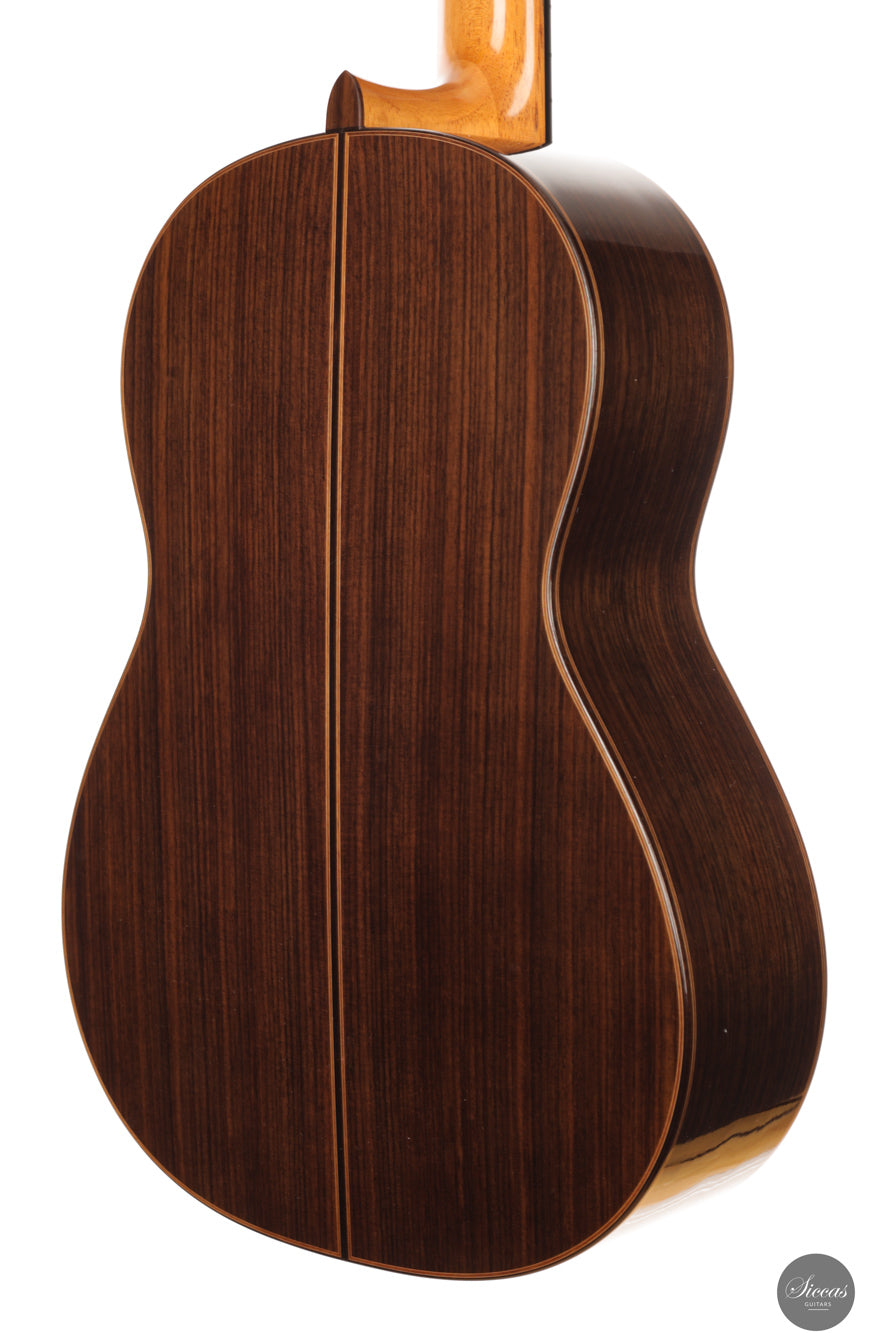 Diese Konzertgitarre wurde im Jahr 2022 gebaut und stellt ein besonders ausgereiftes Beispiel von Lisa Weinzierls traditionell konstruierten Instrumenten dar. Mit einer Fichtendecke sowie Boden und Zargen aus indischem Palisander erreicht sie eine klangliche Tiefe und Projektion, die häufig eher mit modernen Baukonzepten in Verbindung gebracht wird, dabei jedoch klar in der klassischen Tradition verankert bleibt.