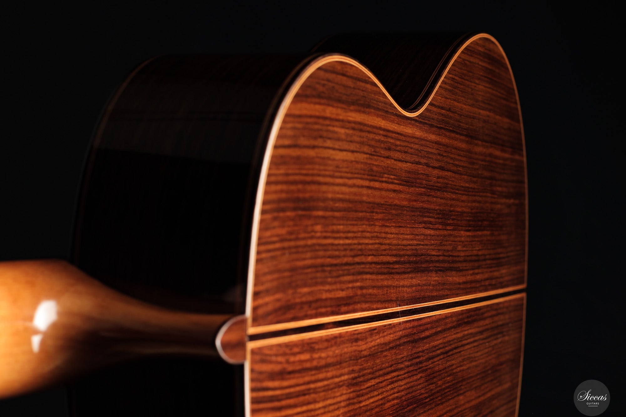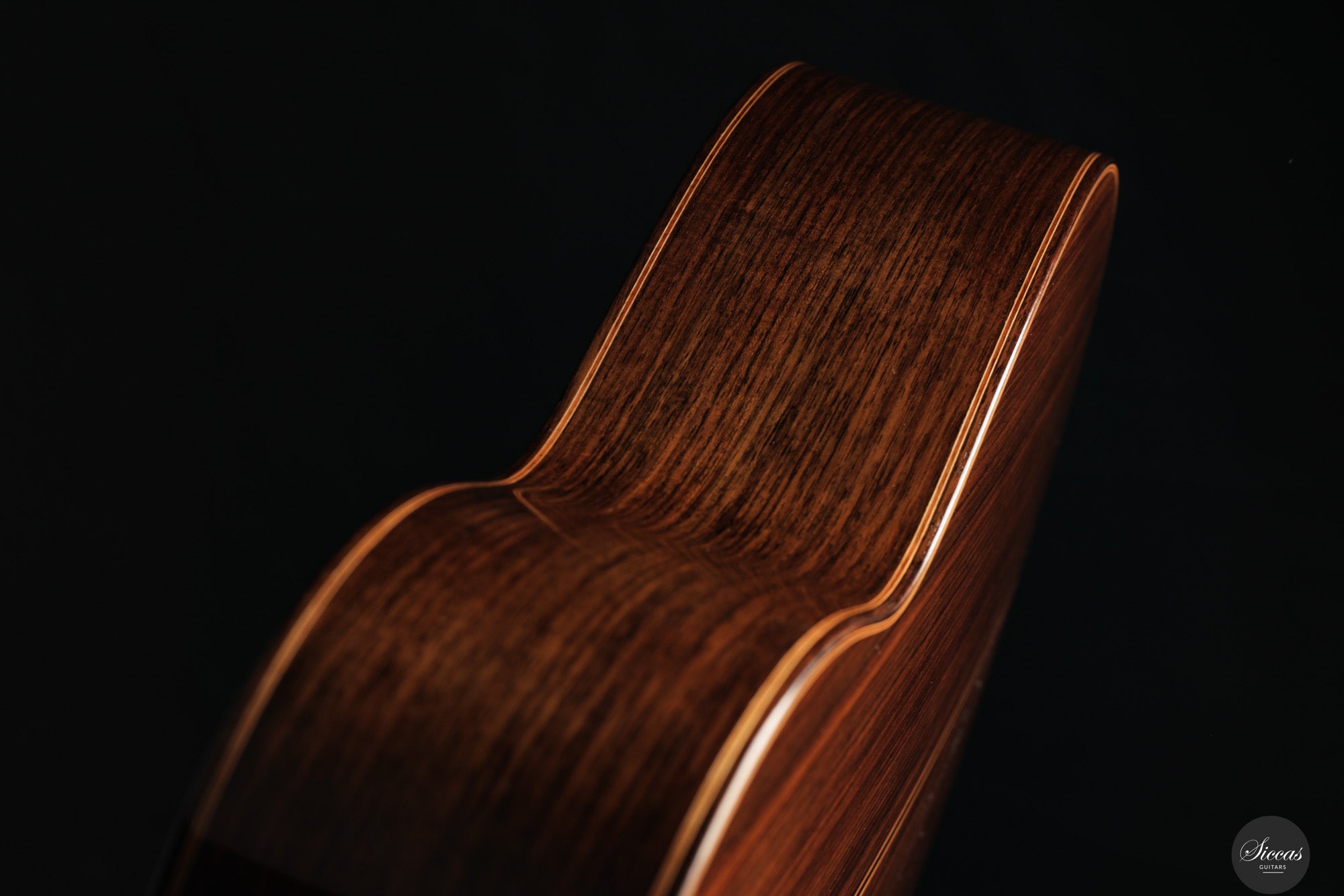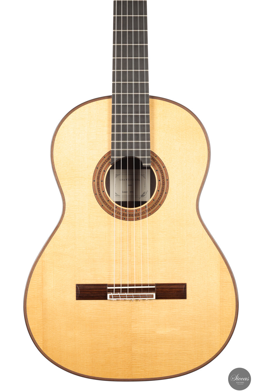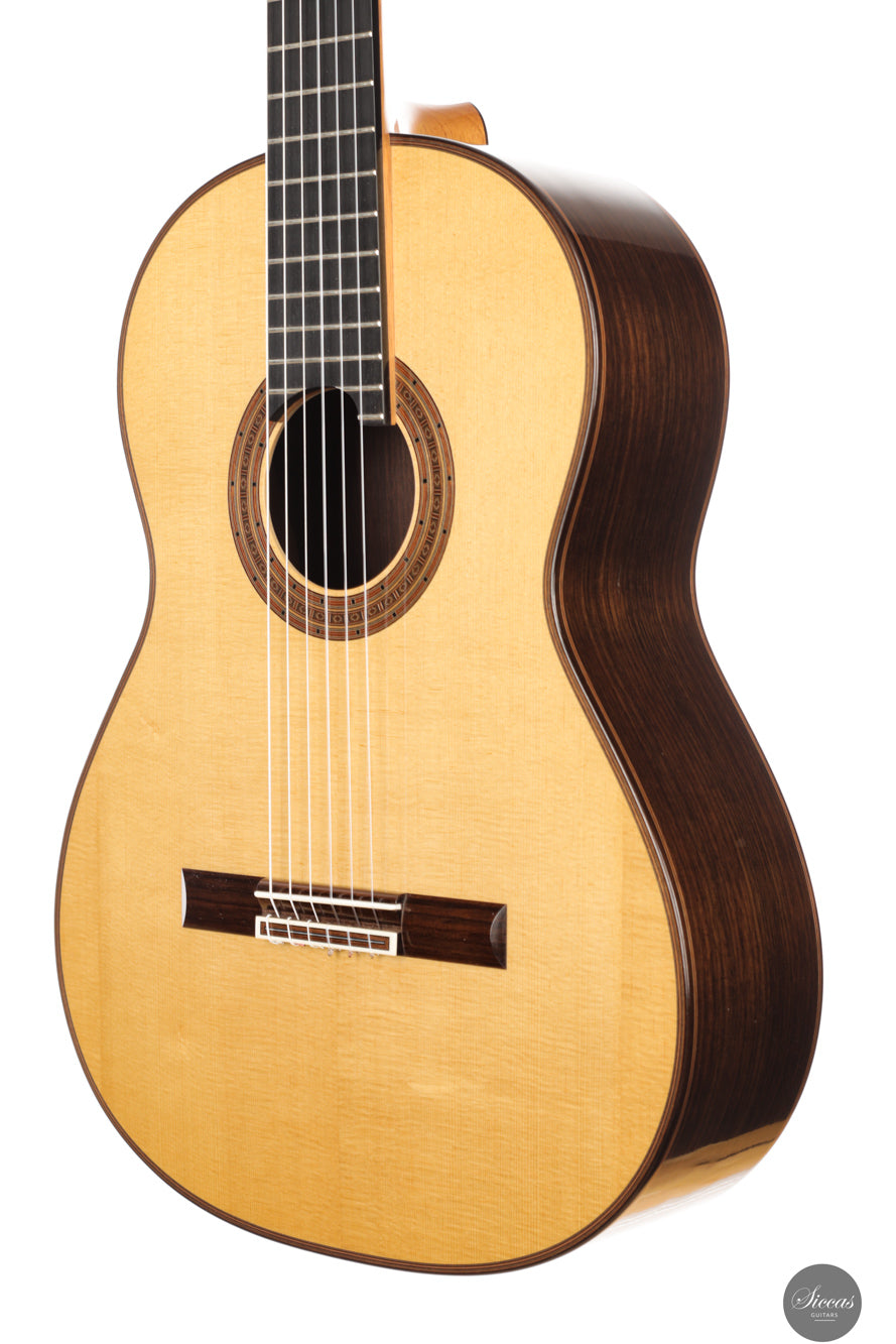 Diese Konzertgitarre wurde im Jahr 2022 gebaut und stellt ein besonders ausgereiftes Beispiel von Lisa Weinzierls traditionell konstruierten Instrumenten dar. Mit einer Fichtendecke sowie Boden und Zargen aus indischem Palisander erreicht sie eine klangliche Tiefe und Projektion, die häufig eher mit modernen Baukonzepten in Verbindung gebracht wird, dabei jedoch klar in der klassischen Tradition verankert bleibt.