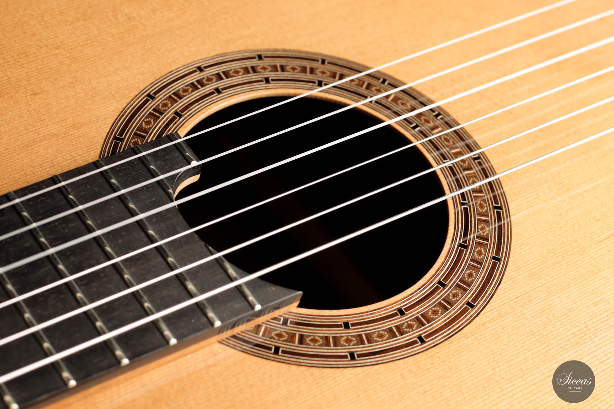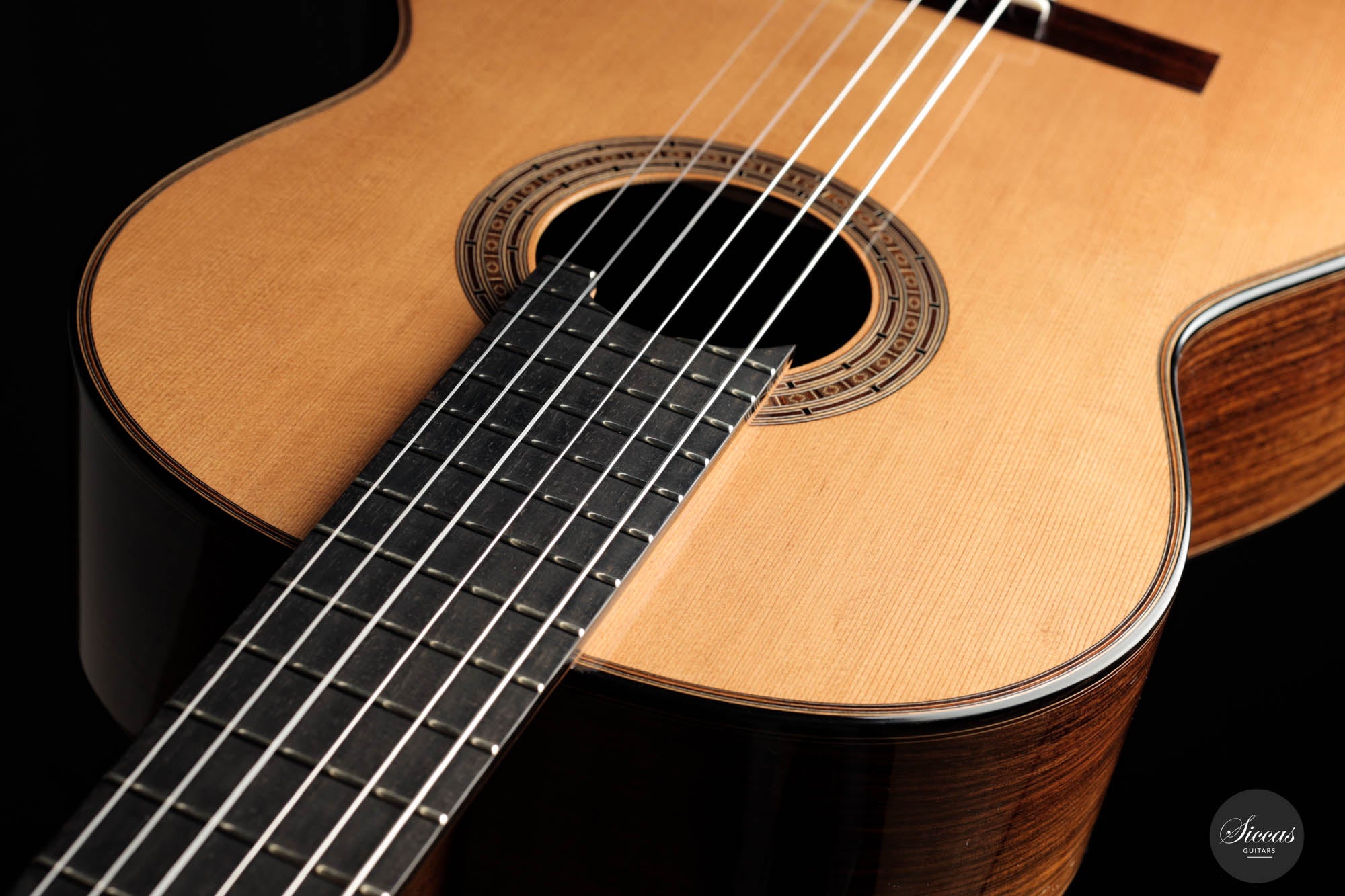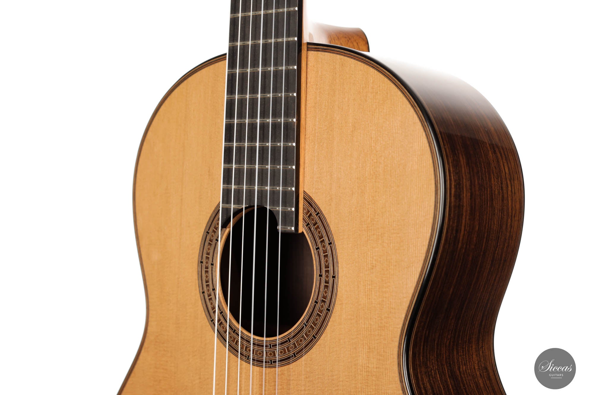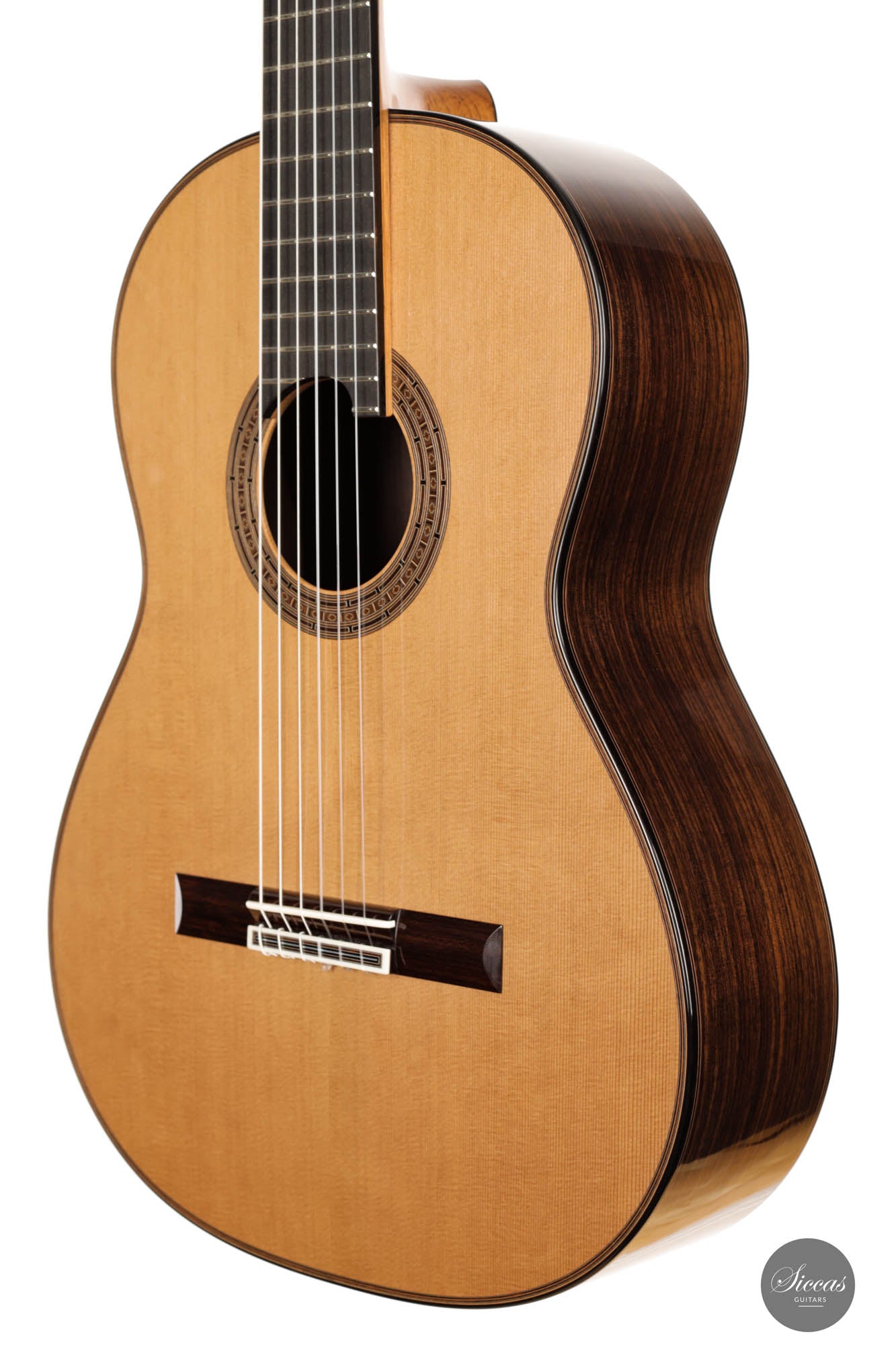 Über ihre reiche Klangpalette hinaus ist diese Gitarre eine akustische Kraftquelle, die ein Volumen liefert, das ihrem traditionellen Bau widerspricht, was sie ideal für Konzertbühnen macht. Ihre Ergonomie ist unübertroffen: eine Freude für die linke Hand und bietet intuitive Kontrolle für die rechte, sodass jede Aufführung nahtlos ist, sei es auf einer großen Bühne oder in den intimen Ecken des eigenen Heims.