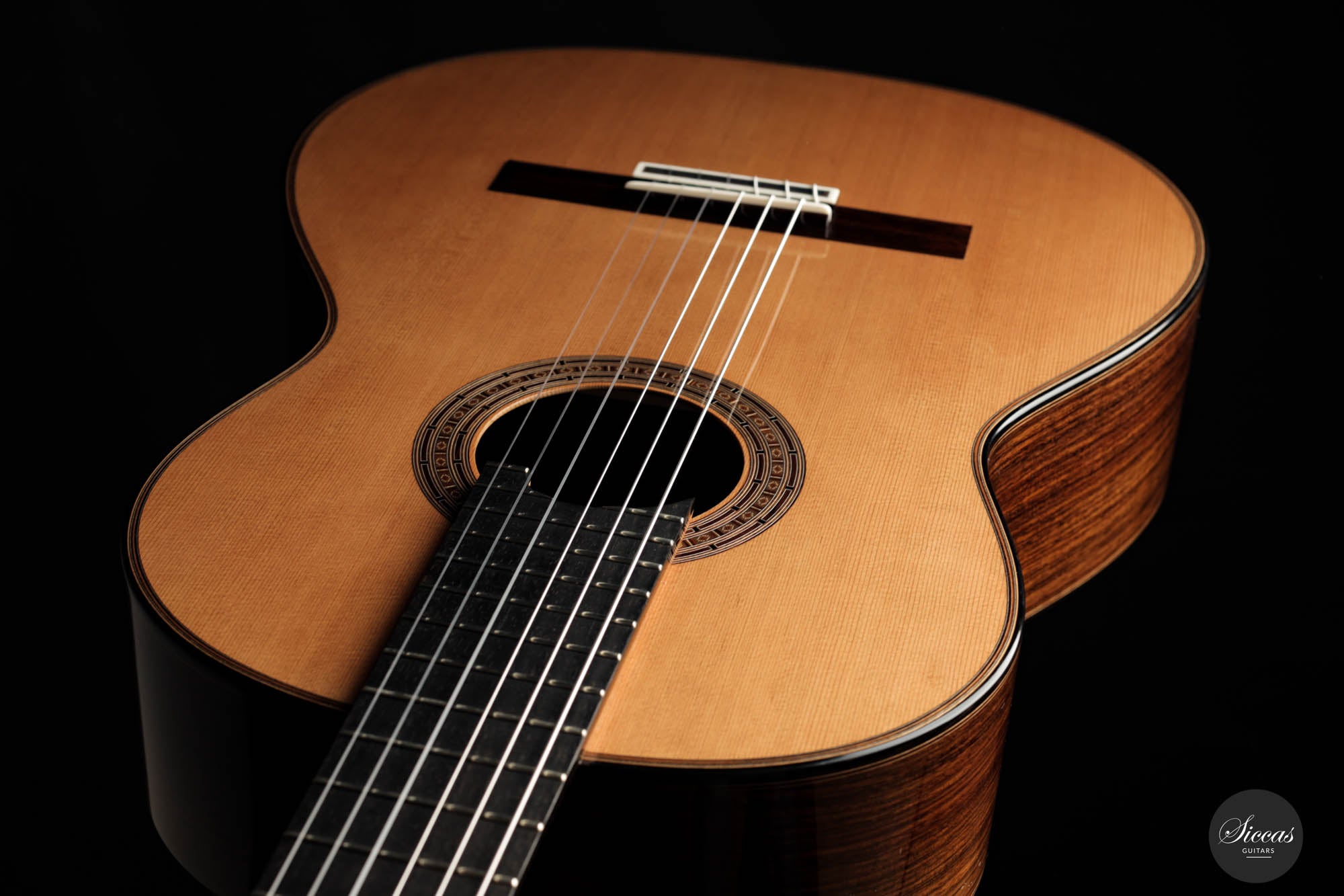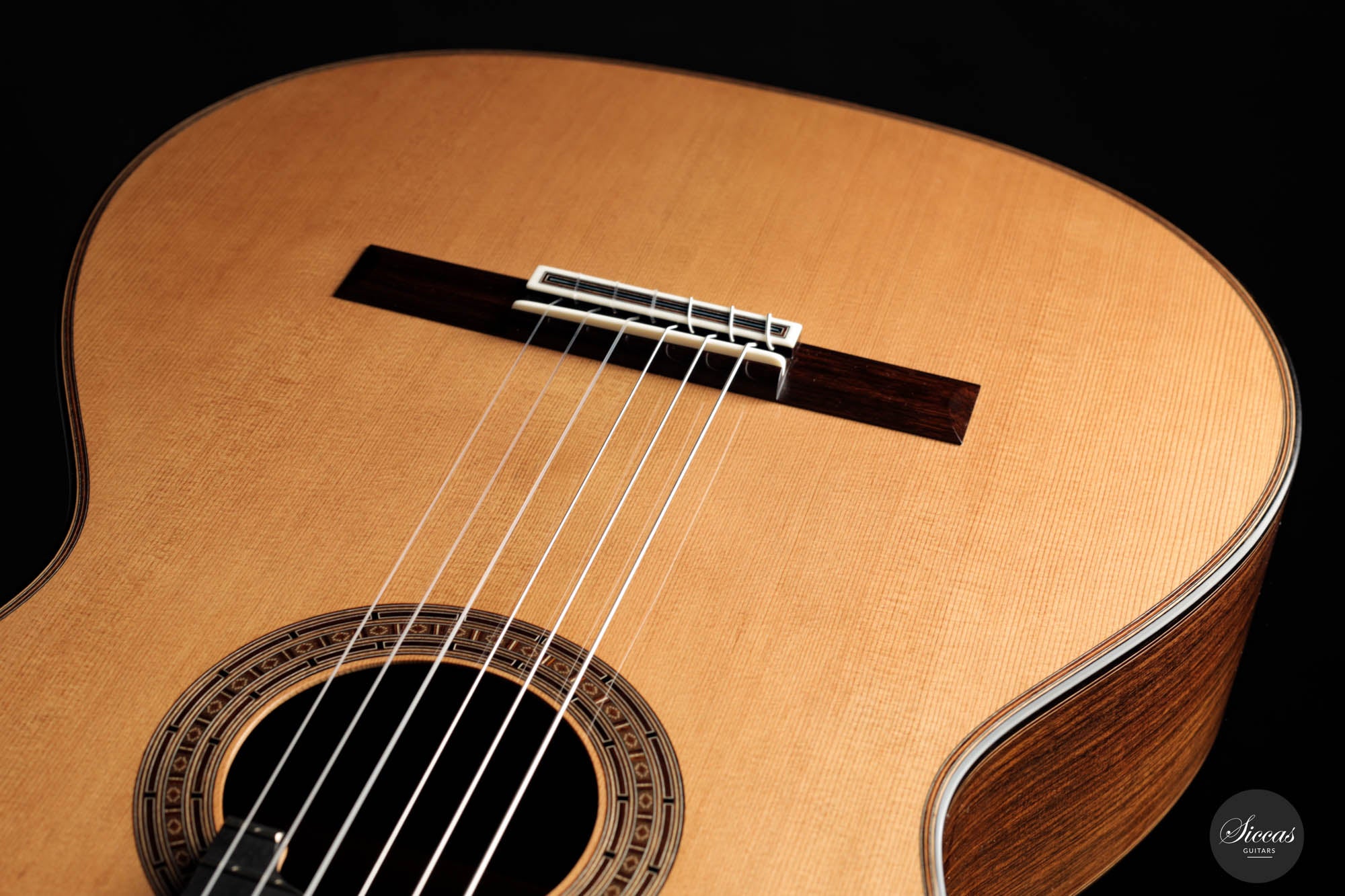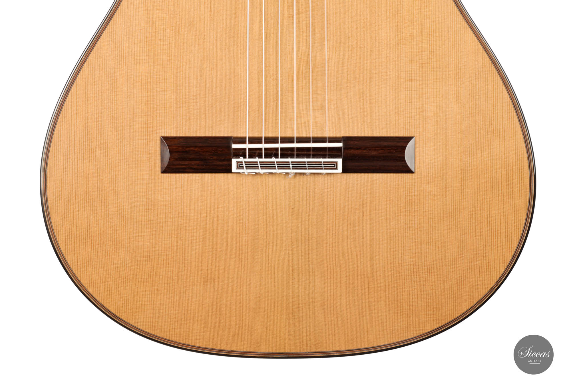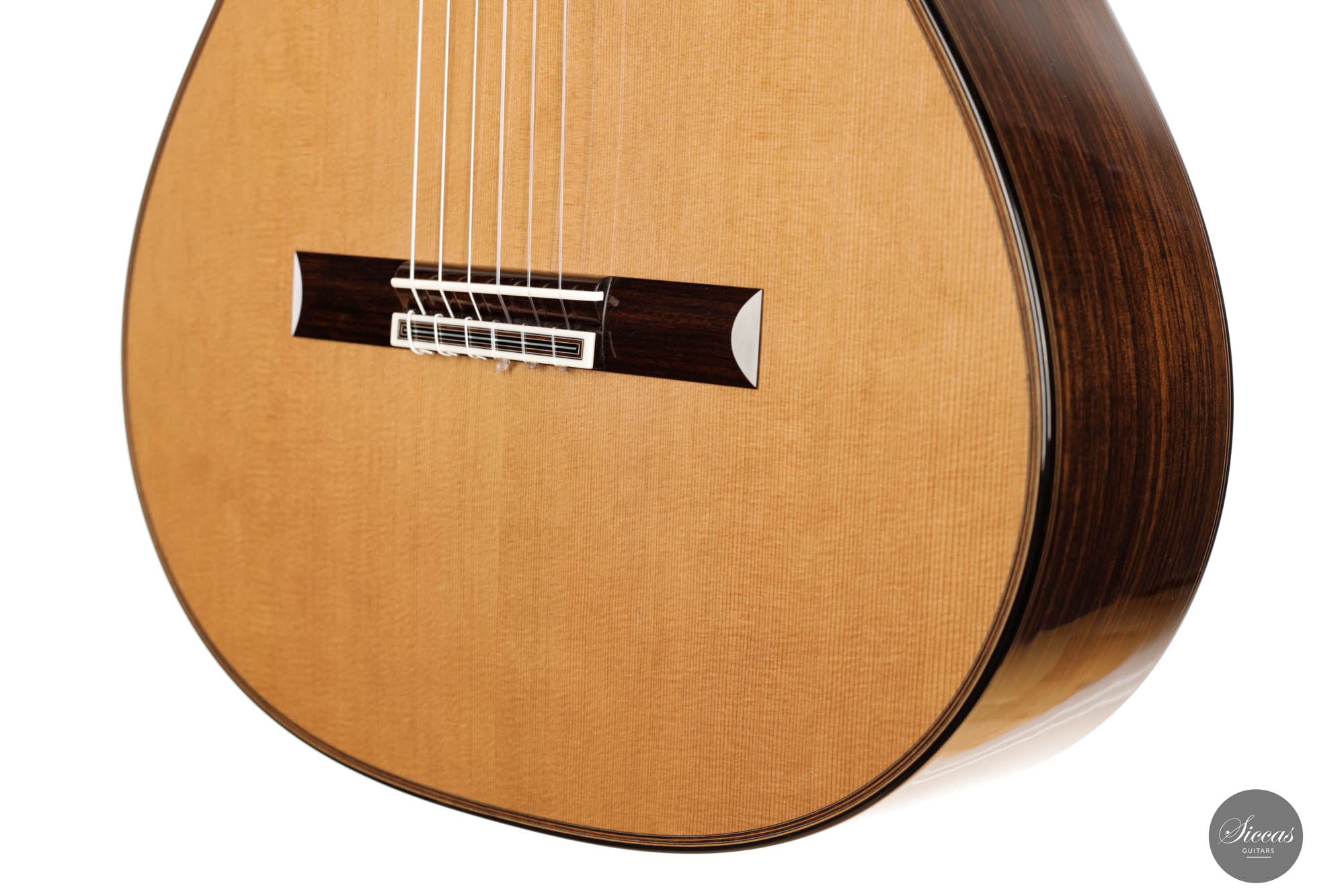 Über ihre reiche Klangpalette hinaus ist diese Gitarre eine akustische Kraftquelle, die ein Volumen liefert, das ihrem traditionellen Bau widerspricht, was sie ideal für Konzertbühnen macht. Ihre Ergonomie ist unübertroffen: eine Freude für die linke Hand und bietet intuitive Kontrolle für die rechte, sodass jede Aufführung nahtlos ist, sei es auf einer großen Bühne oder in den intimen Ecken des eigenen Heims.