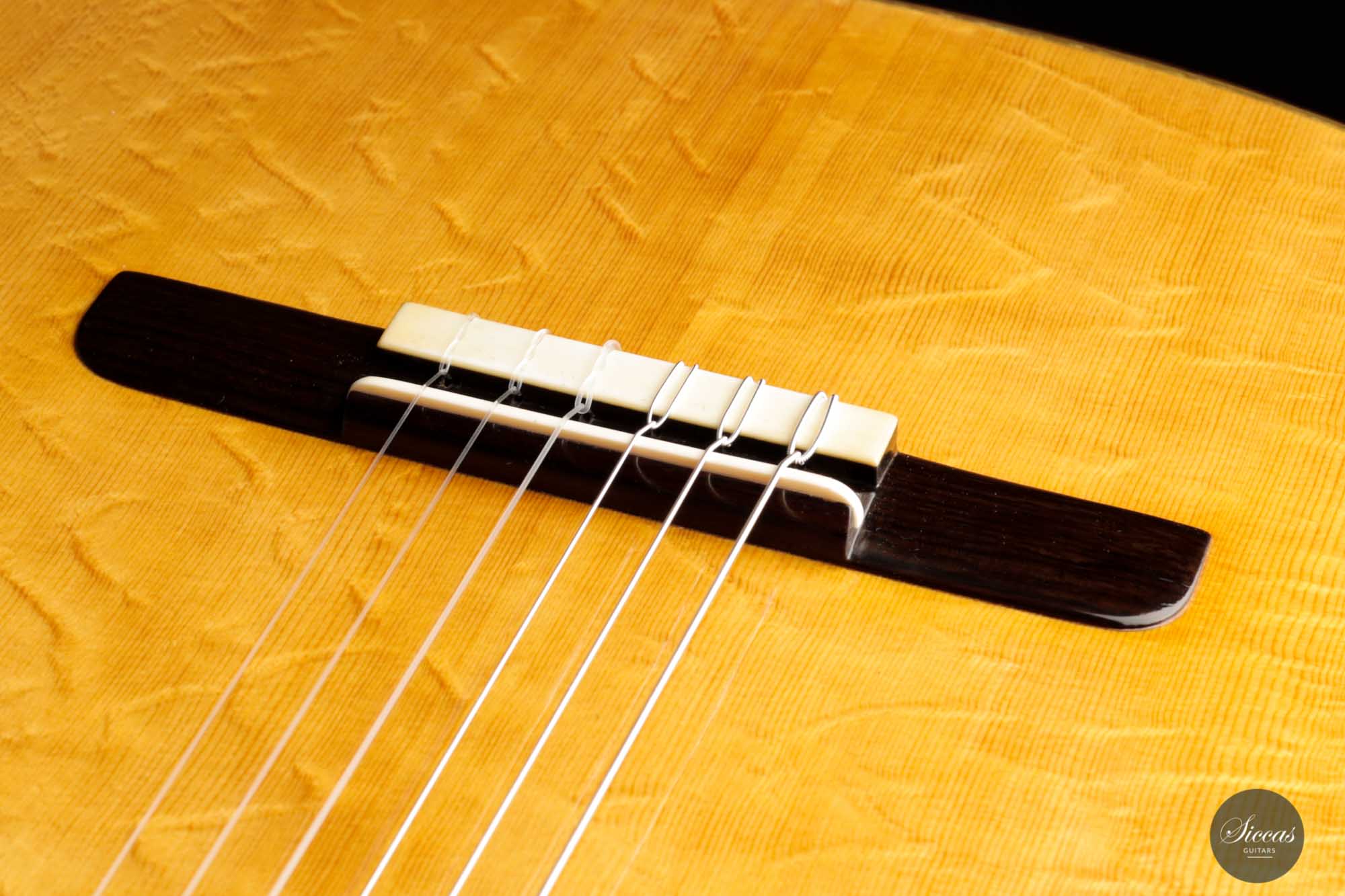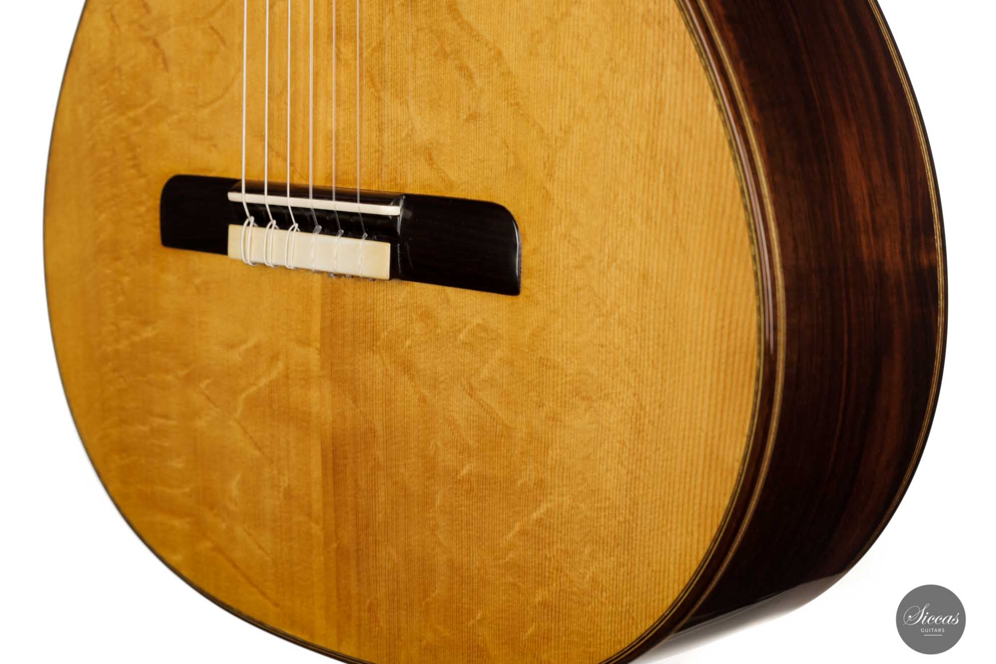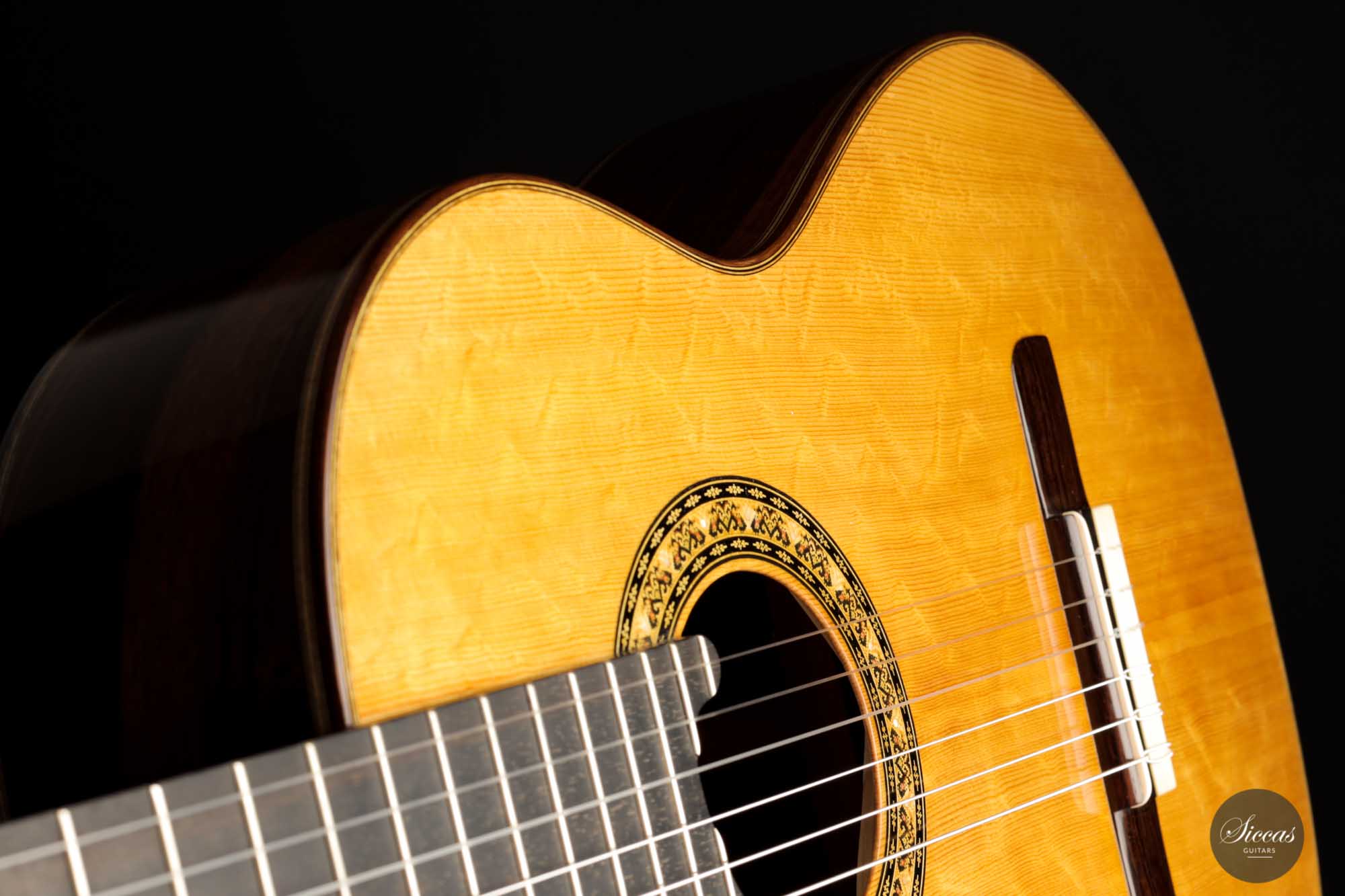 The sound exhibits a great overall balance, with deep and rich basses. It is well attuned to the richness of tone color but does not compromise the tonal vigor and lightness of playing. The treble sings beautifully and overall, the character of this Italian masterpiece is reminiscent of guitars from days long gone, which may be in no small part due to Lorenzo Frignani’s large collection of antique guitars; a unique sonic universe full of inspiration for a knowledgeable master luthier of his class.