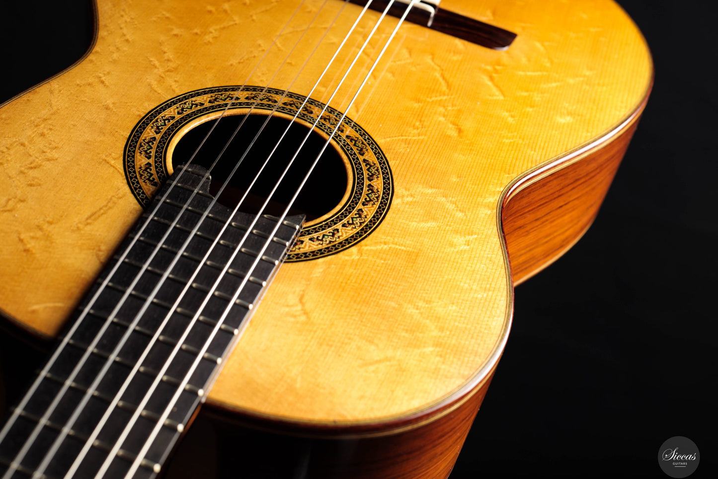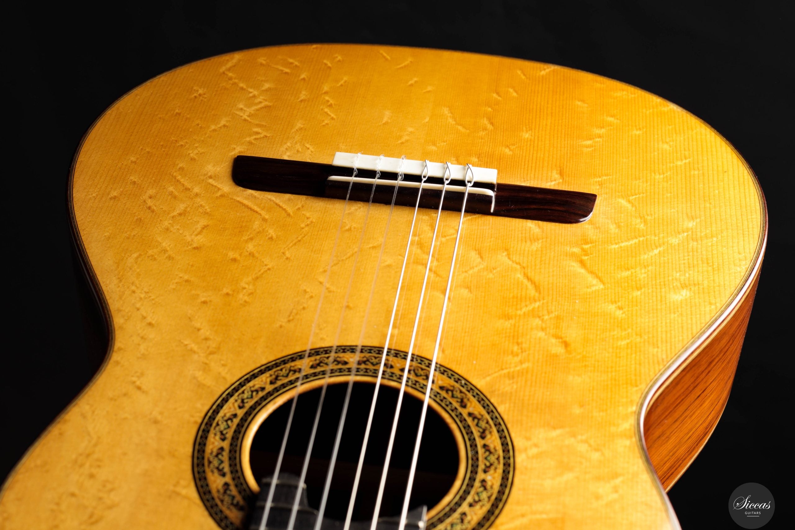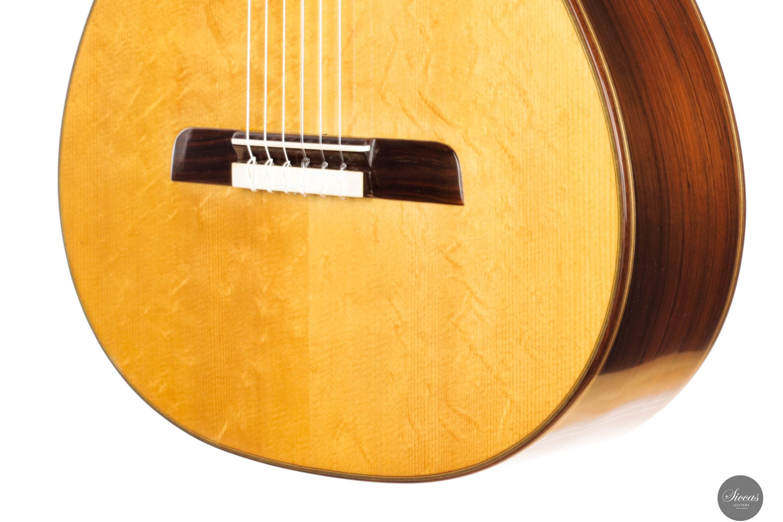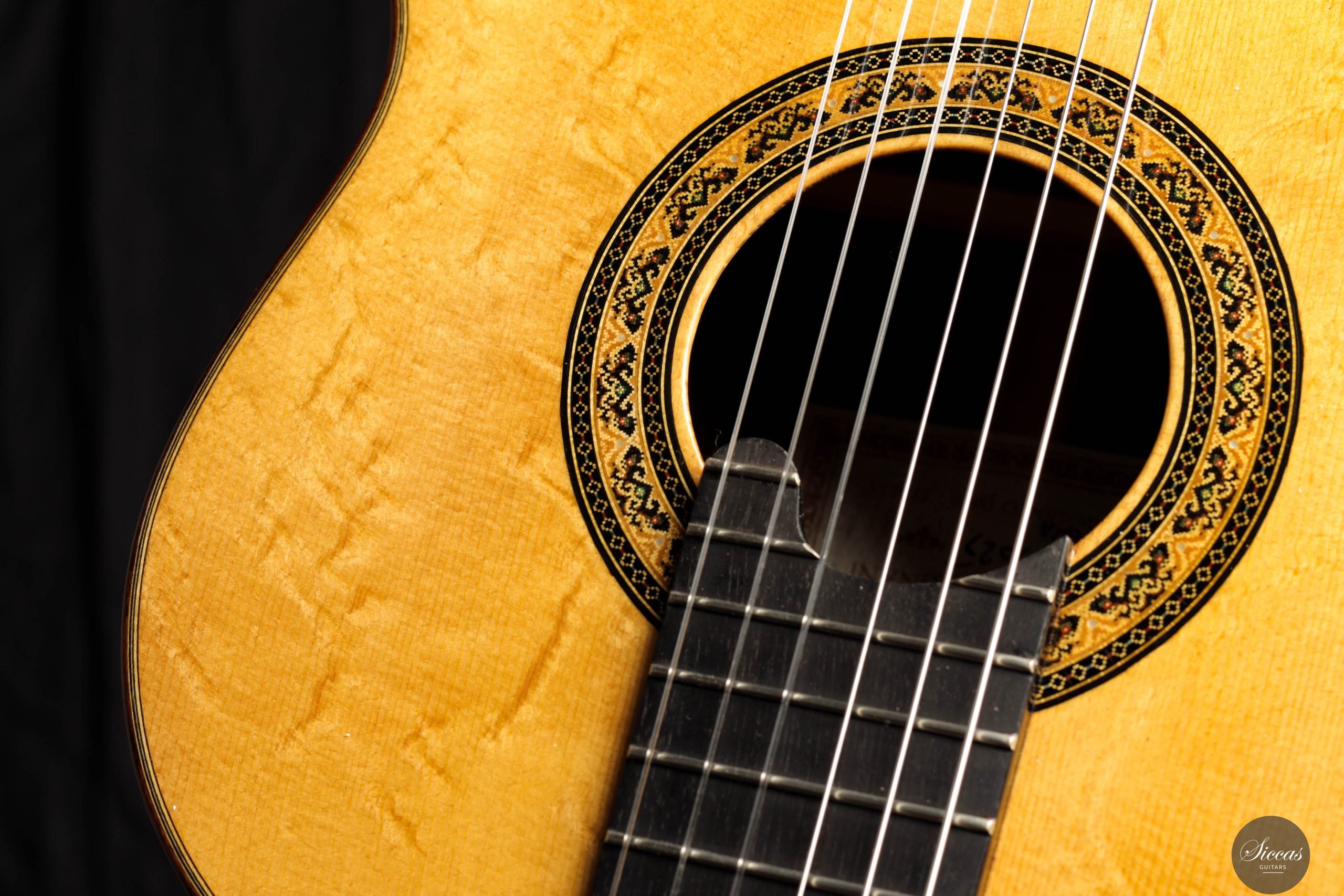Klanglich überzeugt dieses Instrument durch einen reichen Obertongehalt und einen seidig-holzigen Ton, der der Gitarre eine kraftvolle, ernste und beinahe feierliche Persönlichkeit verleiht. Die Klangfarbe ist tiefgründig und komplex, mit einer Stimme, die sowohl Spieler als auch Zuhörer gleichermaßen in den Bann zieht.