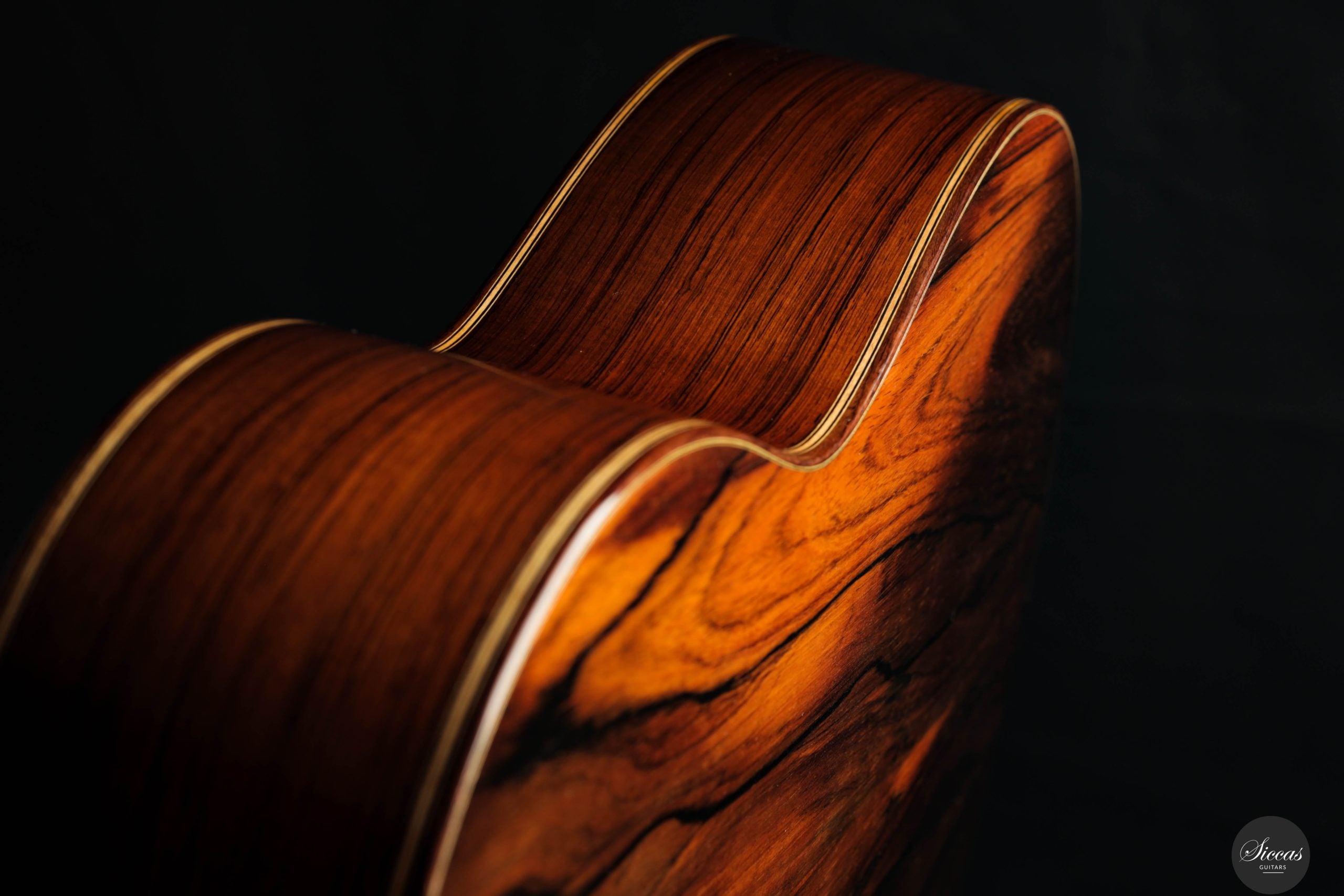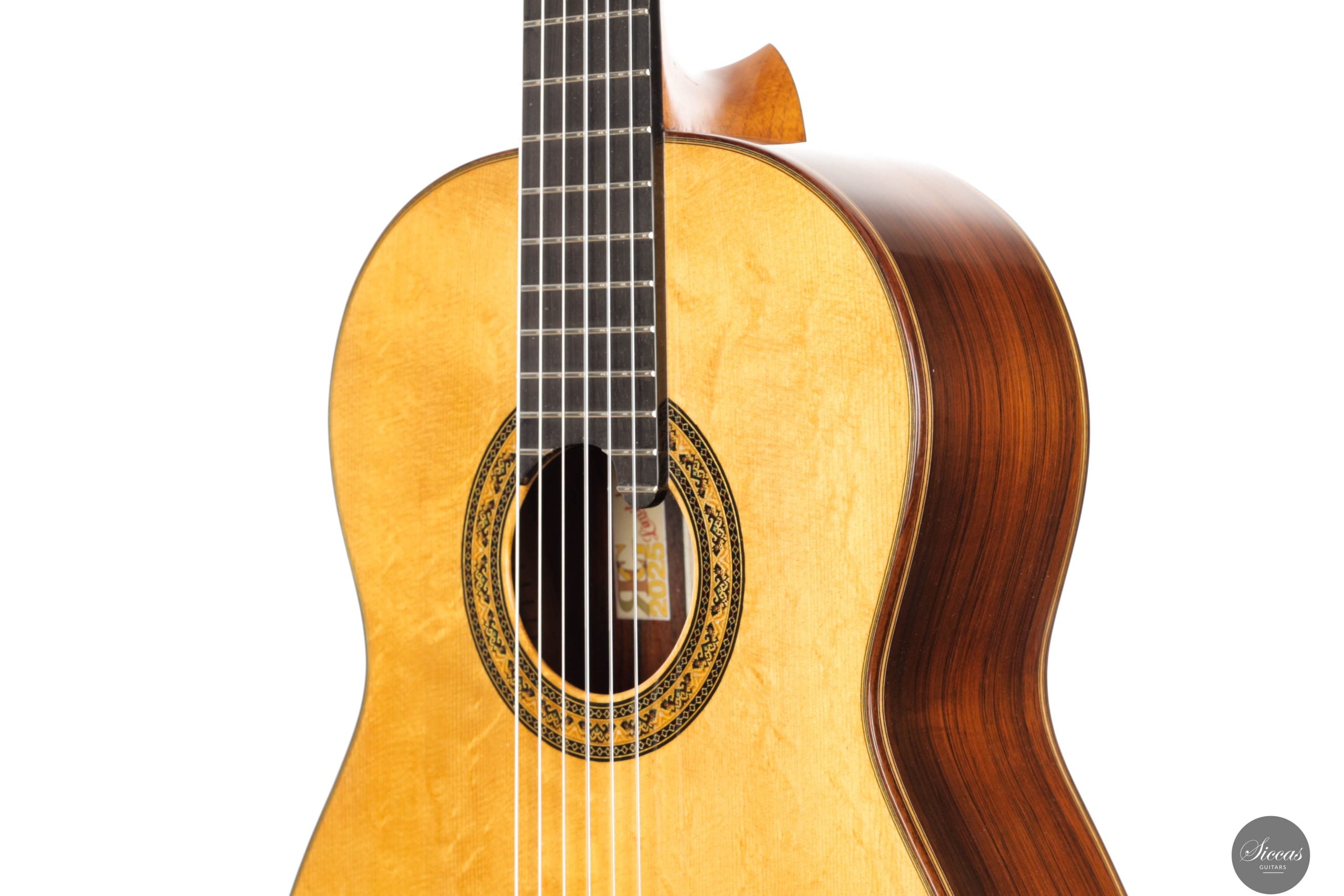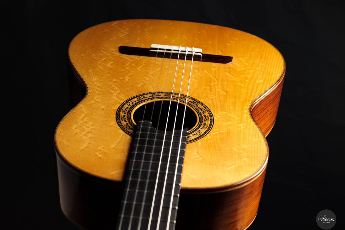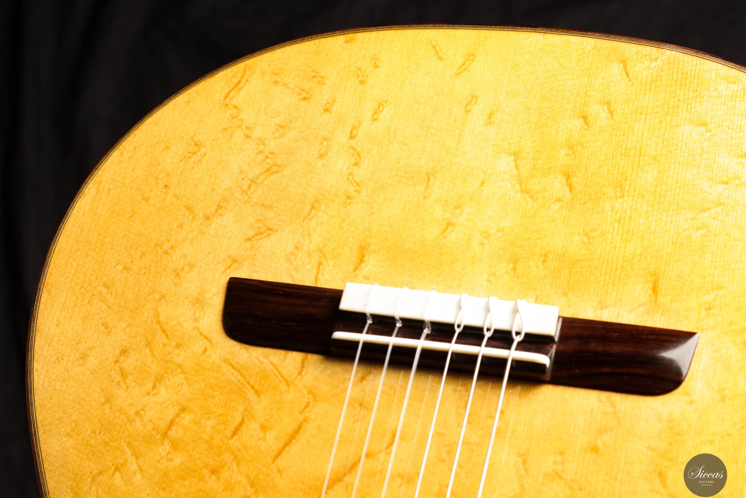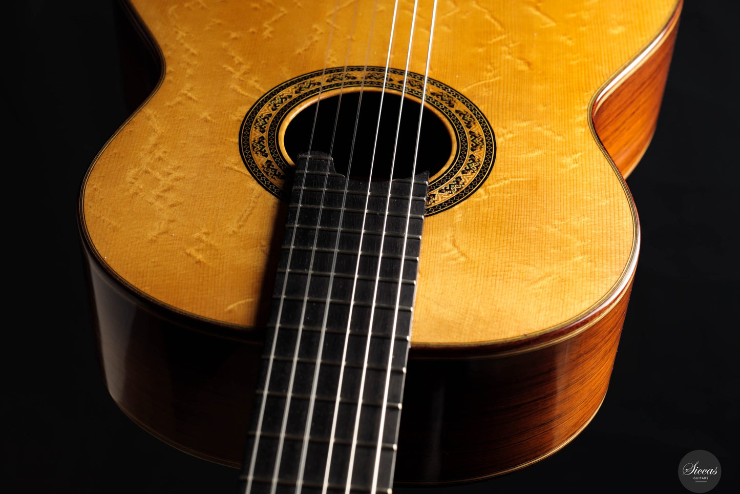 Klanglich überzeugt dieses Instrument durch einen reichen Obertongehalt und einen seidig-holzigen Ton, der der Gitarre eine kraftvolle, ernste und beinahe feierliche Persönlichkeit verleiht. Die Klangfarbe ist tiefgründig und komplex, mit einer Stimme, die sowohl Spieler als auch Zuhörer gleichermaßen in den Bann zieht.
