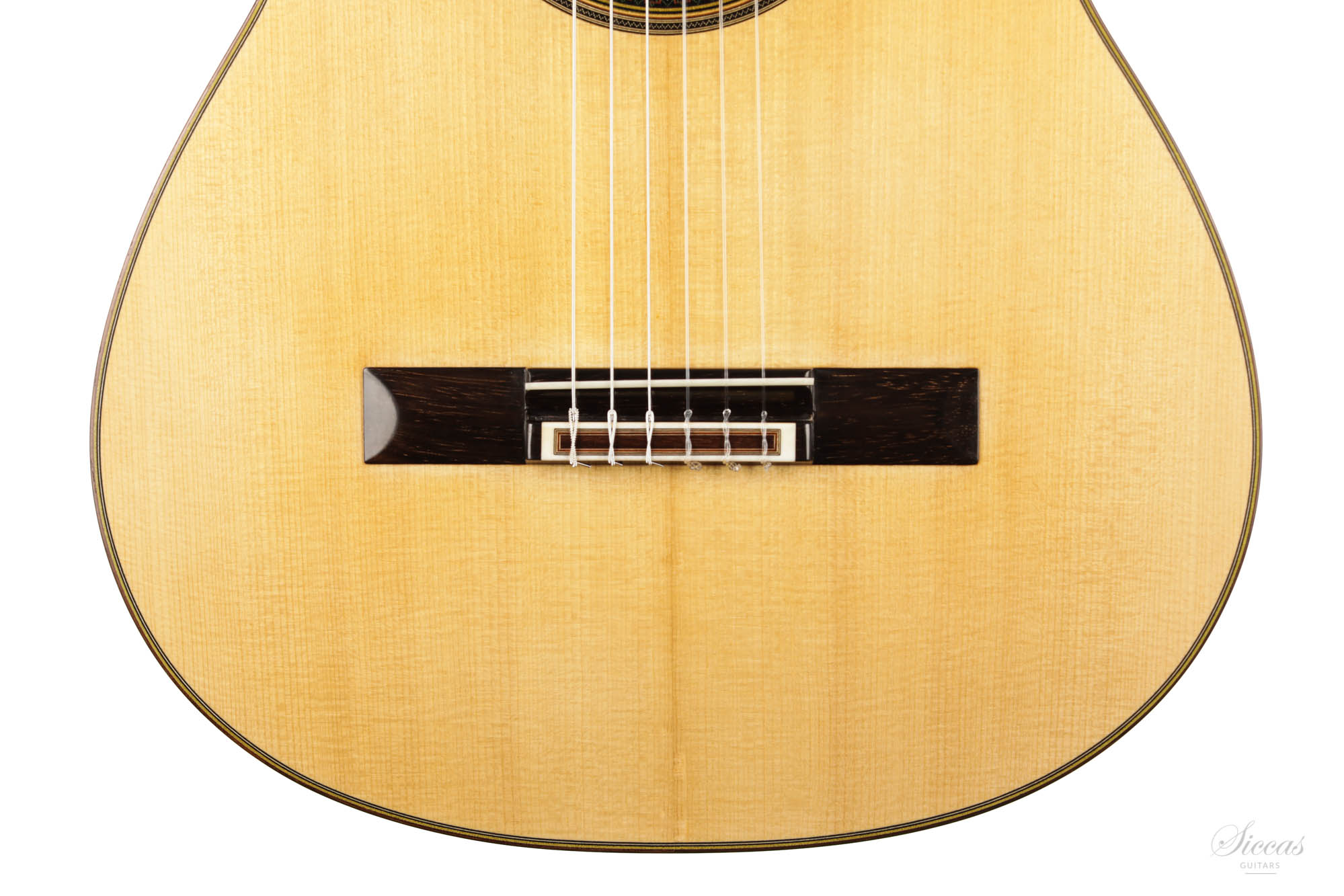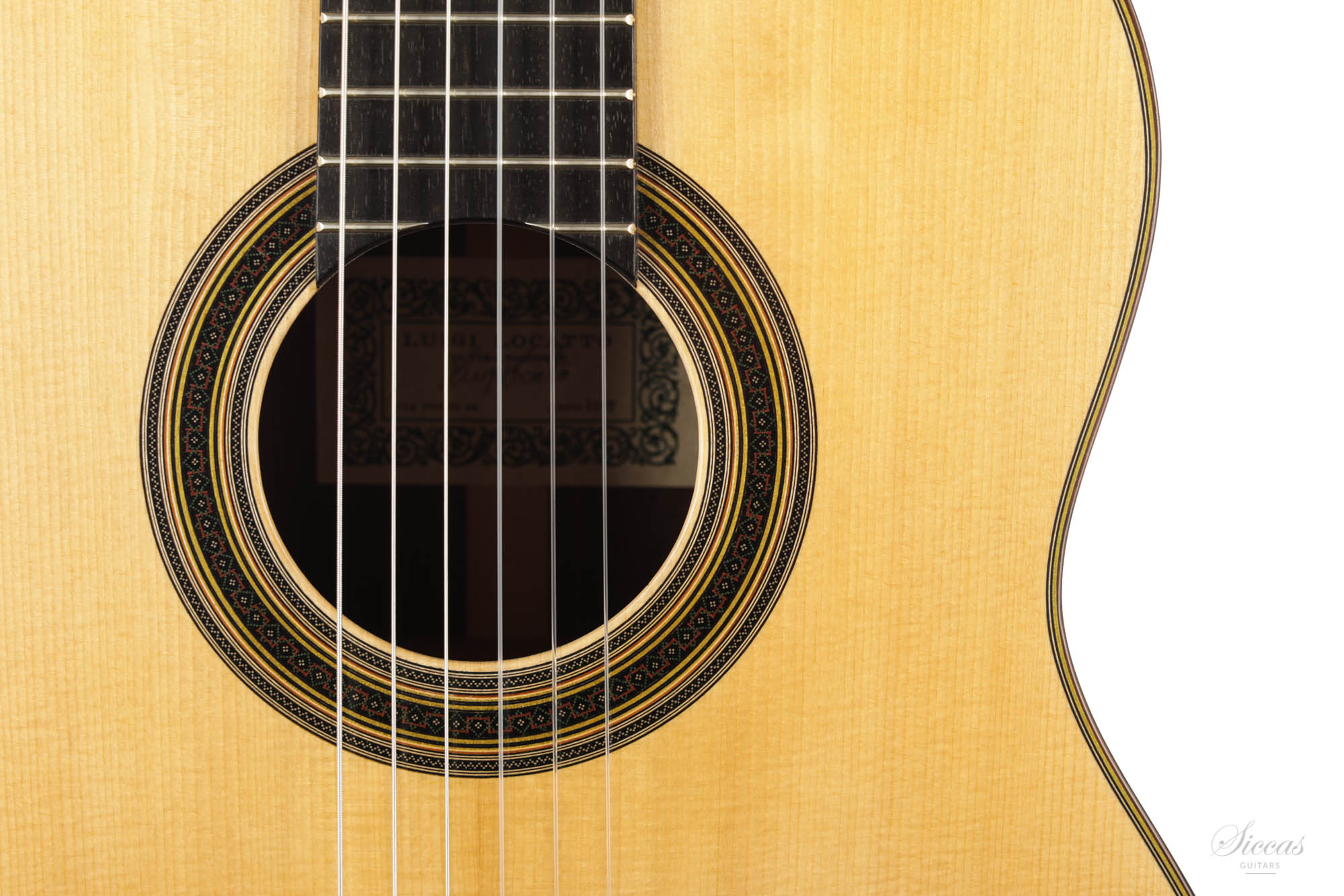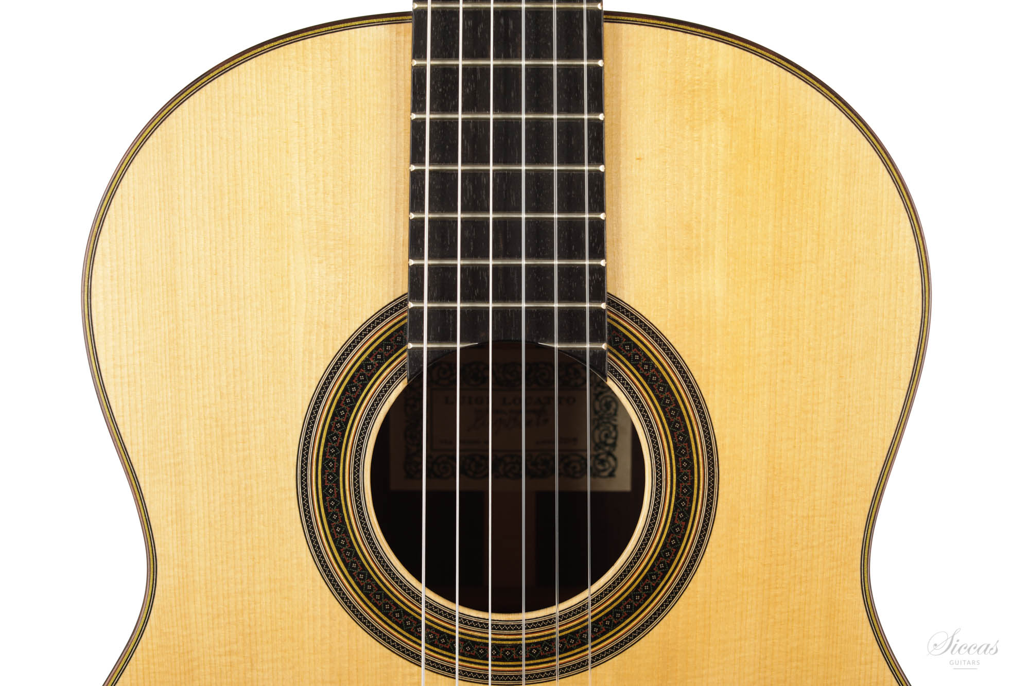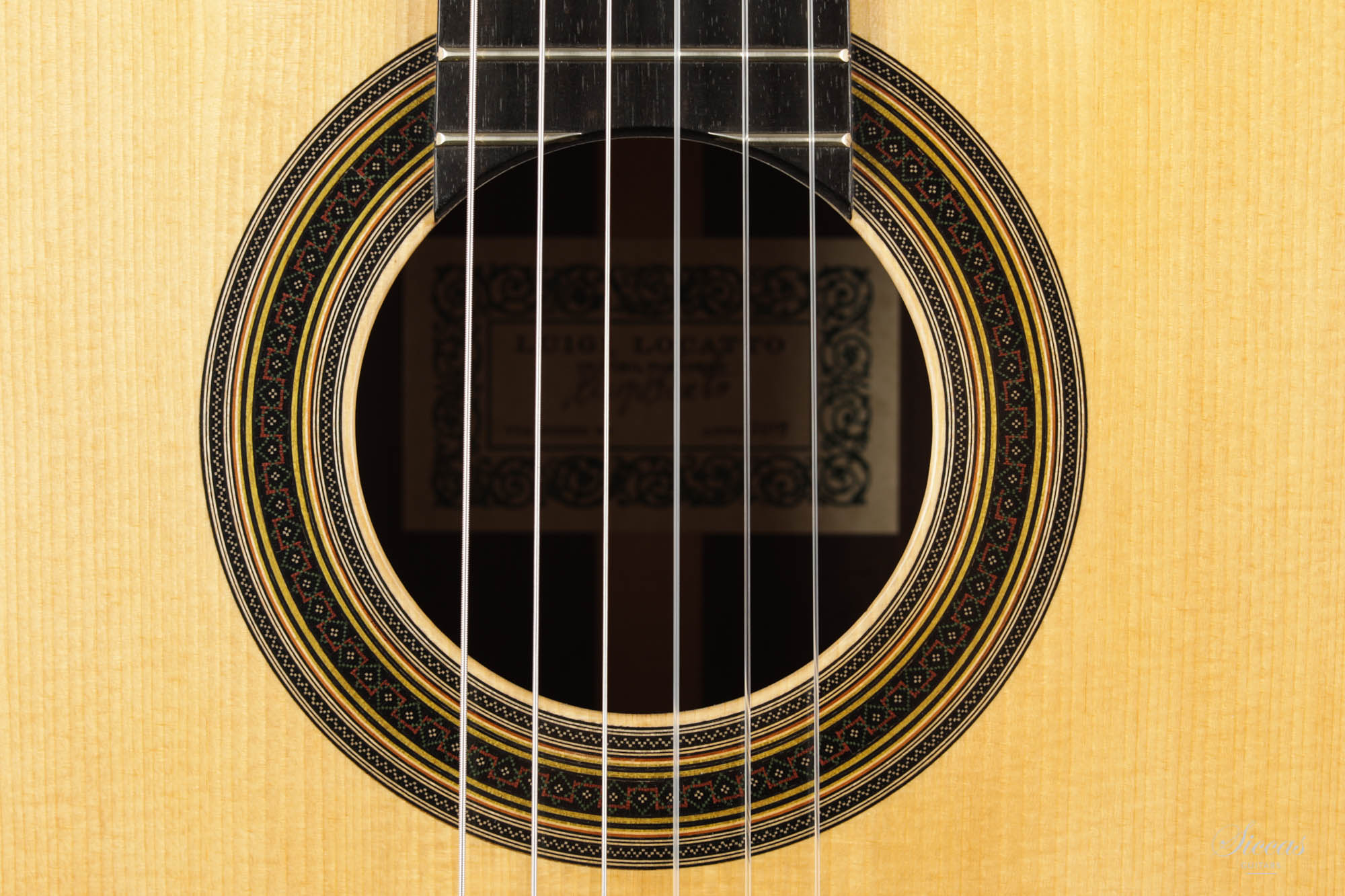 Luigi Locatto has been building guitars for more than 30 years. Not only is he an excellent guitar maker but also a brilliant guitar player. During his career, he restored and examined a lot of very important instruments from great masters such as Francisco Simplicio, Louis Panormo, Enrique Garcia, Antonio de Torres, etc. The influence of these mythic guitar makers can be strongly felt in the sound quality and the balanced aesthetic of his own guitars.