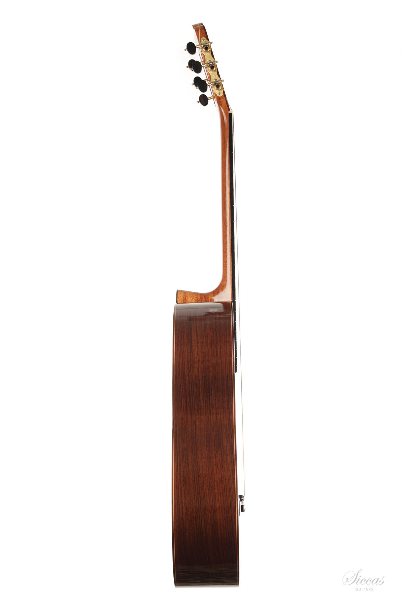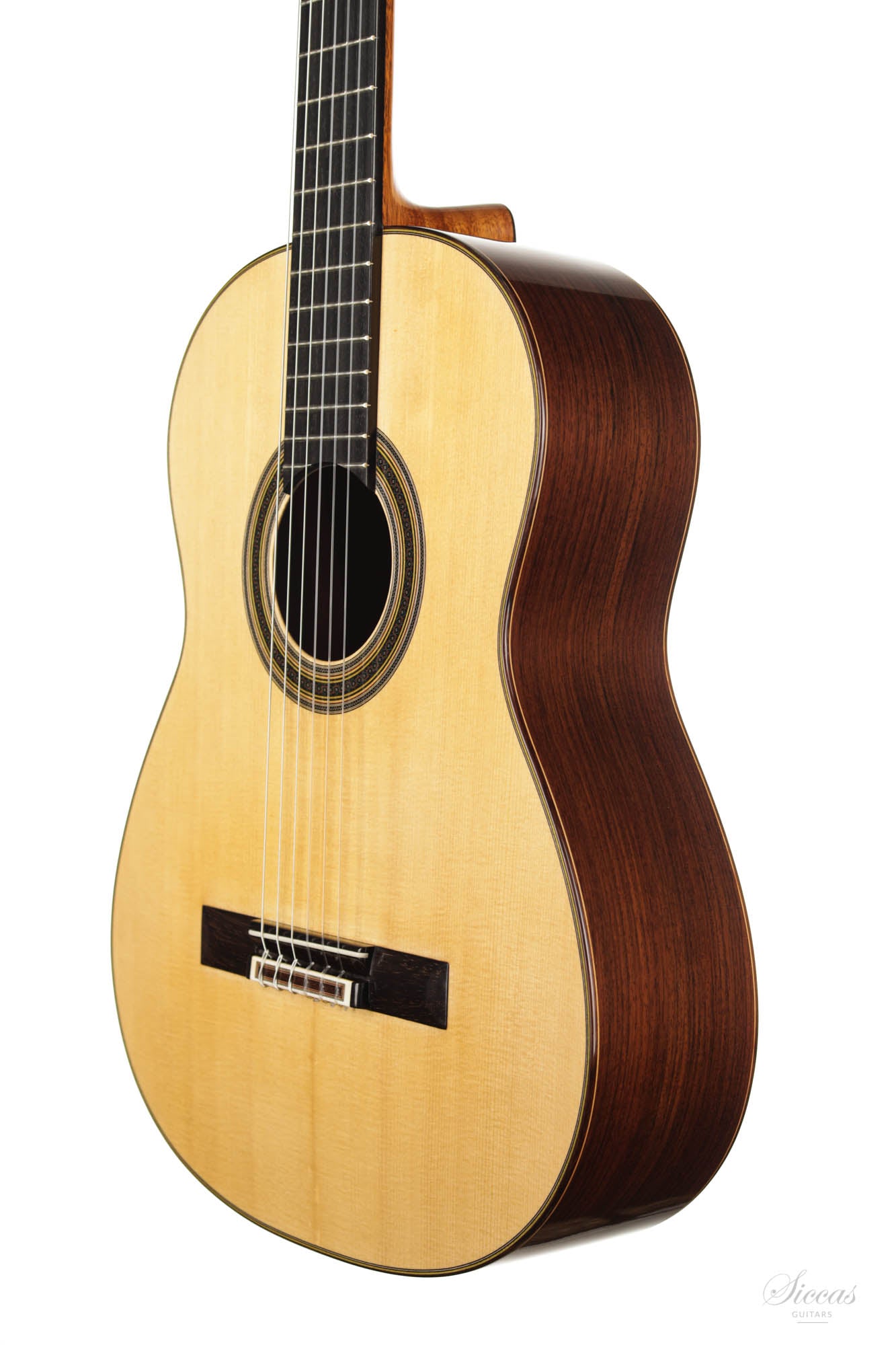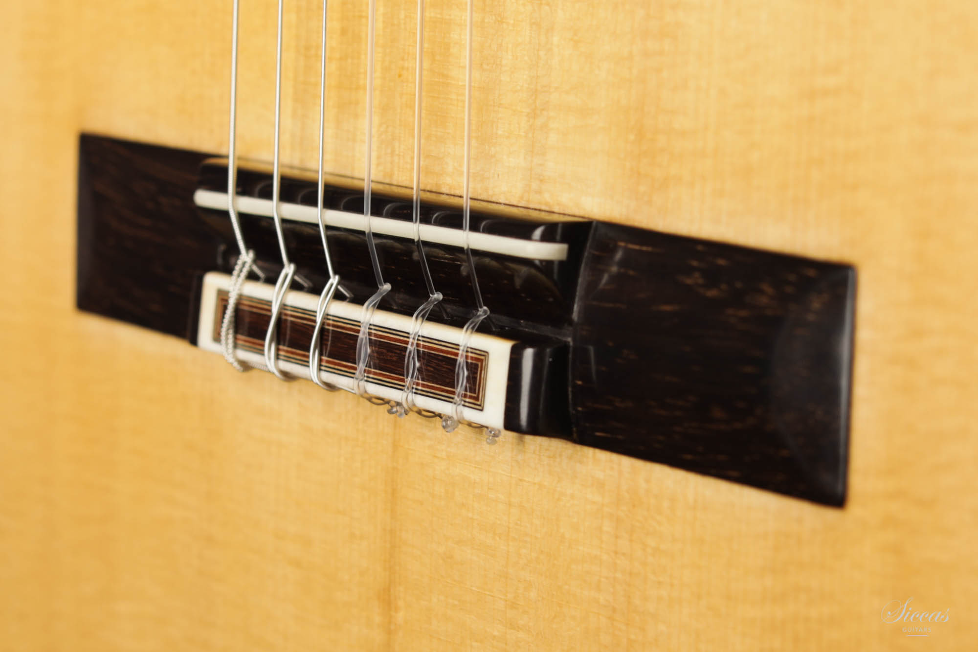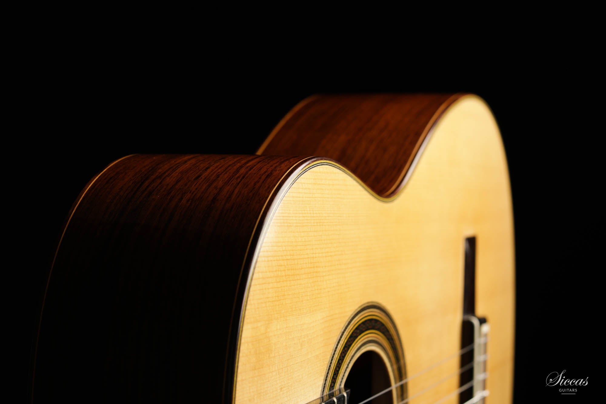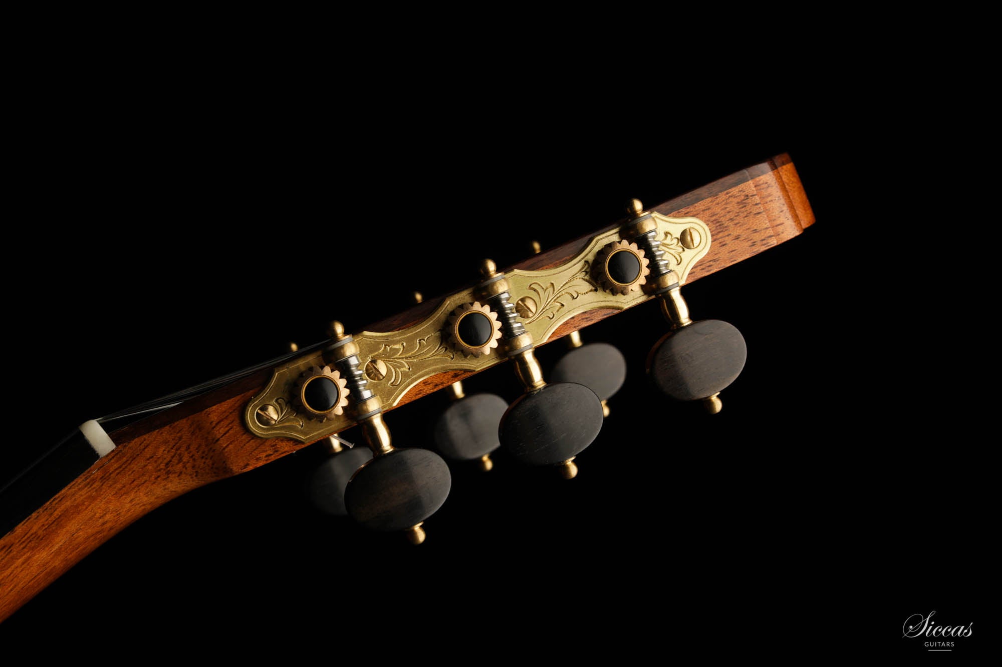 Luigi Locatto has been building guitars for more than 30 years. Not only is he an excellent guitar maker but also a brilliant guitar player. During his career, he restored and examined a lot of very important instruments from great masters such as Francisco Simplicio, Louis Panormo, Enrique Garcia, Antonio de Torres, etc. The influence of these mythic guitar makers can be strongly felt in the sound quality and the balanced aesthetic of his own guitars.