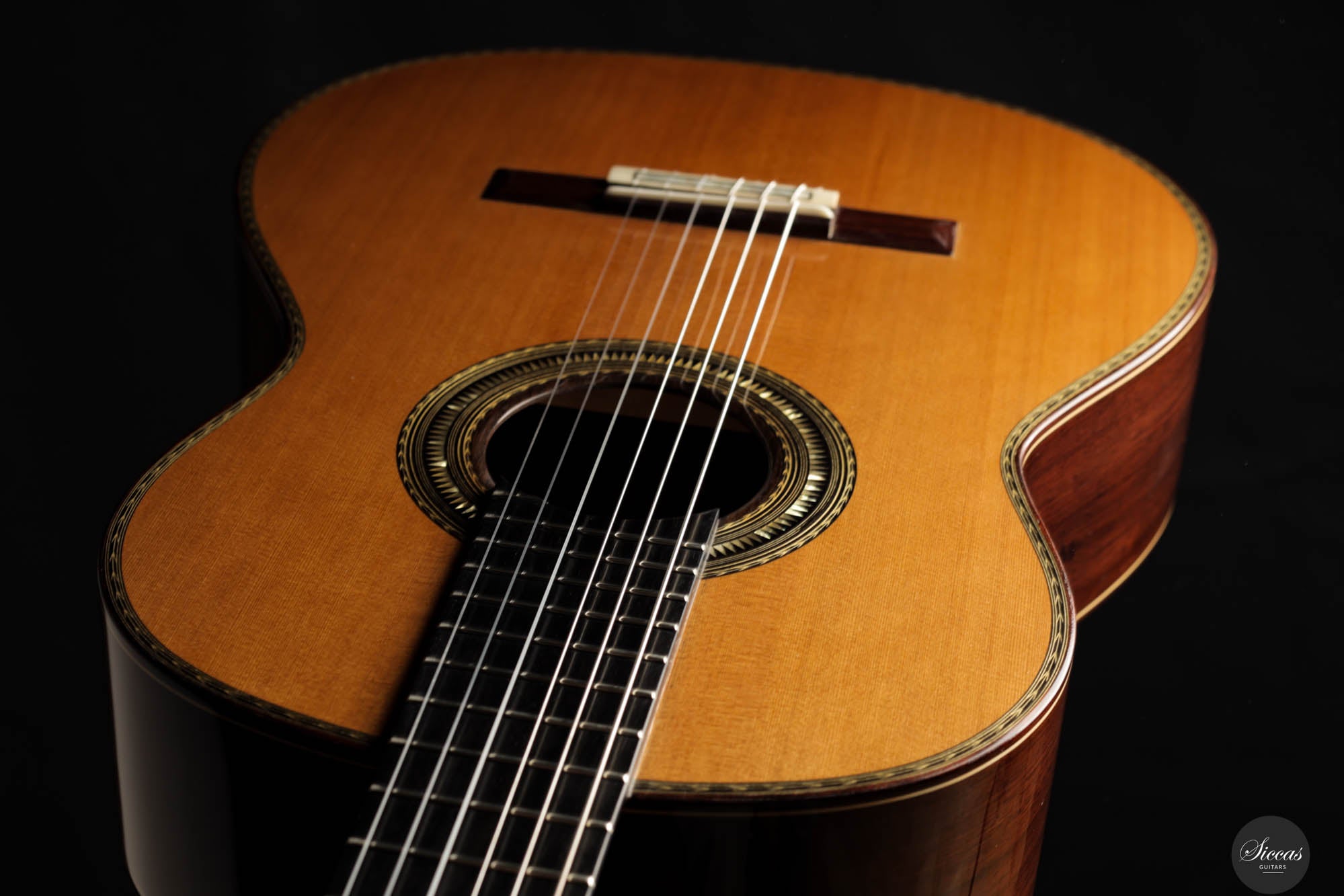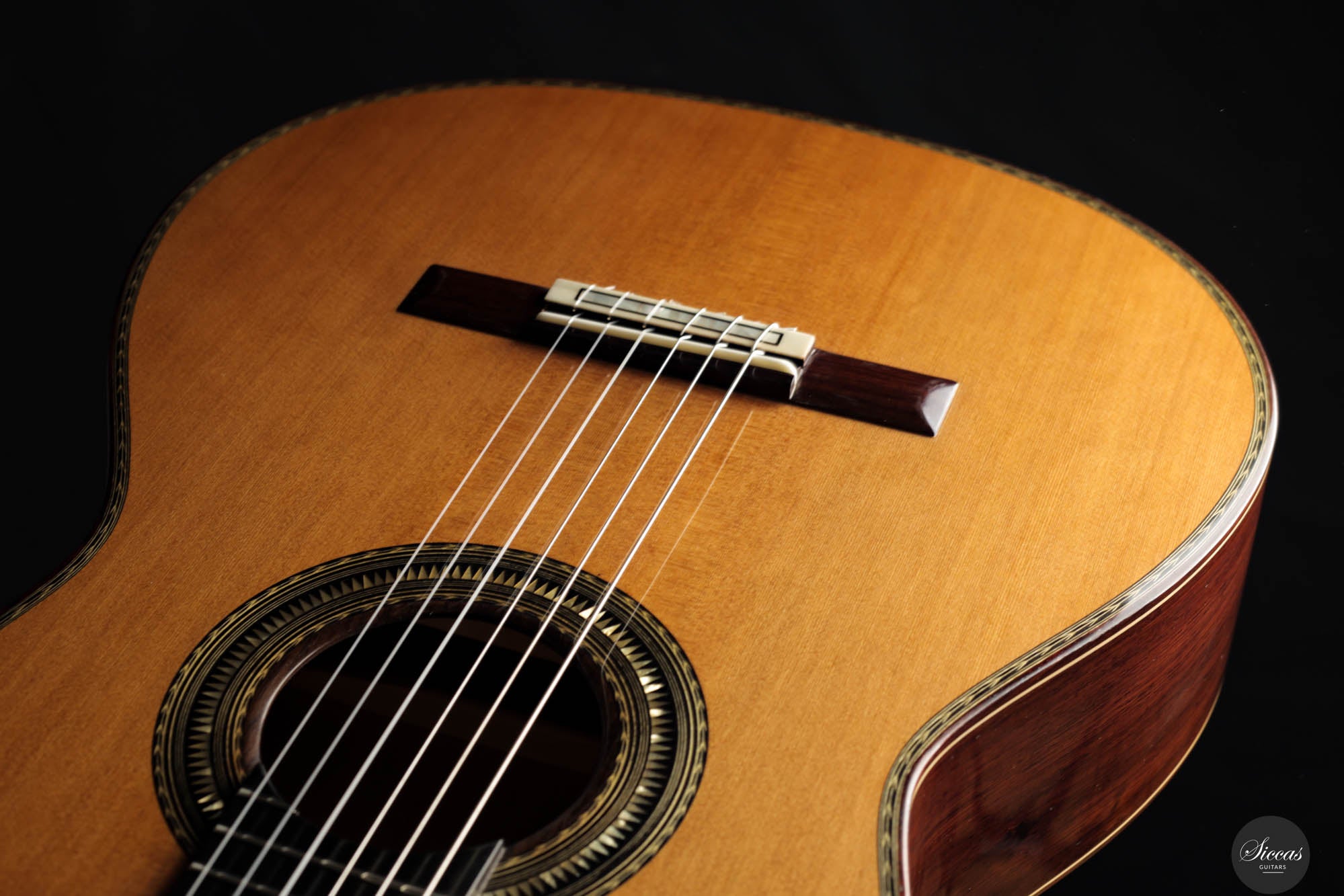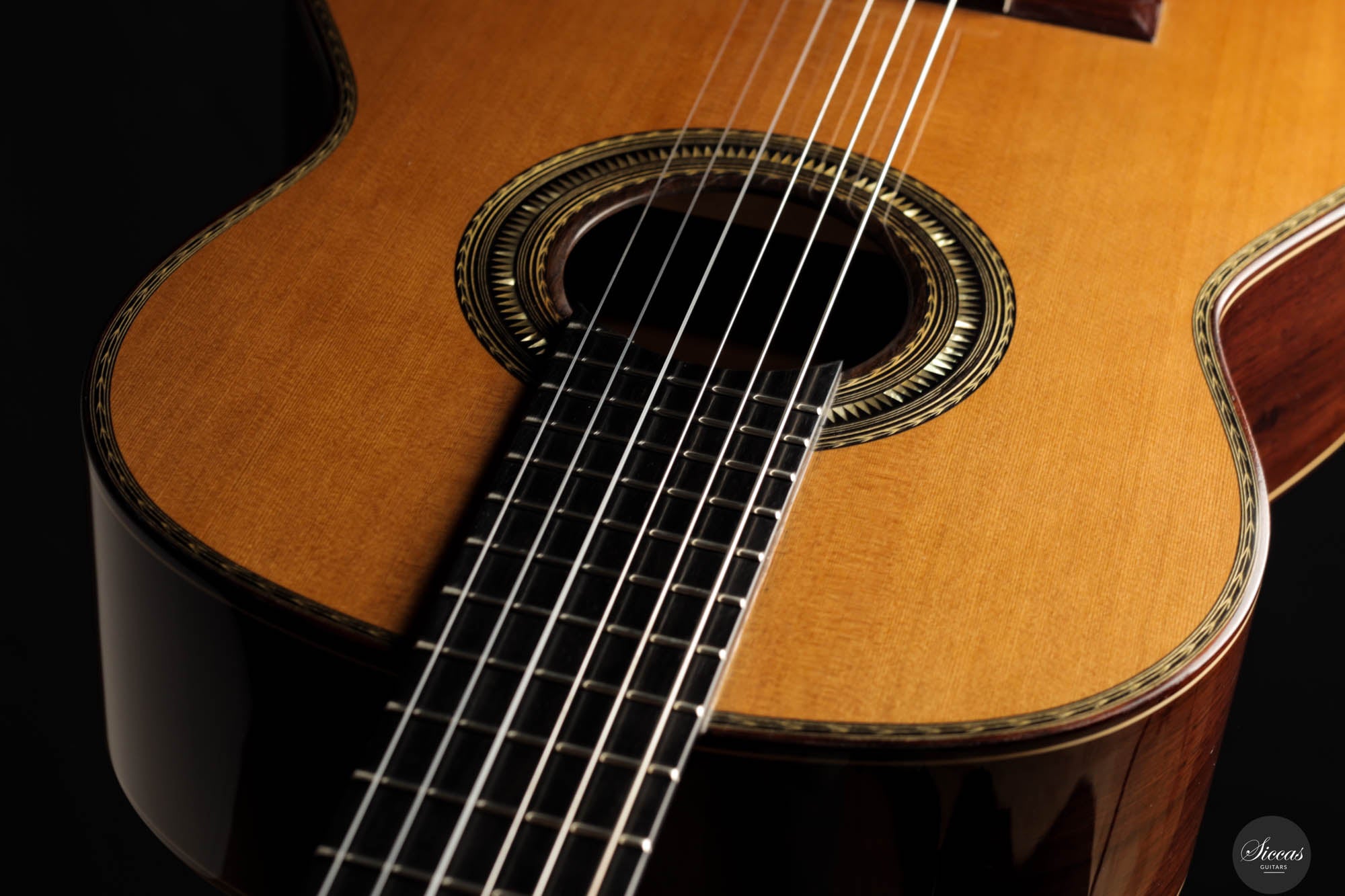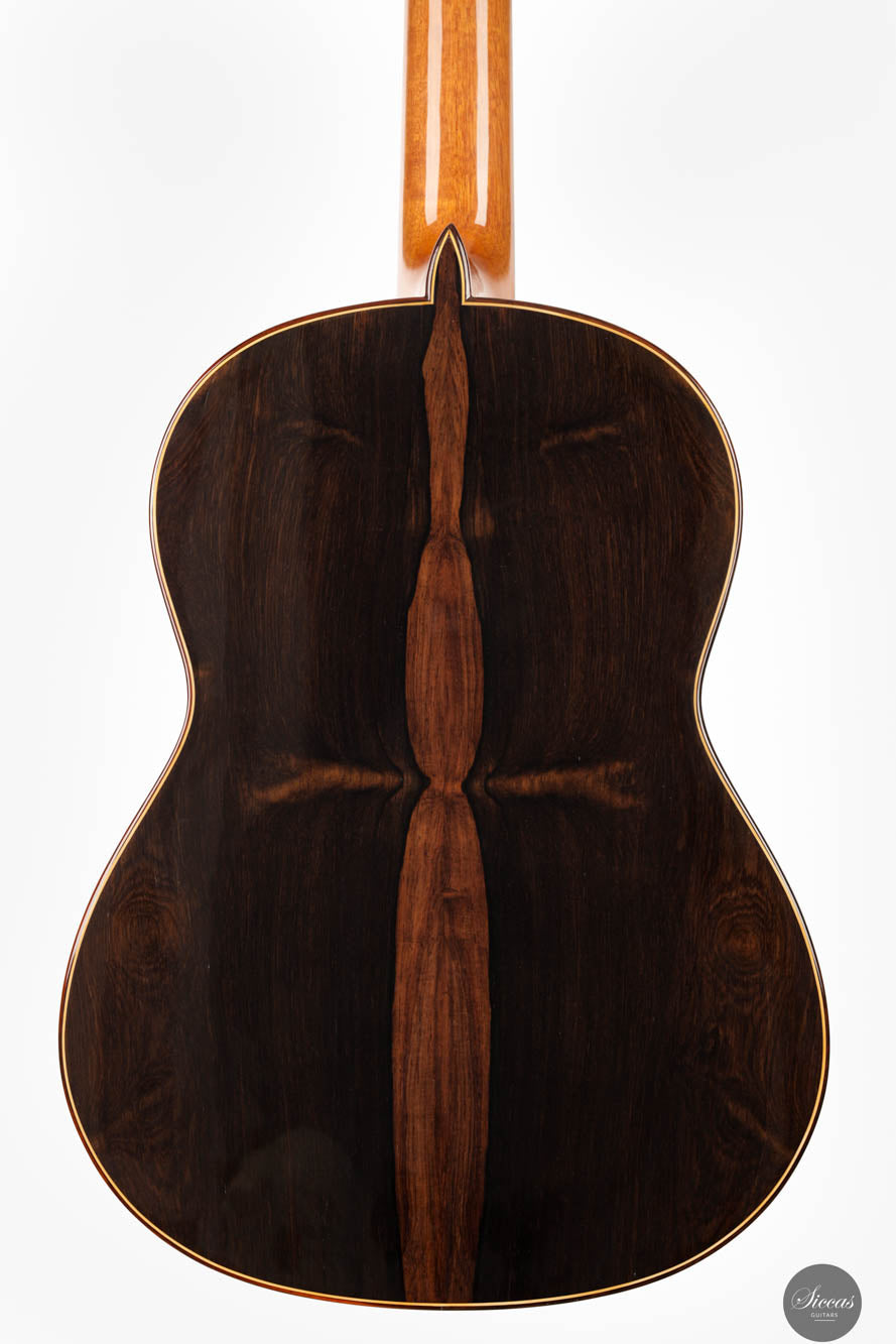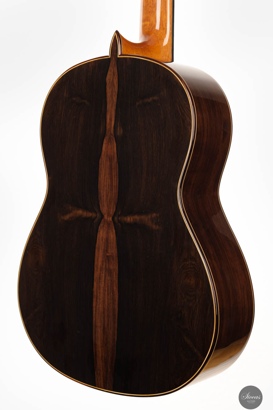 Das Manuel Adalid La Catedral 10 Anniversary Modell steht als Monument des Gitarrenbaus, das den Höhepunkt von Adalids renommierter Handwerkskunst und innovativem Design einfängt. Das Herz dieser Gitarre schlägt mit einer Zederndoppeldecke, einem Merkmal, das nicht nur ihre ästhetische Anziehungskraft erhöht, sondern auch ihre akustische Leistung erheblich steigert, was für ein außergewöhnliches Volumen sorgt, das den Klang mit unvergleichlicher Tiefe und Resonanz bereichert. Ergänzt wird dies durch den außergewöhnlichen Madagascar-Rosenholzrücken und -seiten, die weiter durch eine Verdopplung mit Zypresse verfeinert werden – eine Methode, die nicht nur die klangliche Qualität bereichert, sondern auch die Haltbarkeit und strukturelle Integrität der Gitarre verstärkt. Diese durchdachte Kombination aus Materialien und Designinnovationen resultiert in einer Gitarre, die sowohl robust als auch schön ist und einen Klang bietet, der sowohl üppig als auch weitreichend ist.