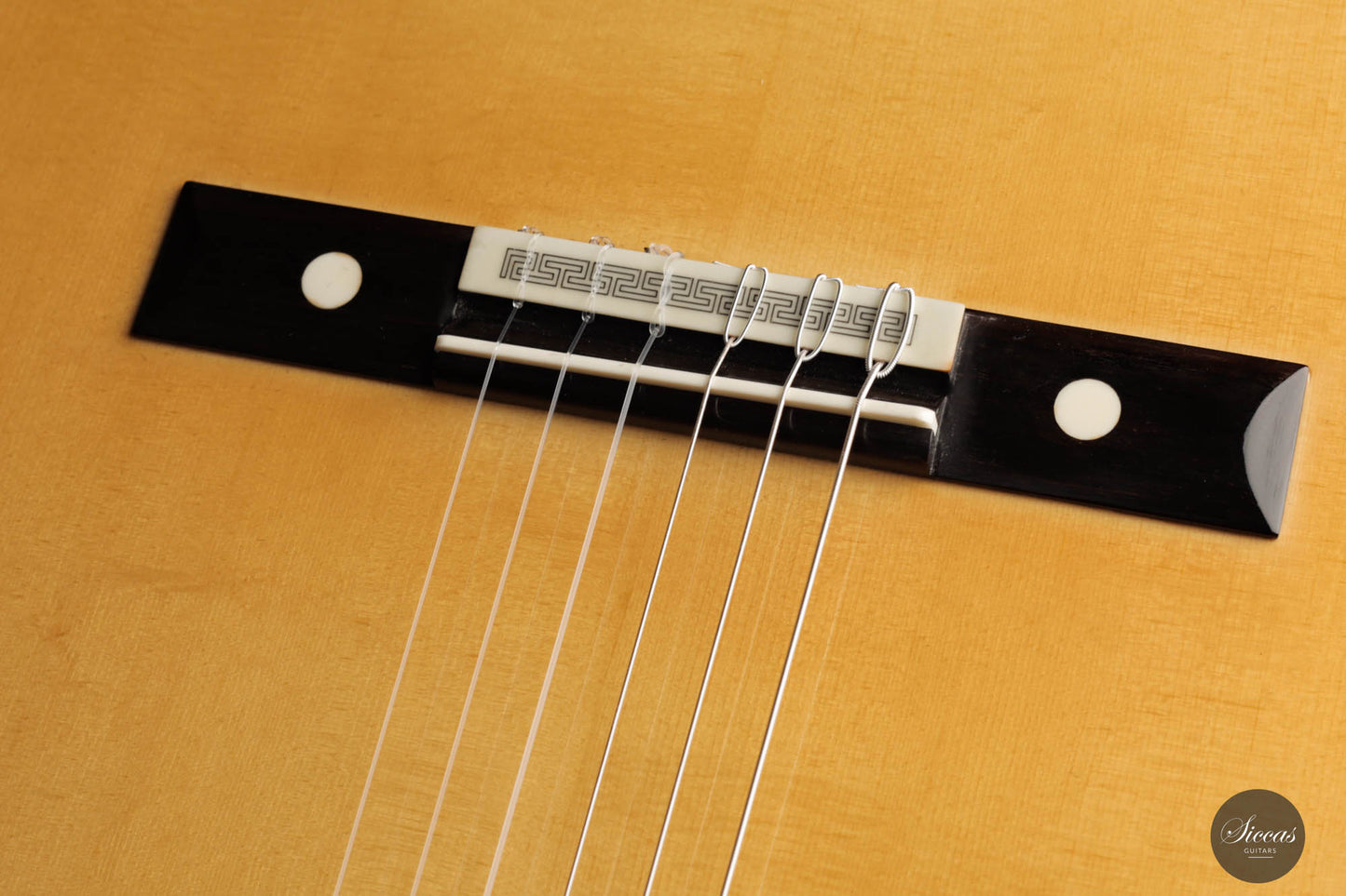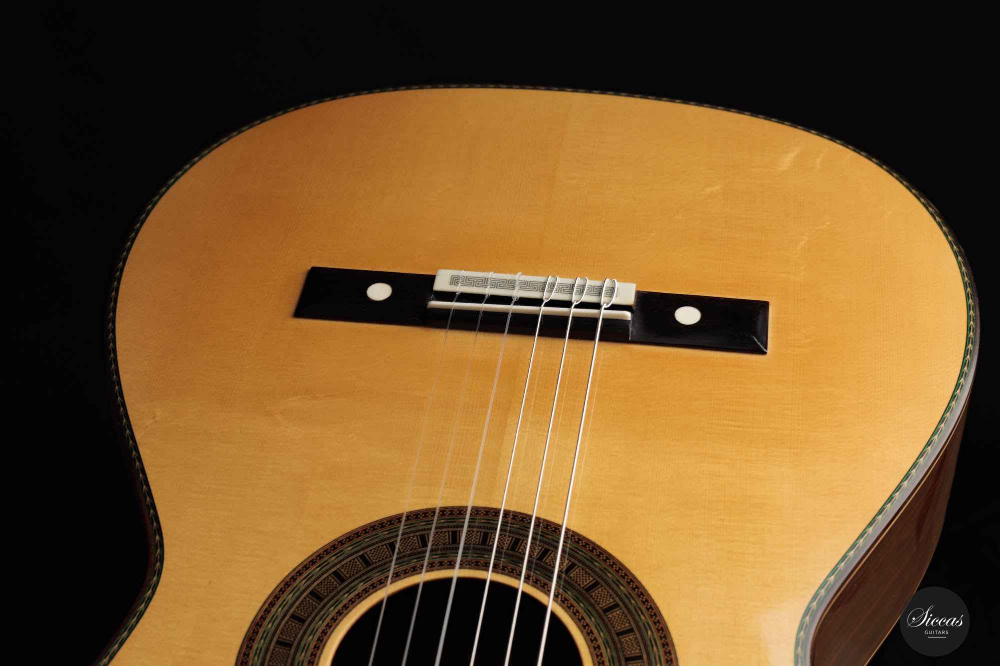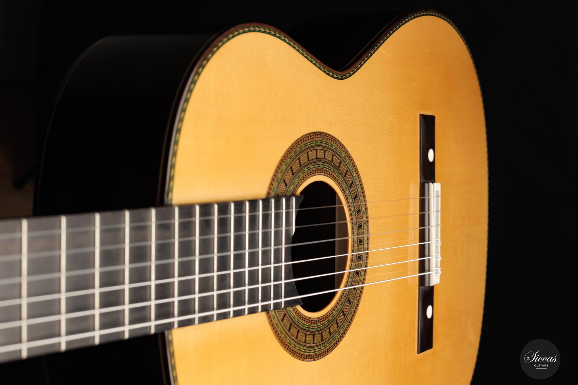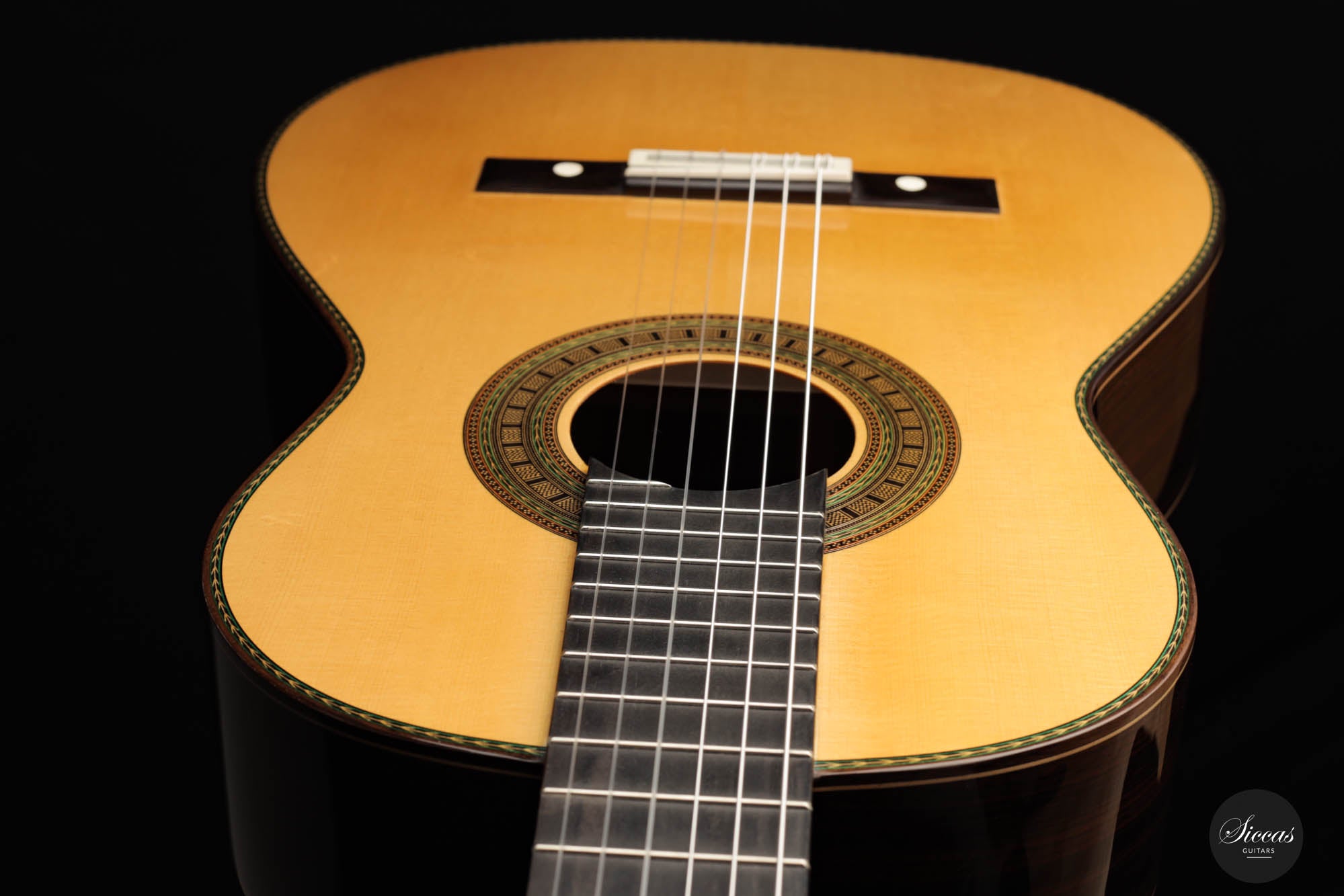 Die 2023 Manuel Adalid "Torres"-Gitarre ist ein wunderbares Instrument, das eine Hommage an die legendäre Antonio de Torres-Gitarre in der heutigen Zeit darstellt. Die Gitarre verfügt über eine wunderschöne Fichtendecke und einen markanten Boden und Zargen aus indischem Palisander, die dem Instrument einen Hauch von Eleganz und Raffinesse verleihen. Die Fichtendecke wurde mit einer Schellackpolitur versehen, die ihr ein glattes und glänzendes Aussehen verleiht, während sie dem Holz erlaubt, frei zu schwingen und einen reichen, komplexen Ton zu erzeugen. Der Boden und die Zargen wurden mit Nitrocellulose behandelt, einer hochwertigen Lackierung, die die Haltbarkeit erhöht, ohne den Ton oder die Resonanz zu beeinträchtigen. Klanglich fängt die Manuel Adalid "Torres"-Gitarre mit ihrer singenden und künstlerischen Qualität das Wesen der spanischen Gitarrencharakteristik des frühen 20. Jahrhunderts mit ihrer singenden und künstlerischen Qualität. Die Gitarre hat einen warmen und ausgewogenen Ton mit hervorragender Projektion und Sustain, was sie zu einem idealen Instrument für klassische Gitarristen macht, die den traditionellen spanischen Klang einfangen wollen. Abgesehen von ihrem außergewöhnlichen Klang und ihrem schönen Design ist die Manuel Adalid "Torres"-Gitarre auch ein hervorragendes Preis-Leistungs-Verhältnis. Sie bietet viele großartige Eigenschaften, die über ihren Preis hinausgehen und sie zu einer erschwinglichen Option für Gitarristen auf allen Ebenen machen. Insgesamt ist diese Gitarre ein Zeugnis für das Können und die Kunstfertigkeit ihres Erbauers und eine schöne Hommage an das Erbe von Antonio de Torres.