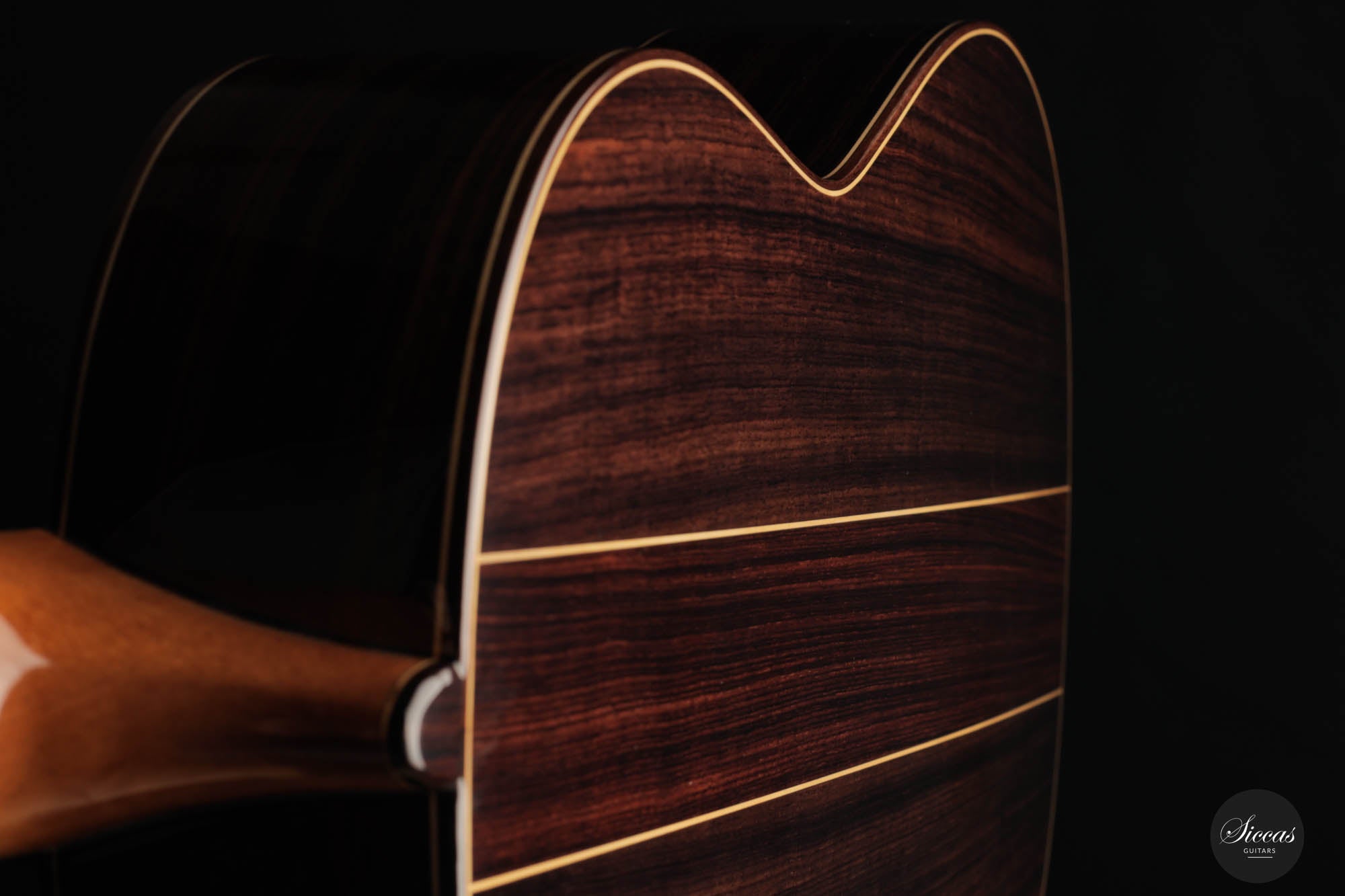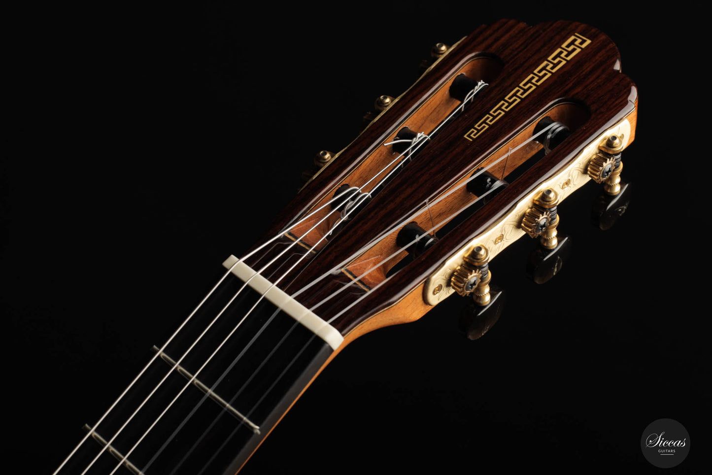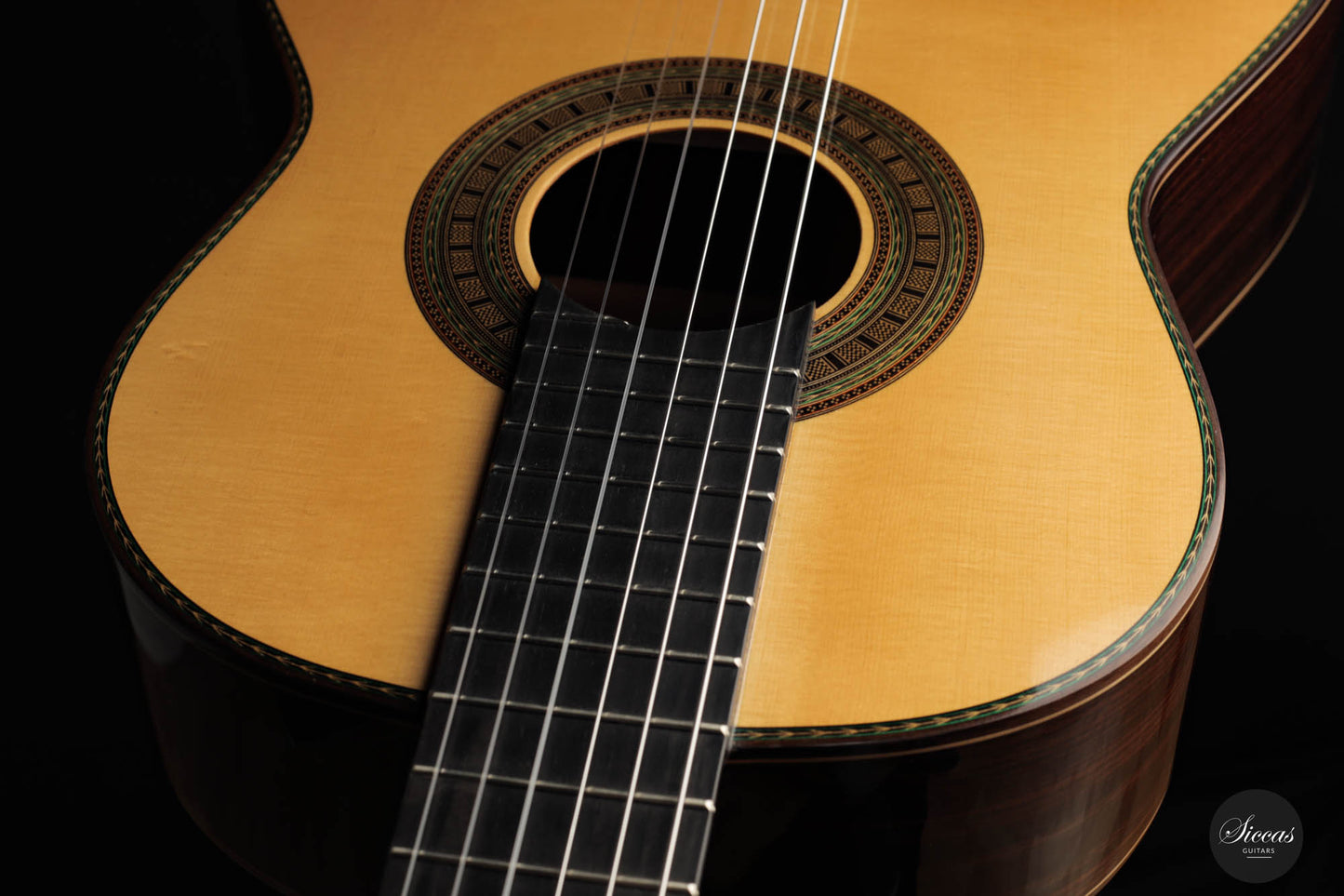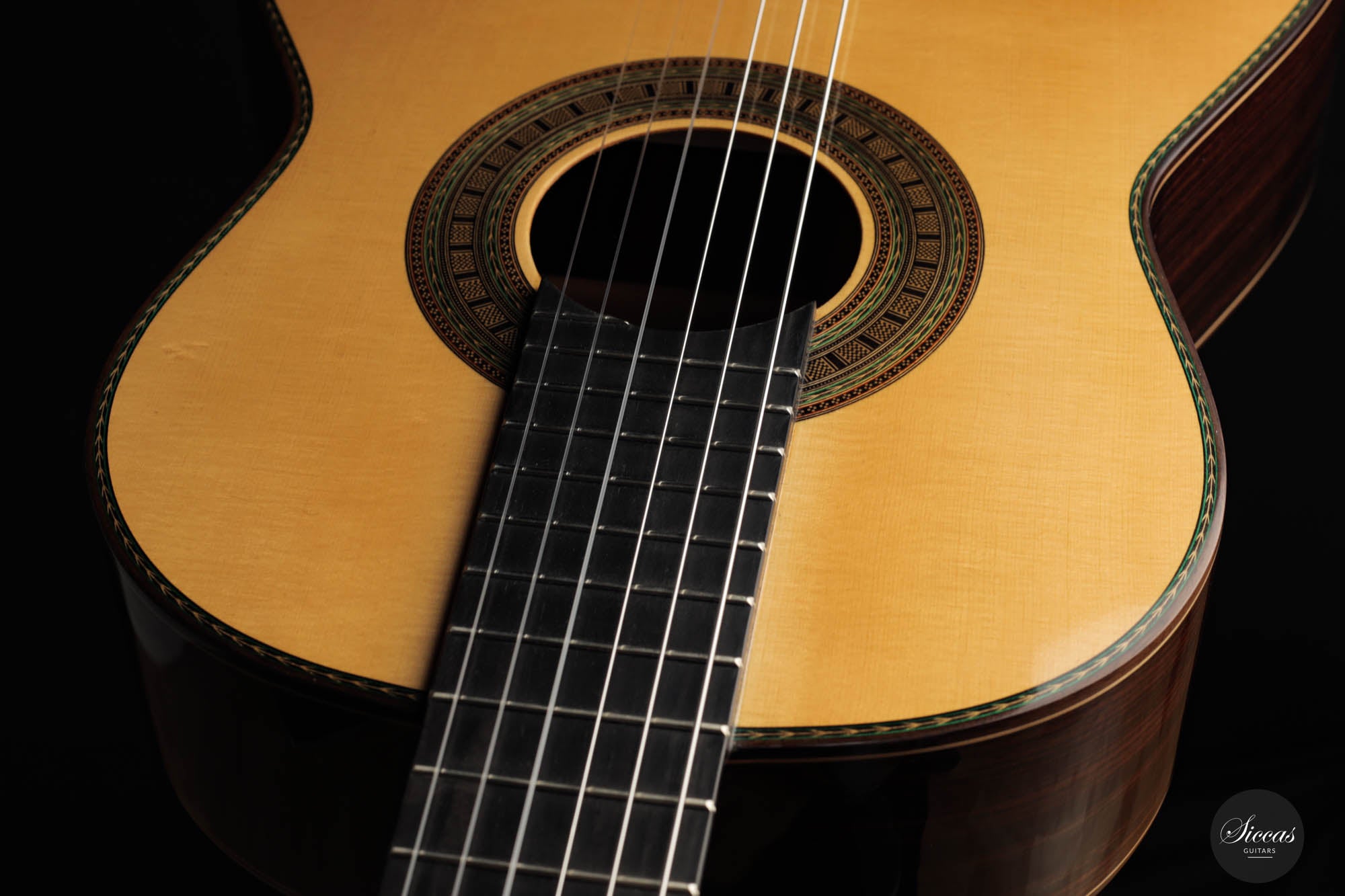 Die 2023 Manuel Adalid "Torres"-Gitarre ist ein wunderbares Instrument, das eine Hommage an die legendäre Antonio de Torres-Gitarre in der heutigen Zeit darstellt. Die Gitarre verfügt über eine wunderschöne Fichtendecke und einen markanten Boden und Zargen aus indischem Palisander, die dem Instrument einen Hauch von Eleganz und Raffinesse verleihen. Die Fichtendecke wurde mit einer Schellackpolitur versehen, die ihr ein glattes und glänzendes Aussehen verleiht, während sie dem Holz erlaubt, frei zu schwingen und einen reichen, komplexen Ton zu erzeugen. Der Boden und die Zargen wurden mit Nitrocellulose behandelt, einer hochwertigen Lackierung, die die Haltbarkeit erhöht, ohne den Ton oder die Resonanz zu beeinträchtigen. Klanglich fängt die Manuel Adalid "Torres"-Gitarre mit ihrer singenden und künstlerischen Qualität das Wesen der spanischen Gitarrencharakteristik des frühen 20. Jahrhunderts mit ihrer singenden und künstlerischen Qualität. Die Gitarre hat einen warmen und ausgewogenen Ton mit hervorragender Projektion und Sustain, was sie zu einem idealen Instrument für klassische Gitarristen macht, die den traditionellen spanischen Klang einfangen wollen. Abgesehen von ihrem außergewöhnlichen Klang und ihrem schönen Design ist die Manuel Adalid "Torres"-Gitarre auch ein hervorragendes Preis-Leistungs-Verhältnis. Sie bietet viele großartige Eigenschaften, die über ihren Preis hinausgehen und sie zu einer erschwinglichen Option für Gitarristen auf allen Ebenen machen. Insgesamt ist diese Gitarre ein Zeugnis für das Können und die Kunstfertigkeit ihres Erbauers und eine schöne Hommage an das Erbe von Antonio de Torres.